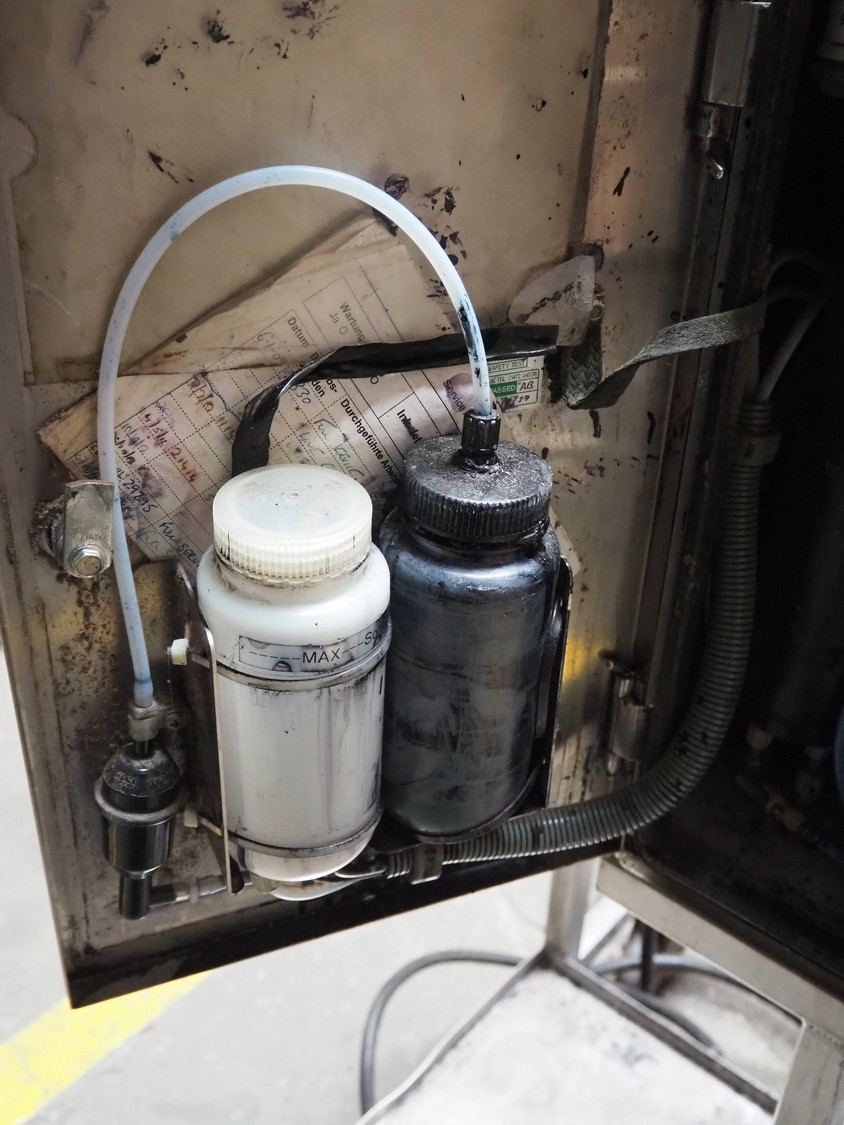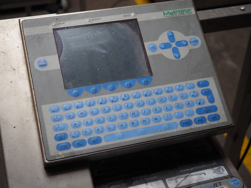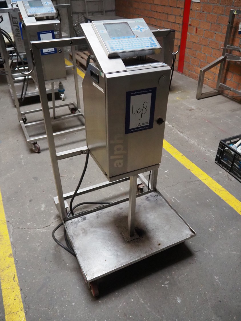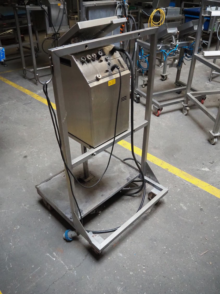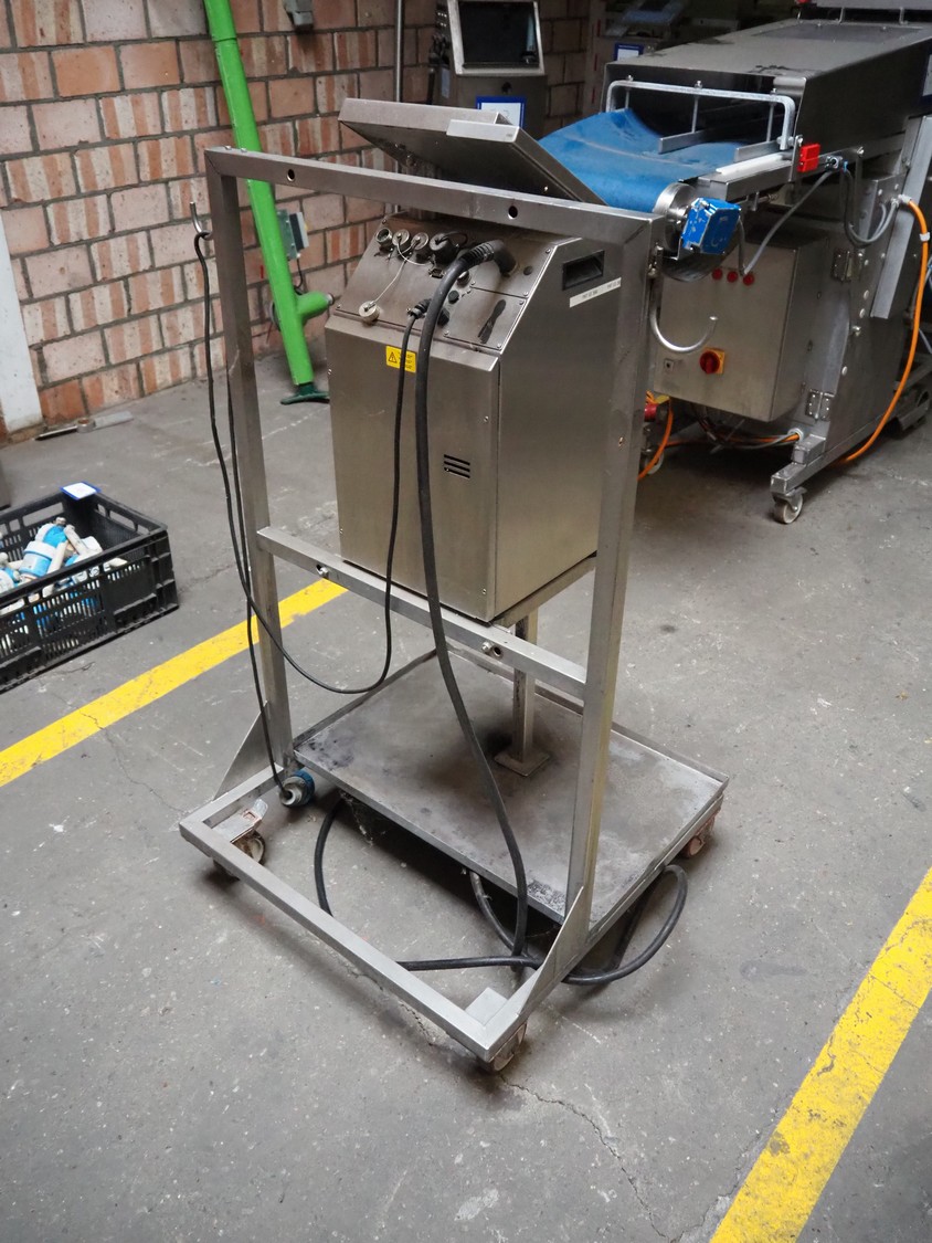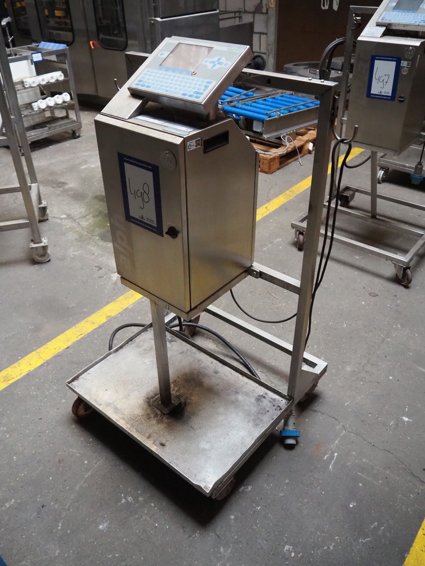 KBA Metronic GmbH inkjet printer on mobile s/s frame, number: MI2500-011697, year of construction: 2008, 230 V, 50 Hz, 0.5 A, dimensions: 870 mm x 750 mm x 1320 mm.