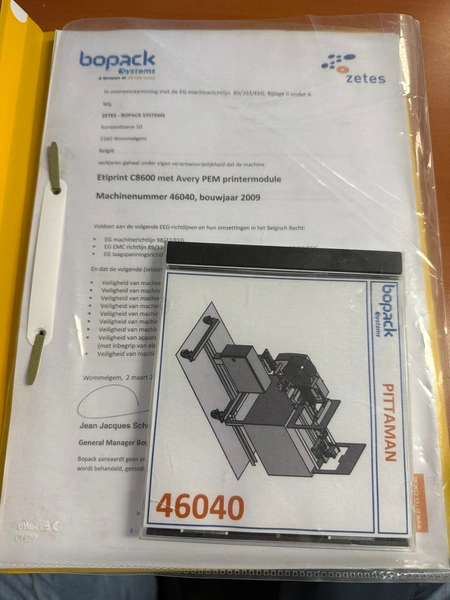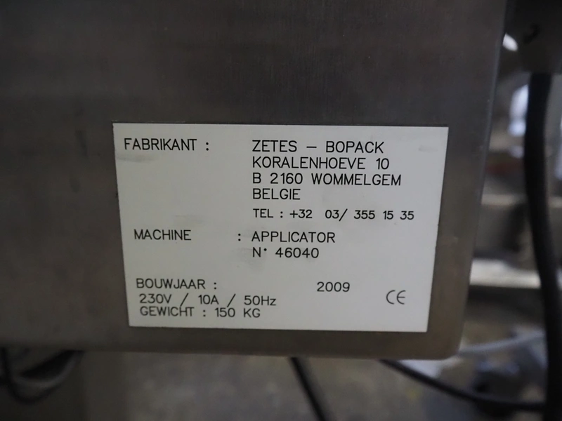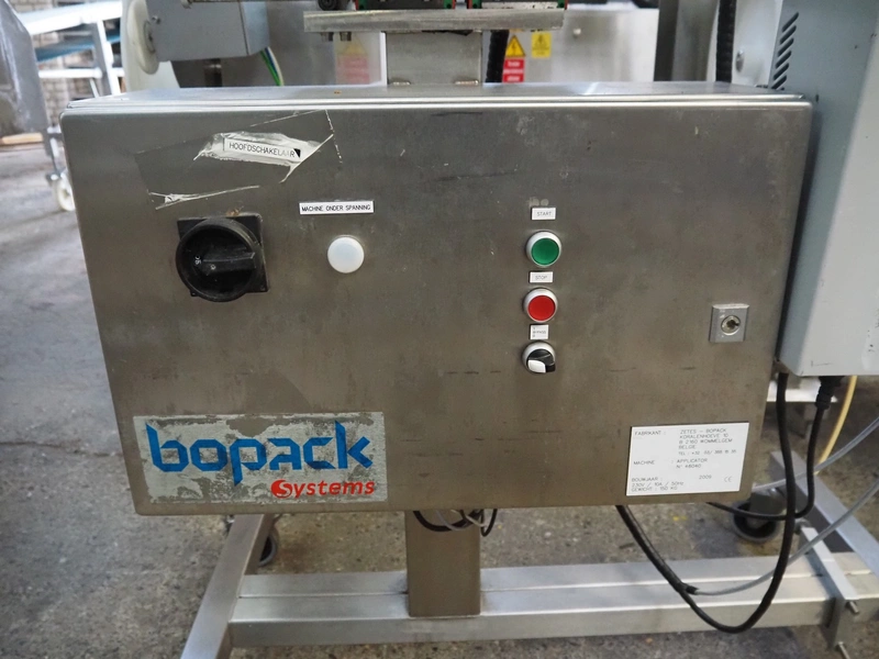 Bopack Systems mobile labelling machine, model: Applicator, number: 46040, year of construction: 2009, 230 V, 50 Hz, 10 A, weight: 150 kg, dimensions: 1650 mm x 700 mm x 1700 mm. Incomplete.