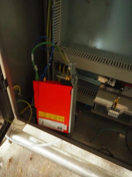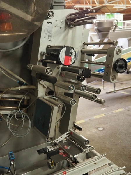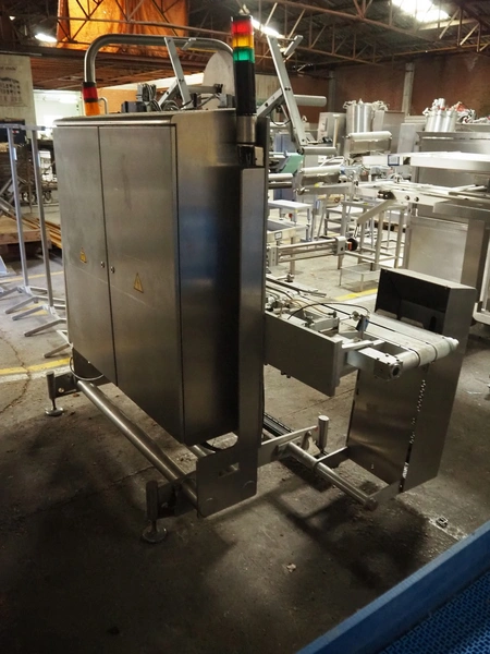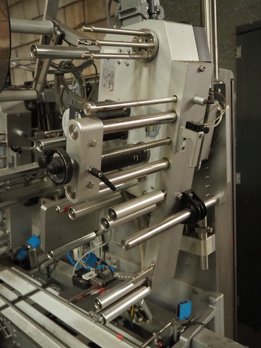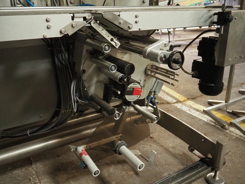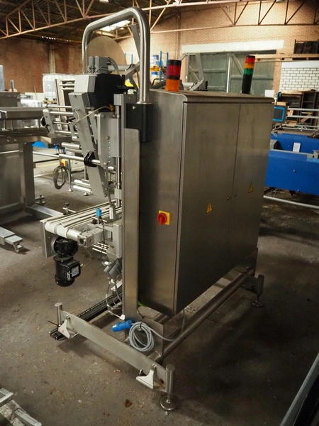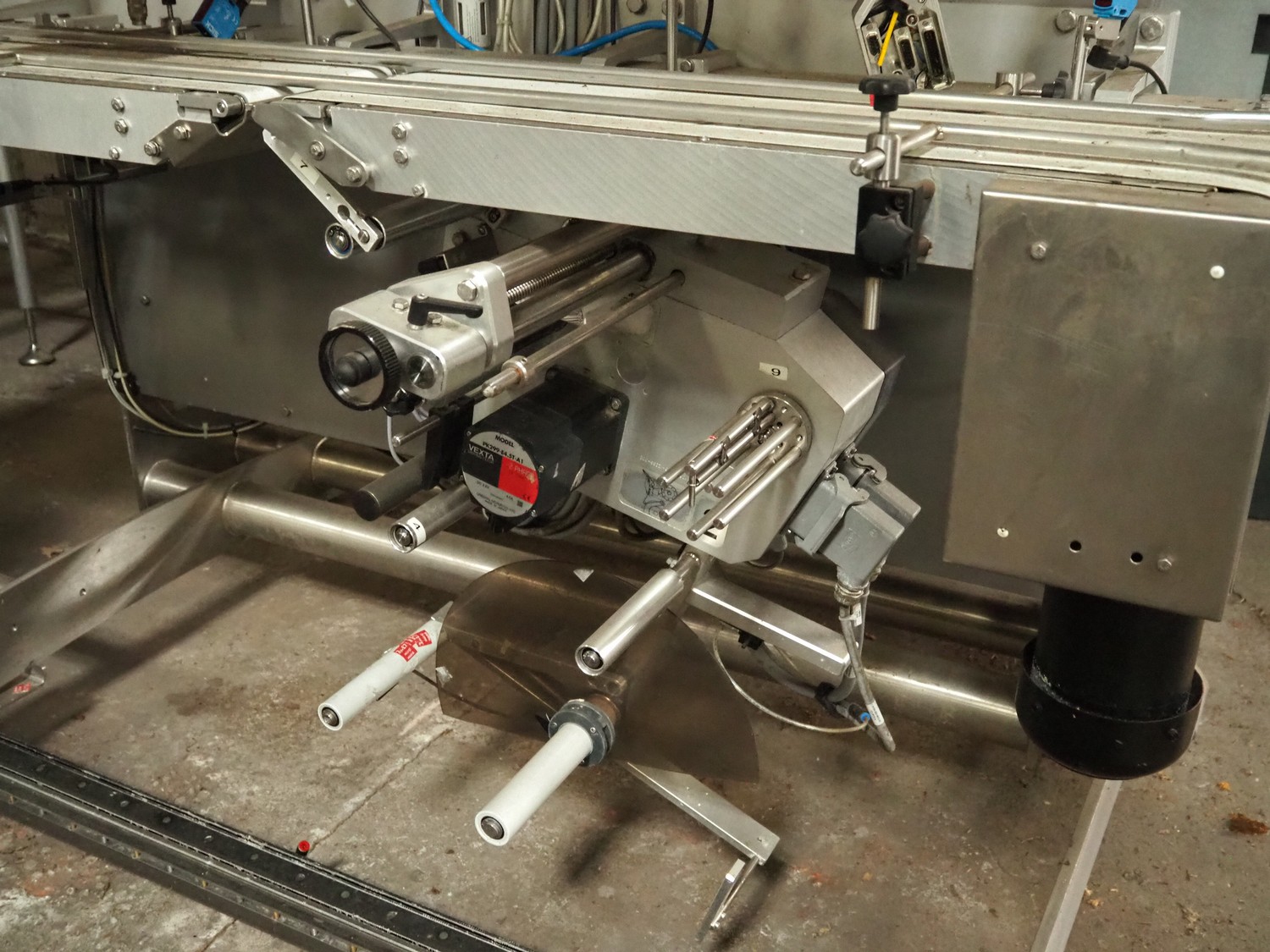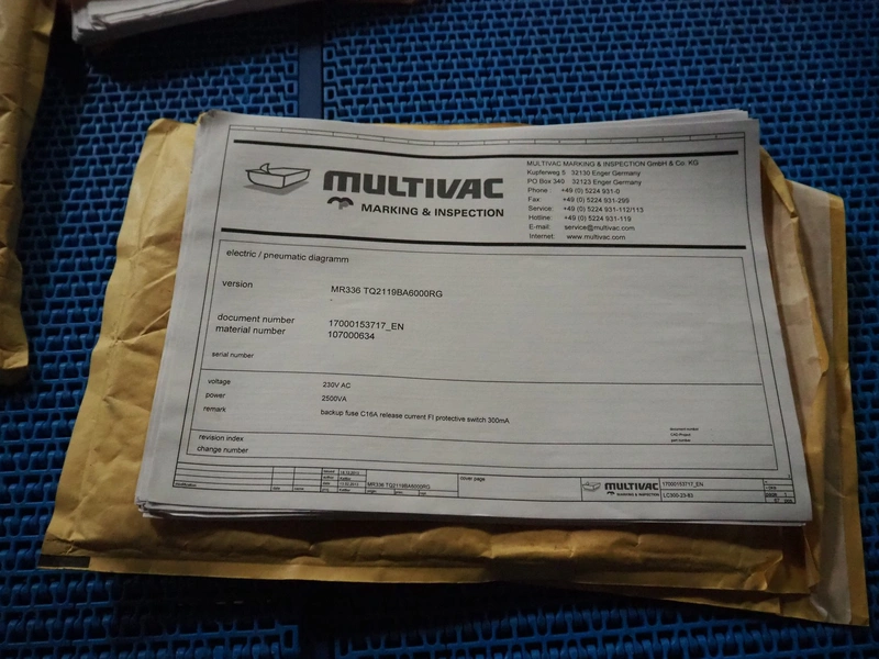 Multivac labelling machine with 2 top and 1 bottom labeller, type: MR336, machine number: 183111, year of construction: 2014, 230 V, 50/60 Hz, plastic belts, belt width: (2x) 85 mm, total dimensions: 2080 mm x 1280 mm x 2060 mm. Missing inkjet printer.
