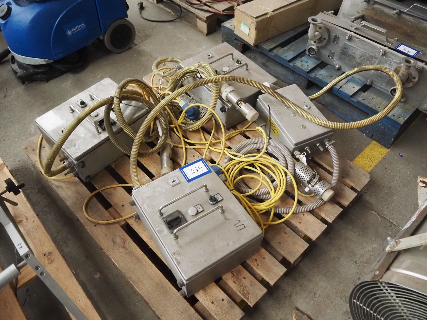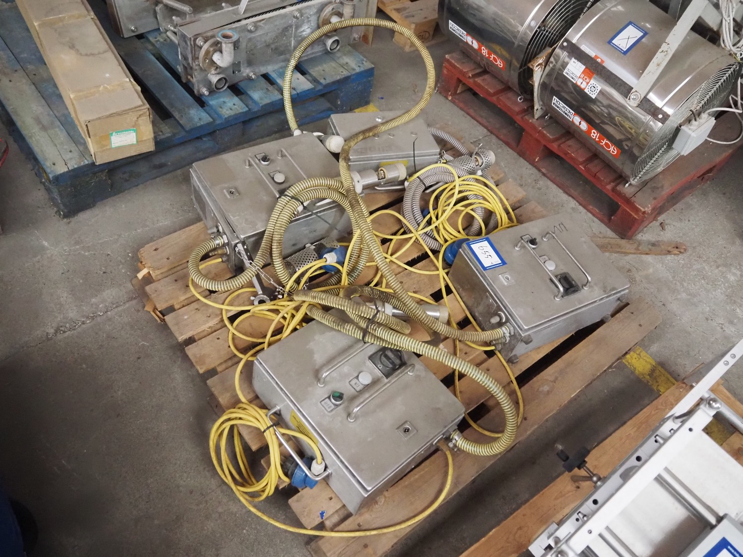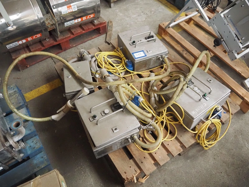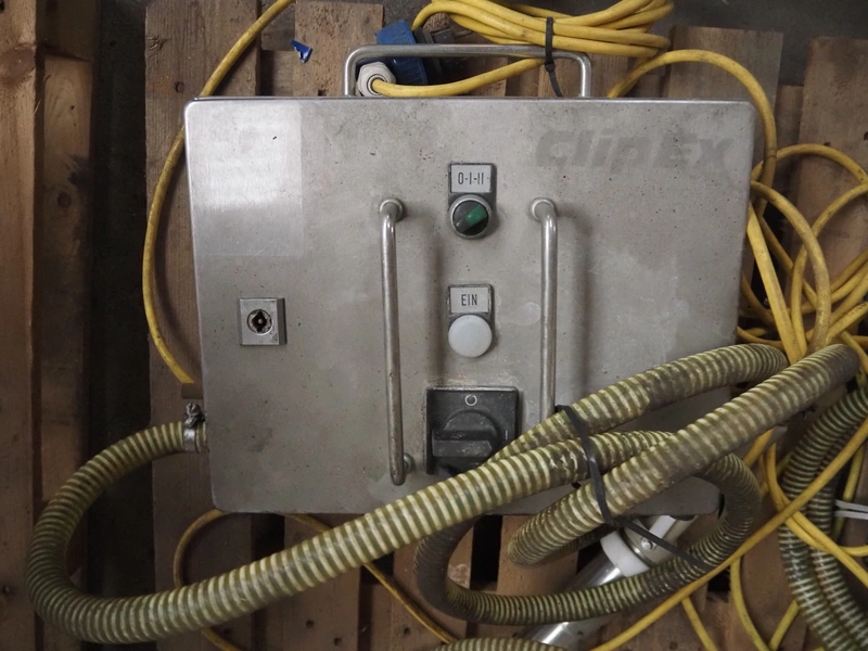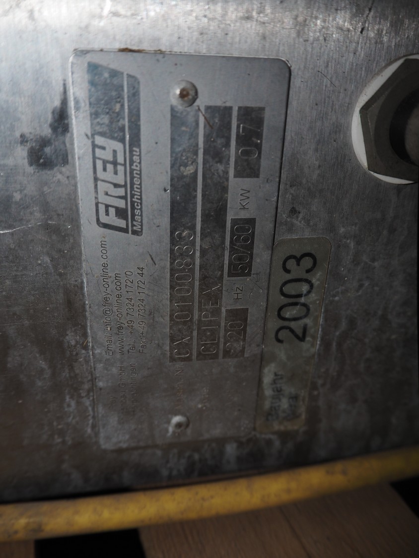 4 Frey Maschinenbau GmbH casing closing machines, type: Clipex, machine number: CX 0230222, CX 0052137, CX 0100833 and CX 0470562, 220 V, 50/60 Hz, 0.7 kW, dimensions: (4x) 400 mm x 160 mm x 300 mm.