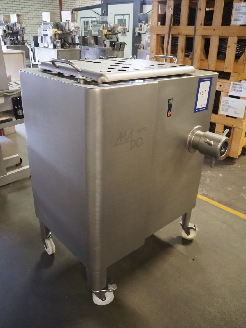 Mado mobile mixer-grinder, type: MEW 620, number: 31109, year of construction: 2004, 230/400 V, 3 Ph, 50 Hz, 15.2/8/8 A, 4.0 kW, plate diameter: 100 mm, total dimensions: 1000 mm x 900 mm x 1350 mm. Incomplete.