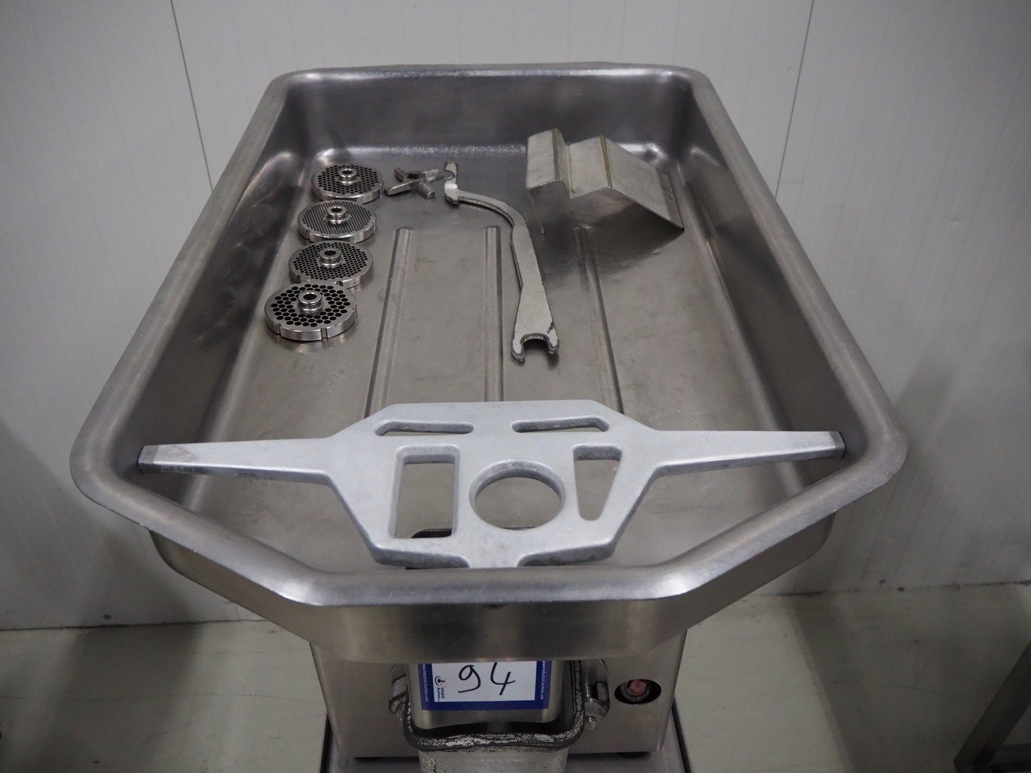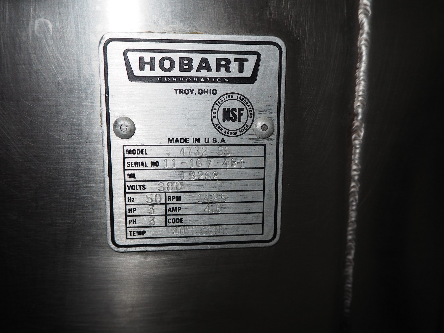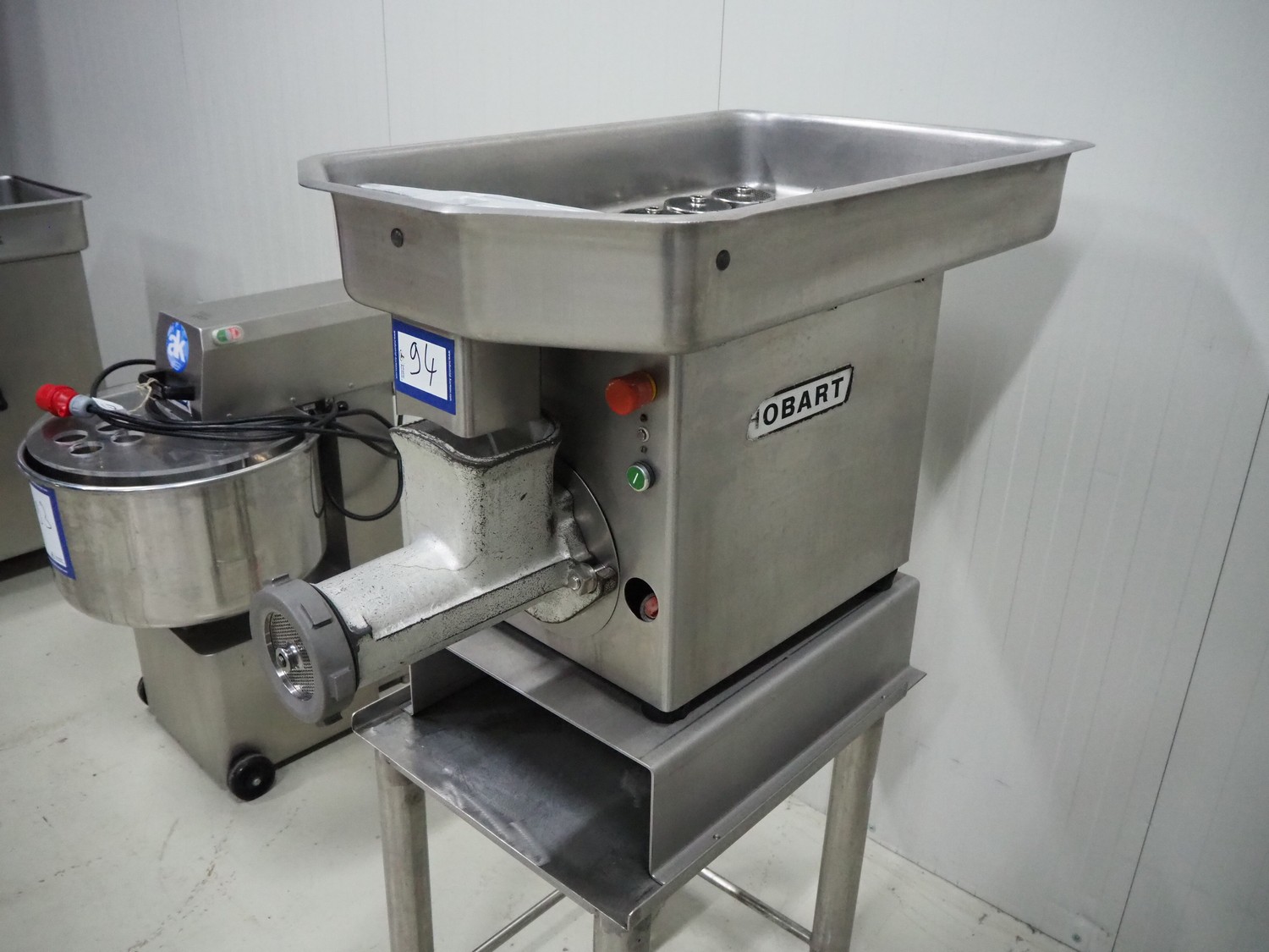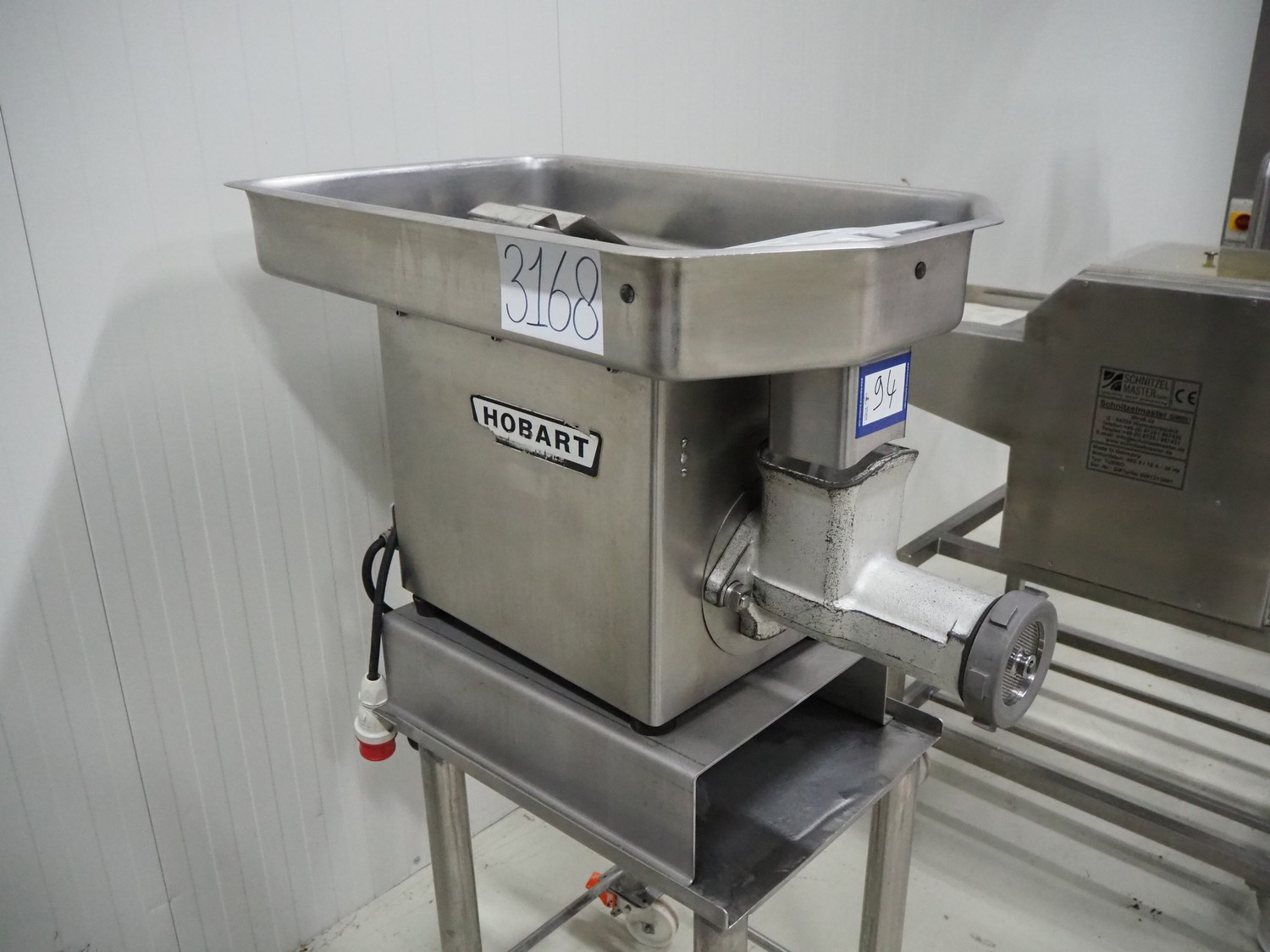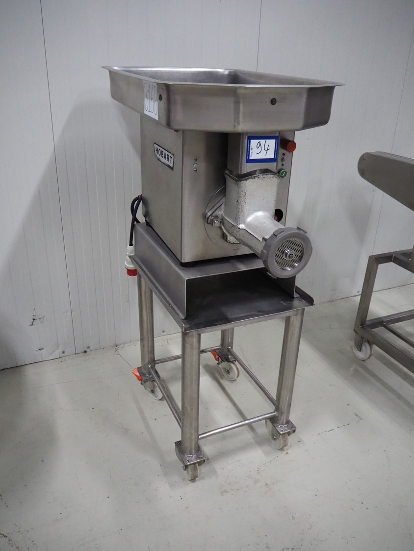 Hobart mobile grinder, model: 4732 SS, serial number: 11-167-491, 380 V, 3 Ph, 50 Hz, 4.6 A, plate diameter: 98 mm, total dimensions: 600 mm x 1000 mm x 1410 mm.