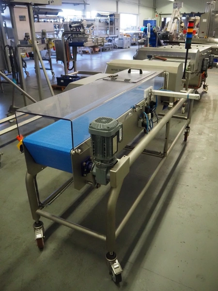 Mettler Toledo Safeline mobile metal detector, type: Profile, serial number: C024543627, year of construction: 2020, 230V, 1 Ph, 50Hz, belt width: 330 mm, clearance: 350 mm x 90 mm, total dimensions: 2850 mm x 1400 mm x 1650 mm.