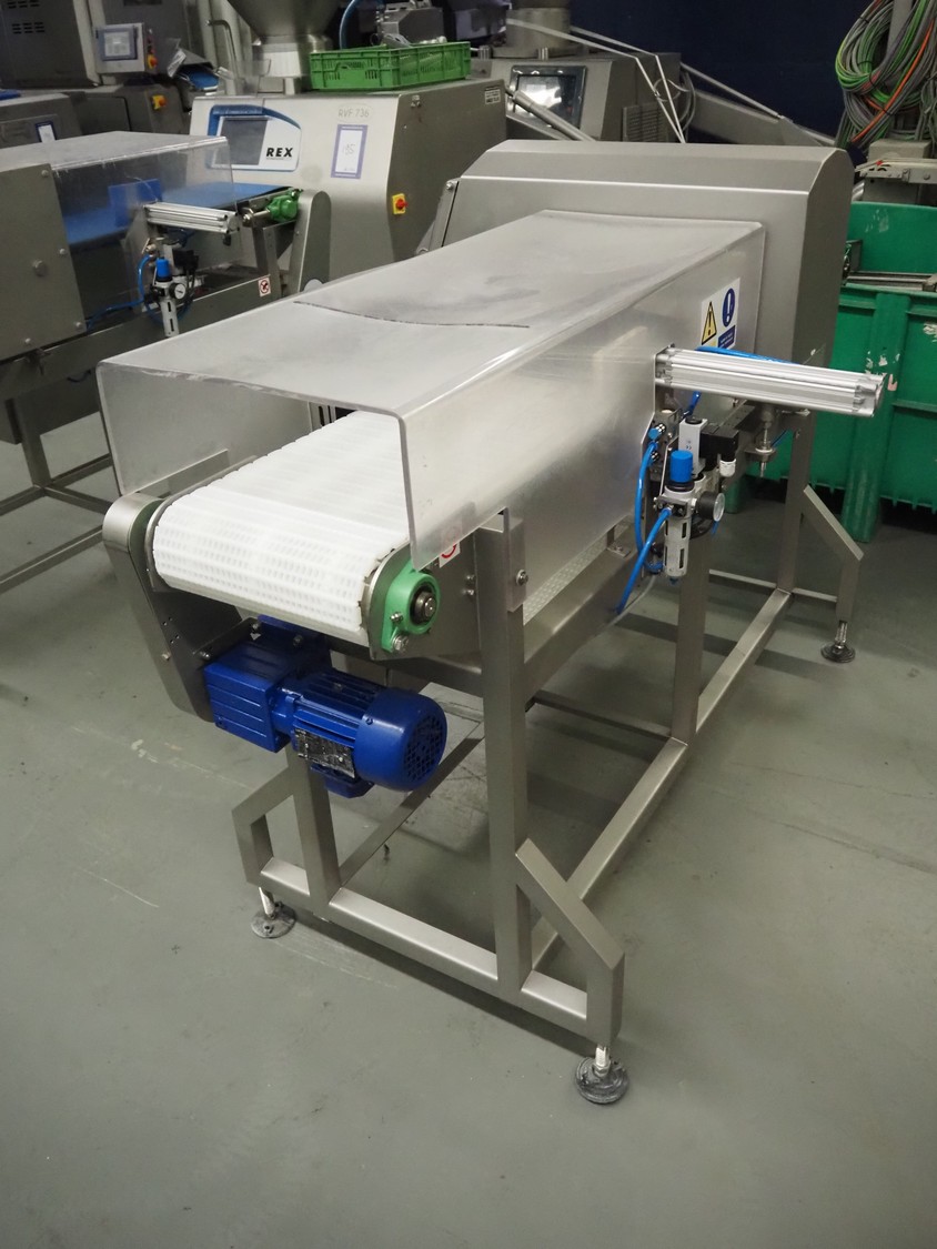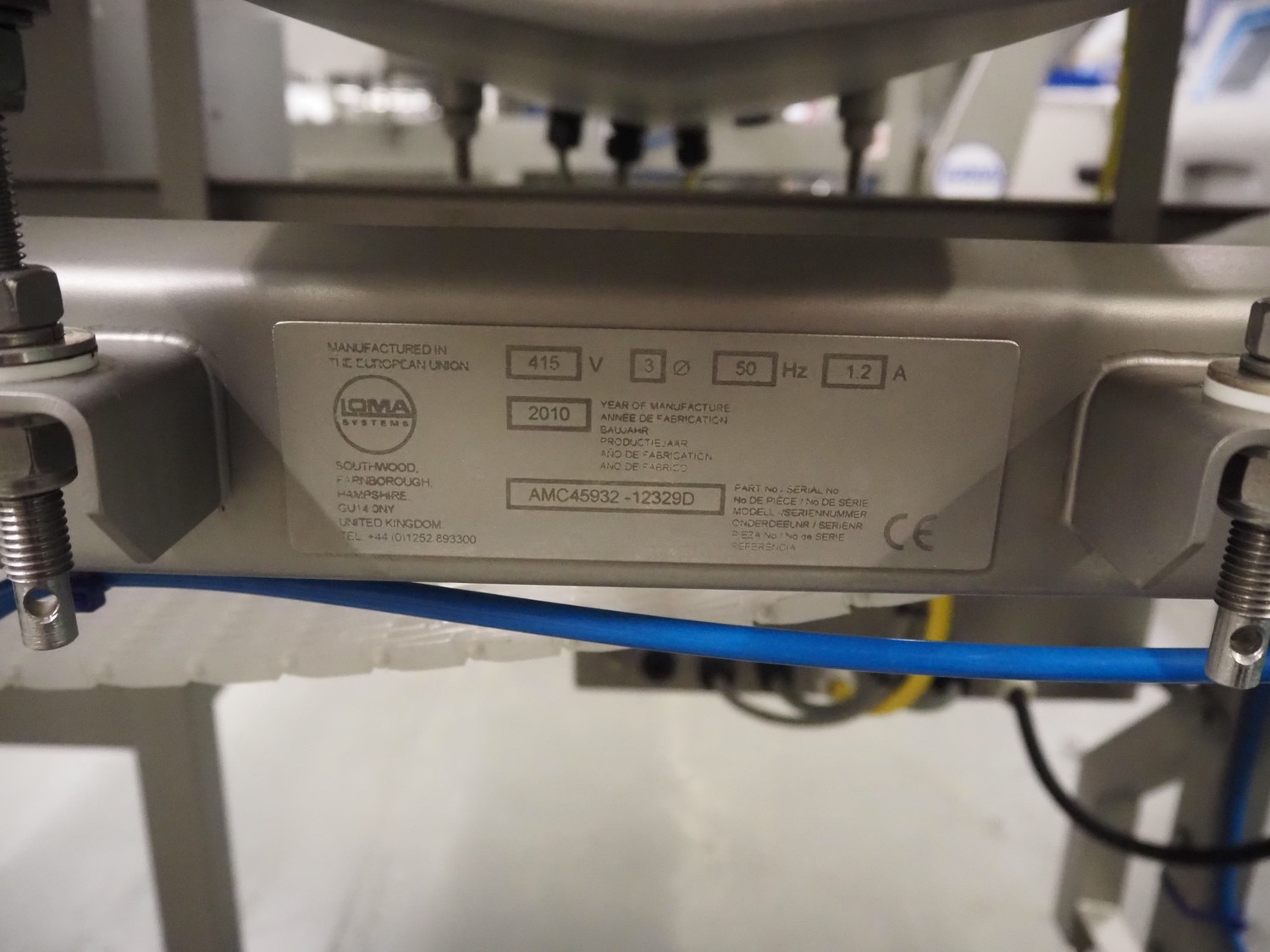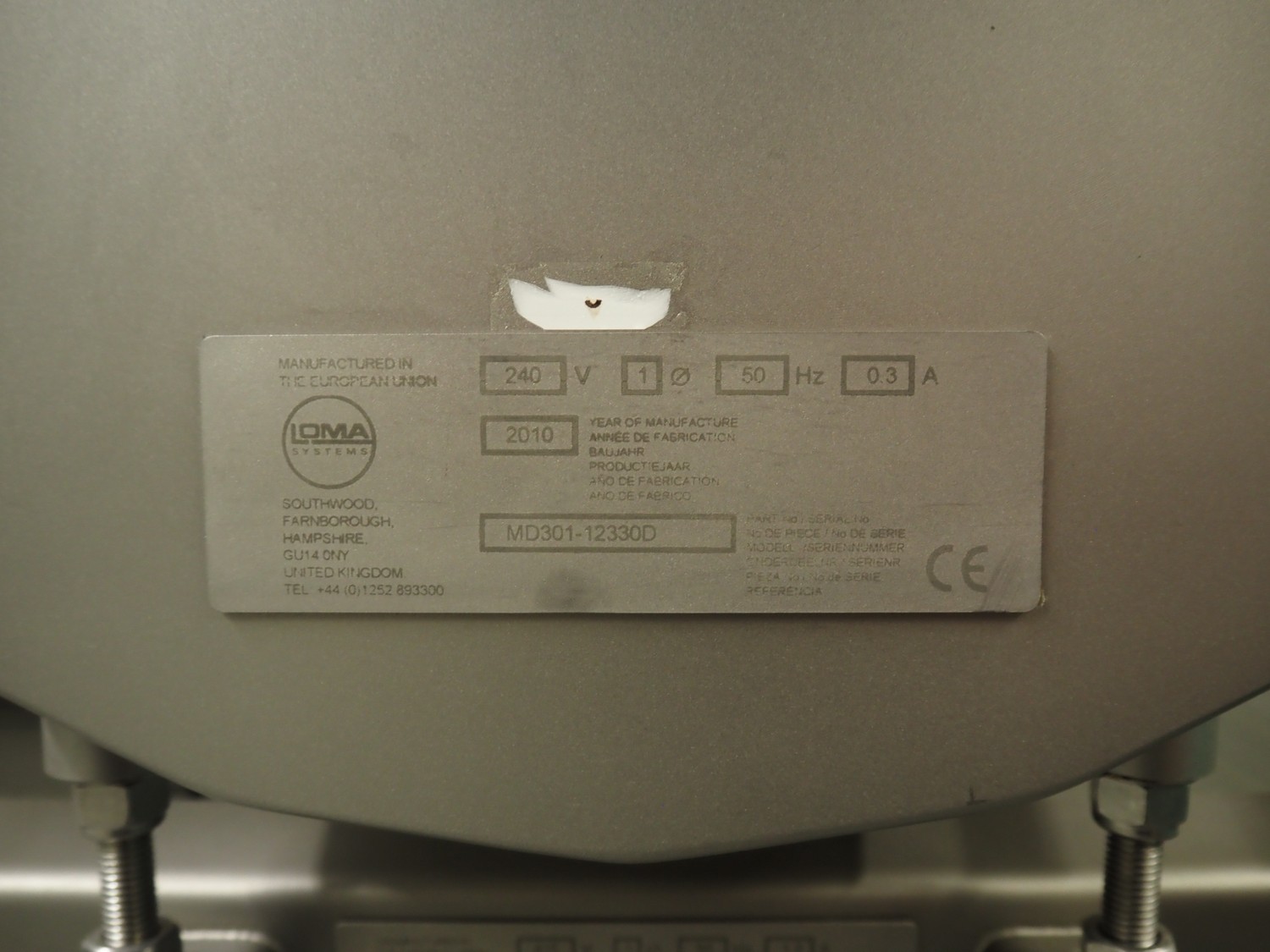 Loma Systems mobile metal detector with rejector, model: IQ³, serial number: MD301-12330D, year of construction: 2010, 240 V, 1 Ph, 50 Hz, 0.3 A, belt width: 300 mm, clearance: 300 mm x 110 mm, total dimensions: 1800 mm x 1100 mm x 1200 mm.