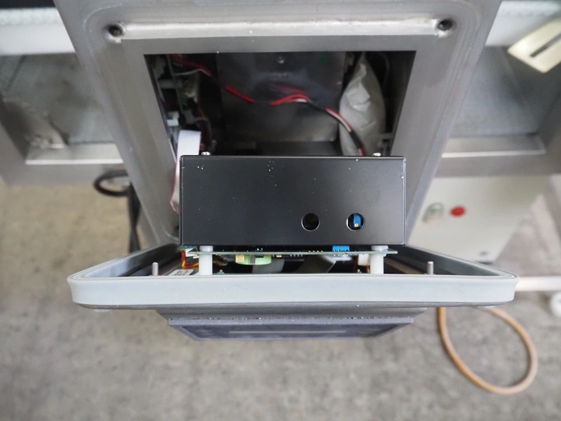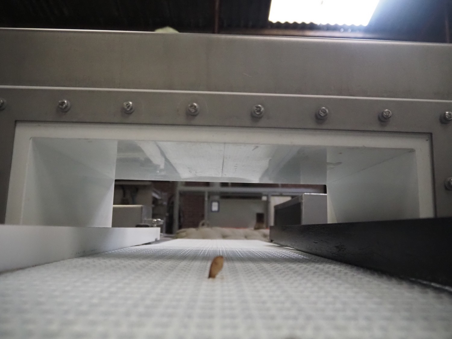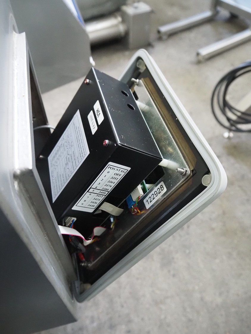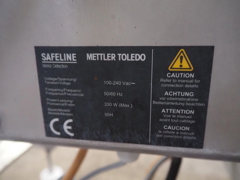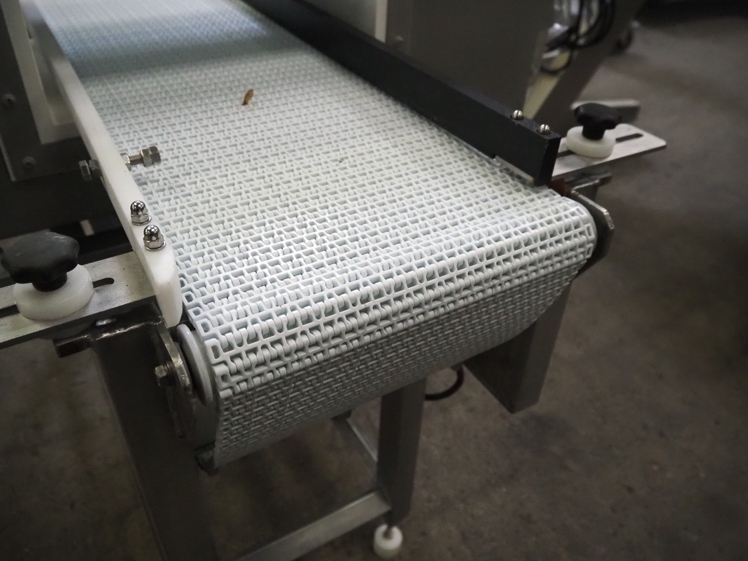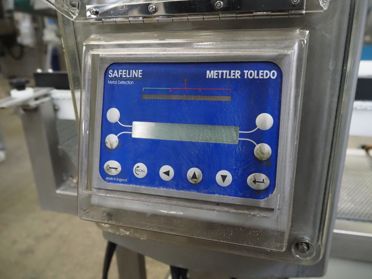 Safeline / Mettler Toledo metal detector with rejector, 100/240 V, 1 Ph, 50/60 Hz, 330 W, plastic mesh belt, belt width: 300 mm, clearance: 350 mm x 110 mm, total dimensions: 1600 mm x 1000 mm x 1170 mm.