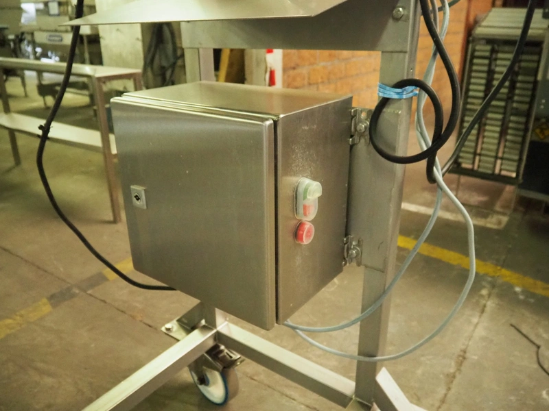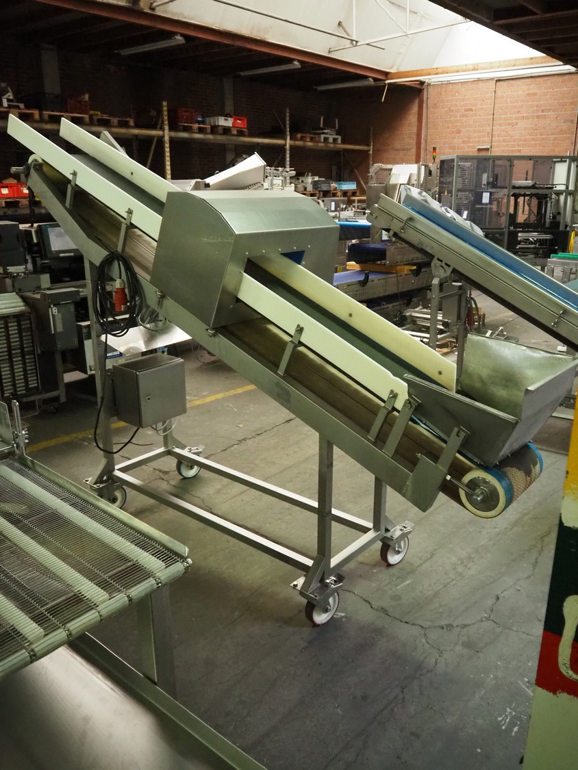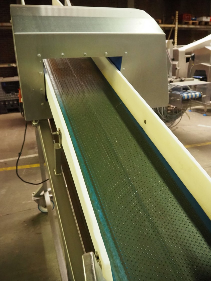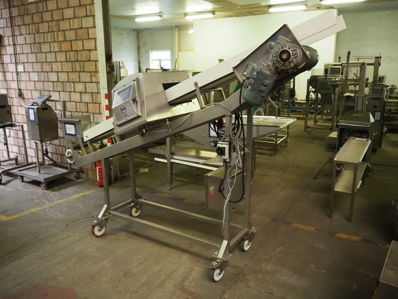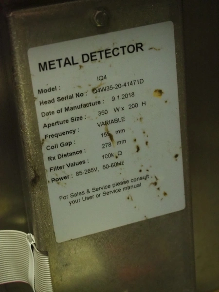 Mobile Loma Systems metal detector with elevating belt, type: IQ4, serial number: Q4W35-20-41471D, year of construction: 09-01-2018, 110-240 V, 50/60 Hz, s/s frame, plastic belt, belt width: 320 mm, clearance: 305 mm x 170 mm, elevating height: 1000 mm, total dimensions: 2800 mm x 780 mm x 2060 mm.