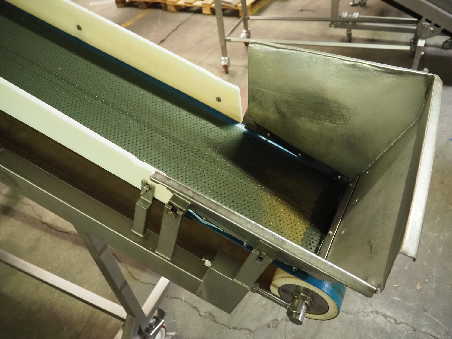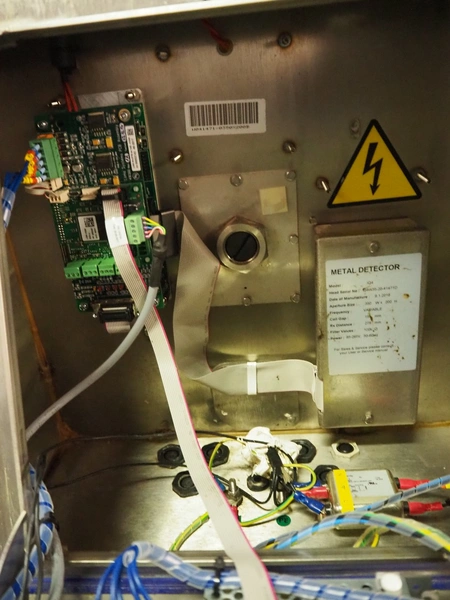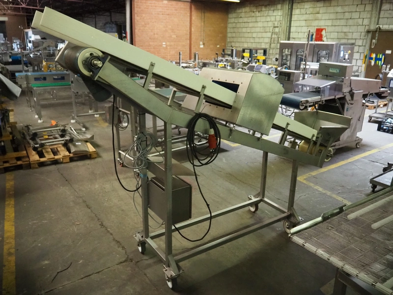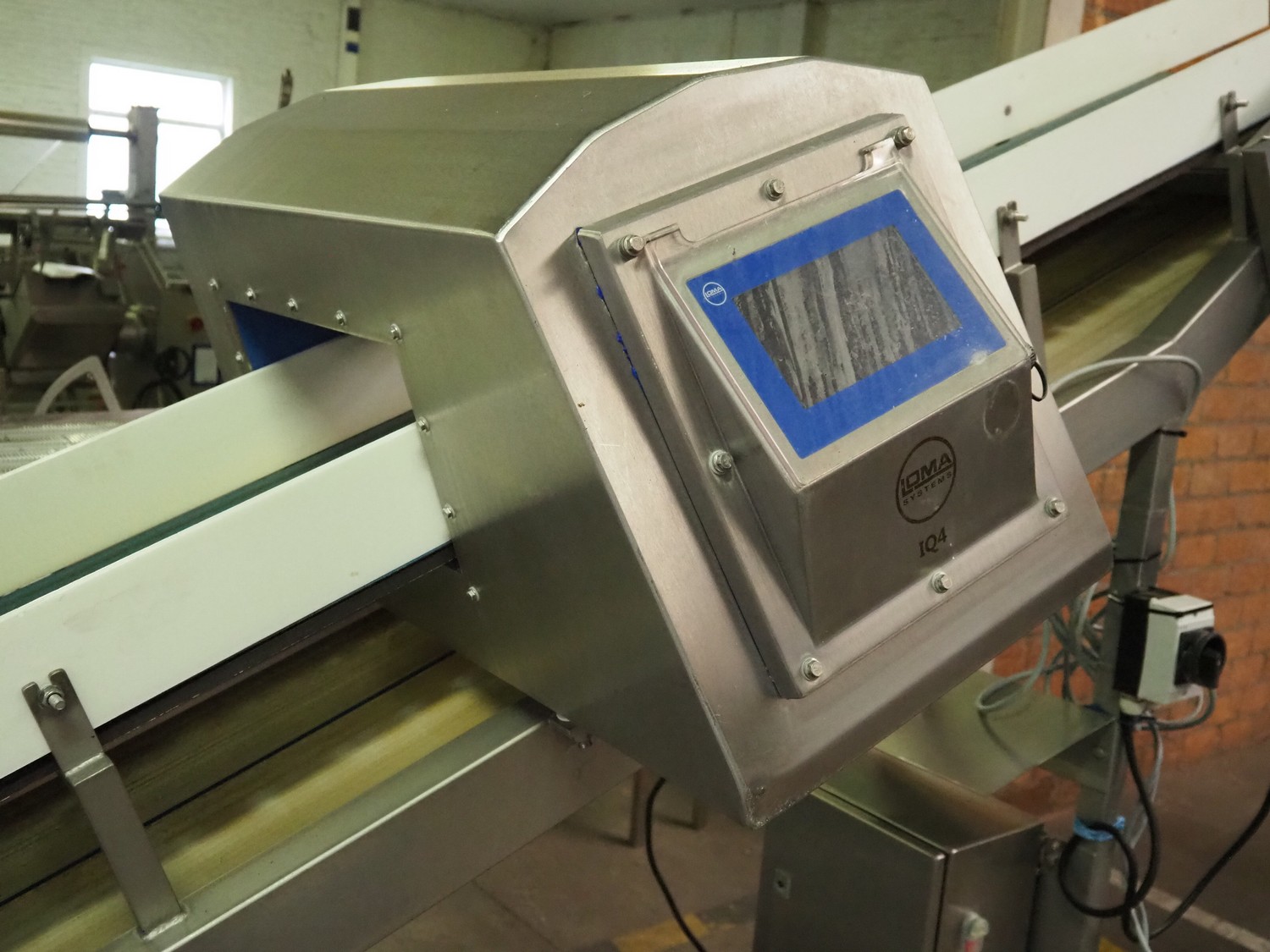 Mobile Loma Systems metal detector with elevating belt, type: IQ4, serial number: Q4W35-20-41471D, year of construction: 09-01-2018, 110-240 V, 50/60 Hz, s/s frame, plastic belt, belt width: 320 mm, clearance: 305 mm x 170 mm, elevating height: 1000 mm, total dimensions: 2800 mm x 780 mm x 2060 mm.