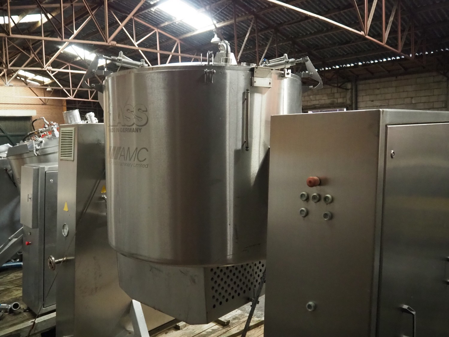 Glass GmbH & Co. KG tiltable vacuum mixer, type: VSM/F 800, machine number: 3171, year of construction: 2009, 400 V, 50 Hz, 4.82 kW, volume: 800 liter, dimensions: 1600 mm x 2800 mm x 2300 mm. Incomplete. Without vacuum pump.