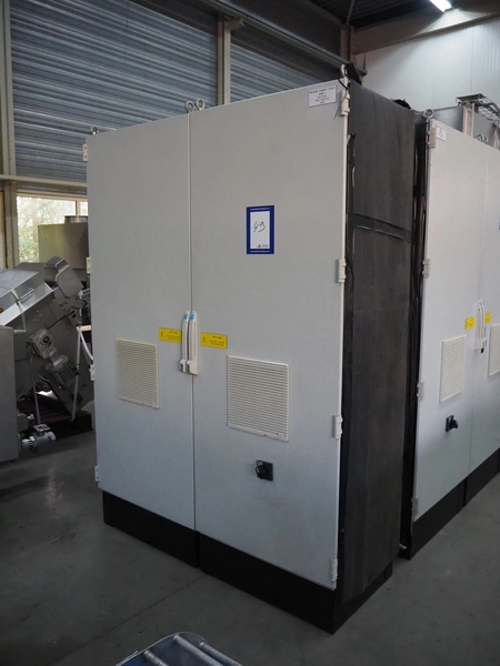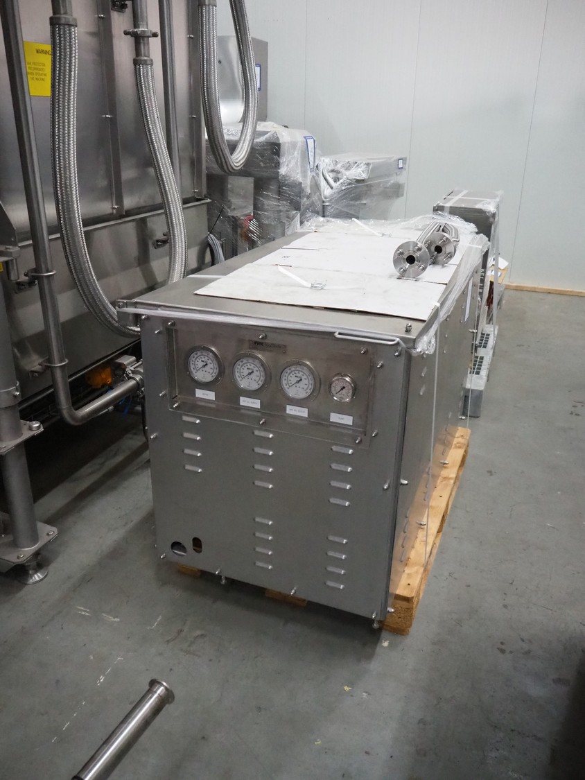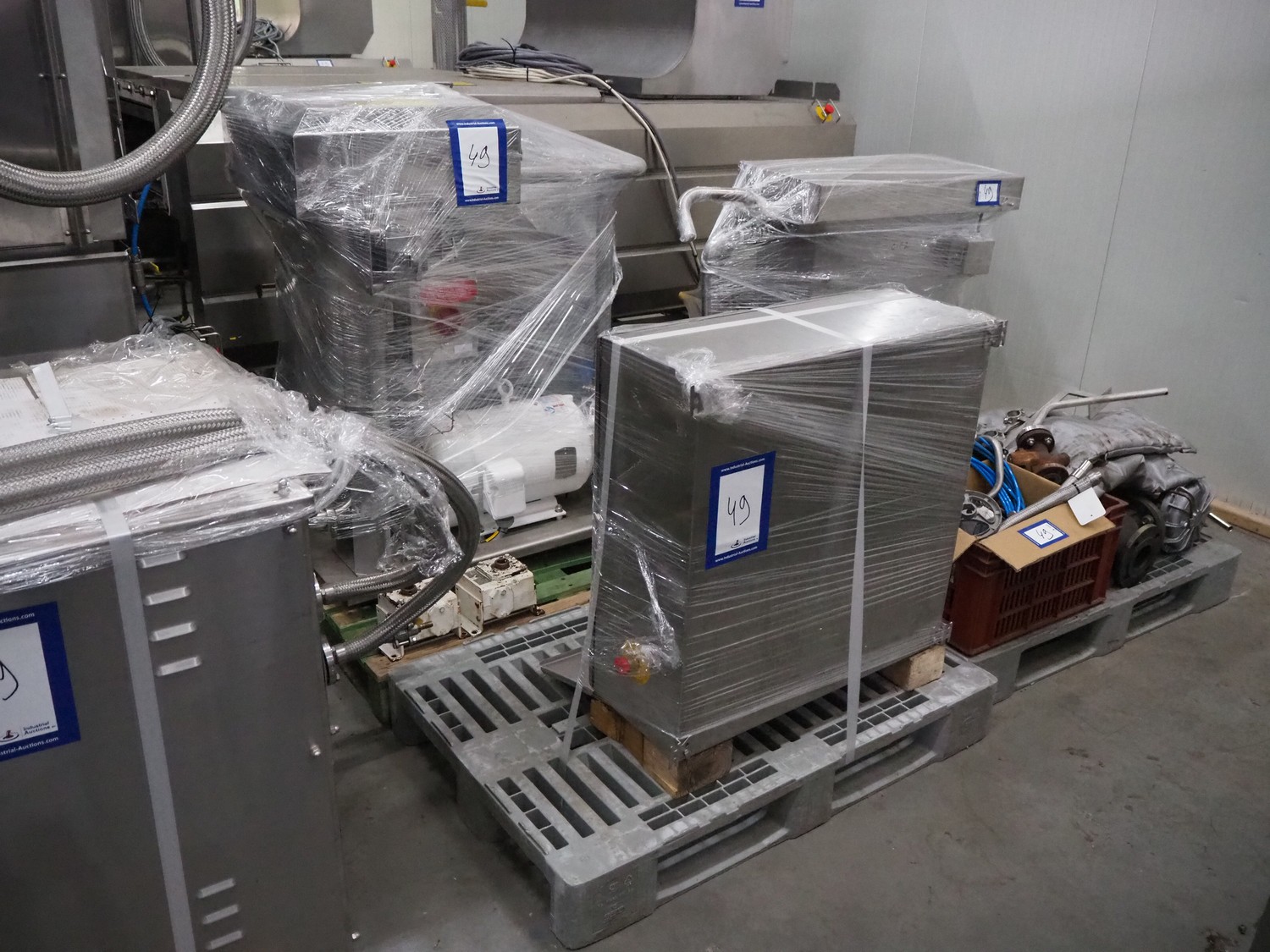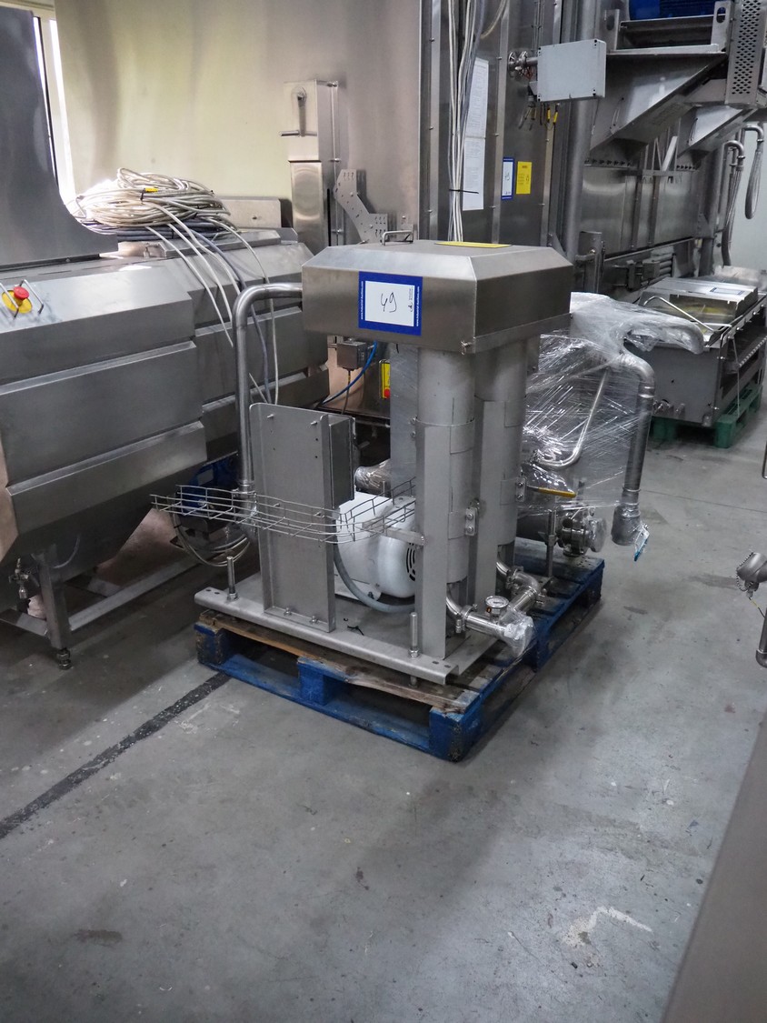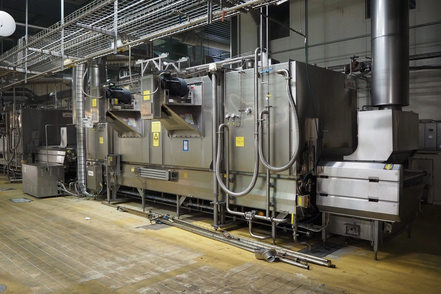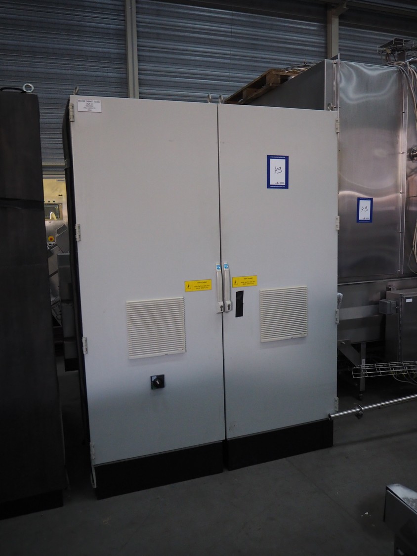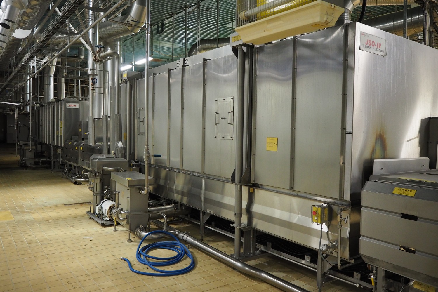 FMC Foodtech / Stein thermal double fluid oven, type: JSO IV OVEN, model: 40-22TF, serial number: 811, 380 VAC, 3 Ph, 50 Hz, full load: 185 A, motor: 46 A, short circuit: 5000 A, s/s mesh belt, belt width: 102 mm, clearance: 25 - 150 mm, total dimensions: 23200 mm x 3700 mm x 3300 mm. Overhauled in 2024.