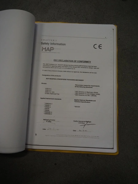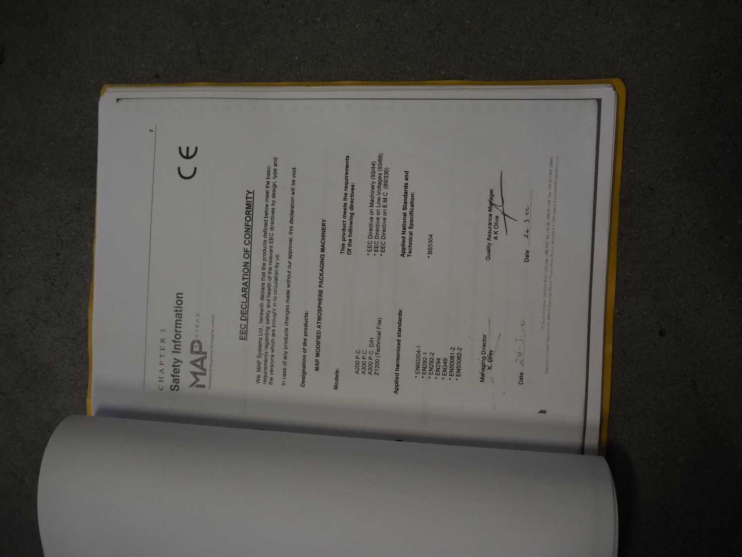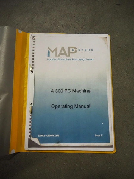CVP SYSTEMS INC mobile modified atmosphere packaging machine, model number: A-300, serial number: 9313-27, 240 V, 1 Ph, 50/60 Hz, 10 A, seal length: 1400 mm, total dimensions: 1500 mm x 1150 mm x 1950 mm.