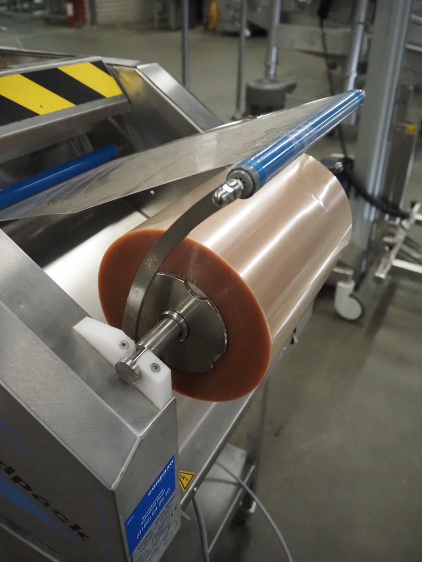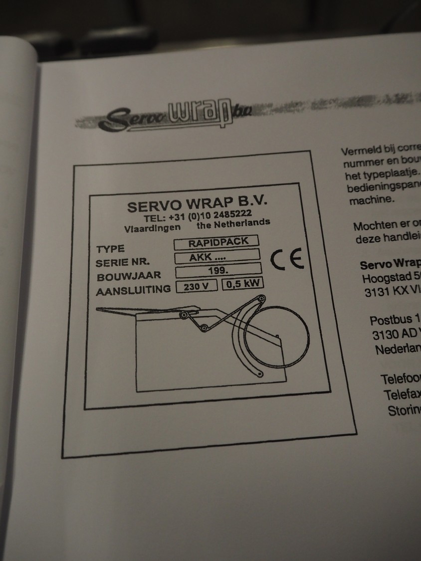 Conpax Servo Wrap mobile packaging machine, film width: 230 mm, total dimensions: 1100 mm x 500 mm x 1050 mm.
