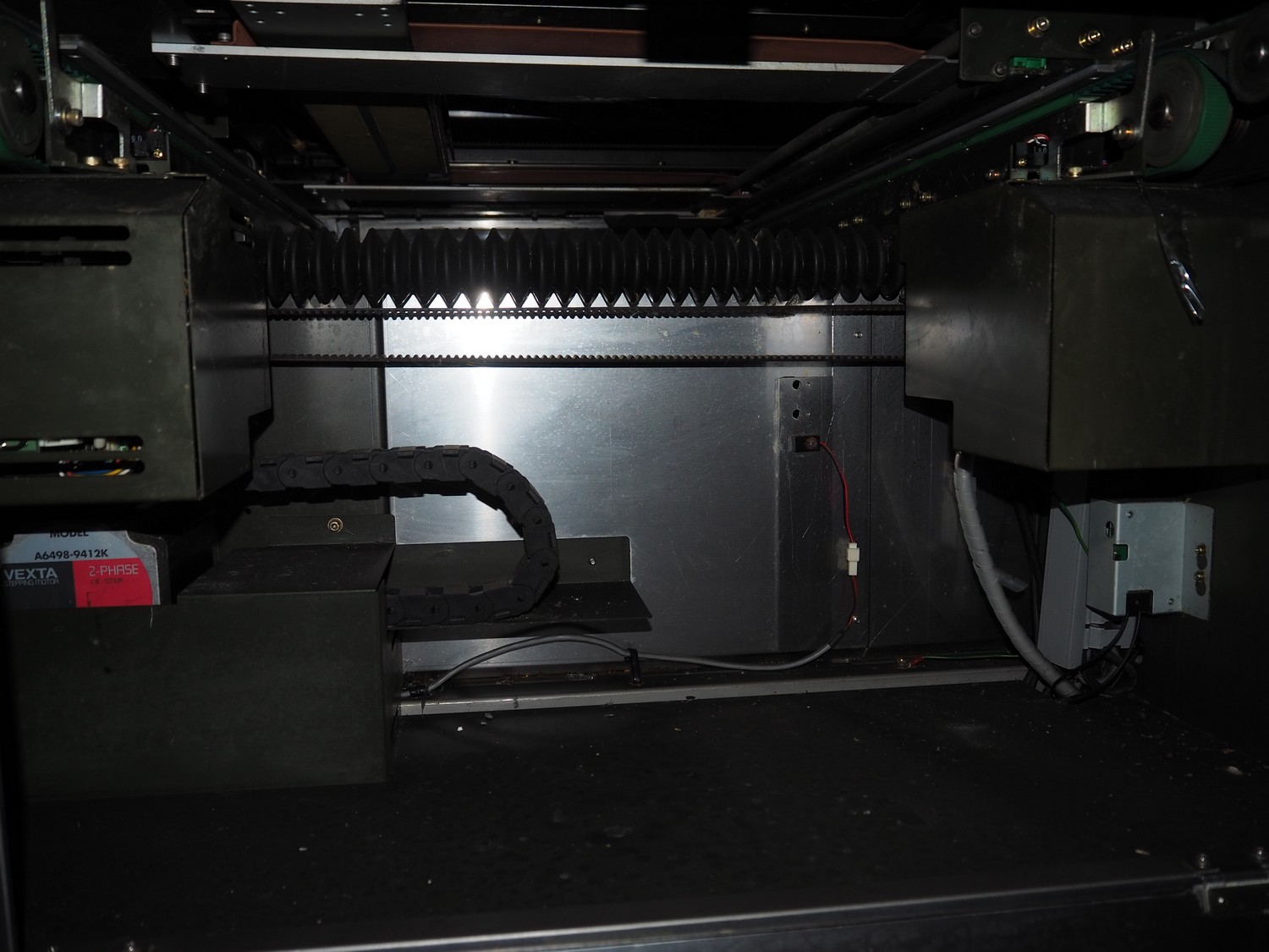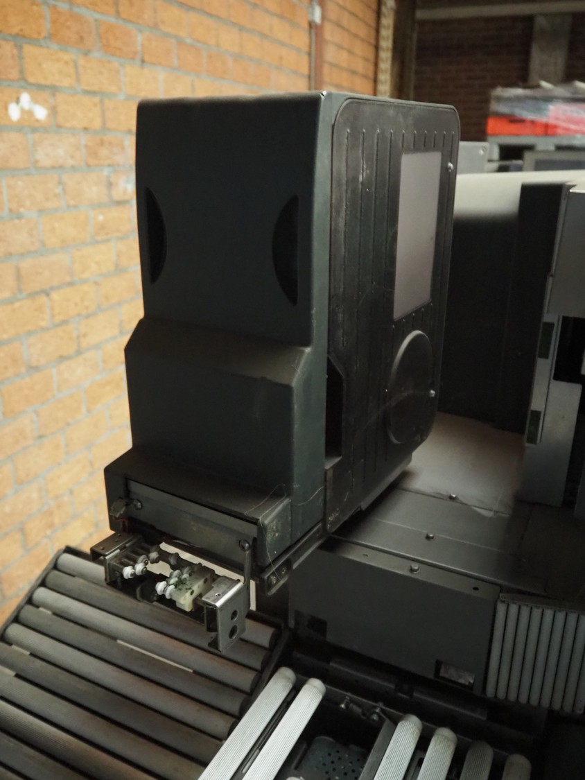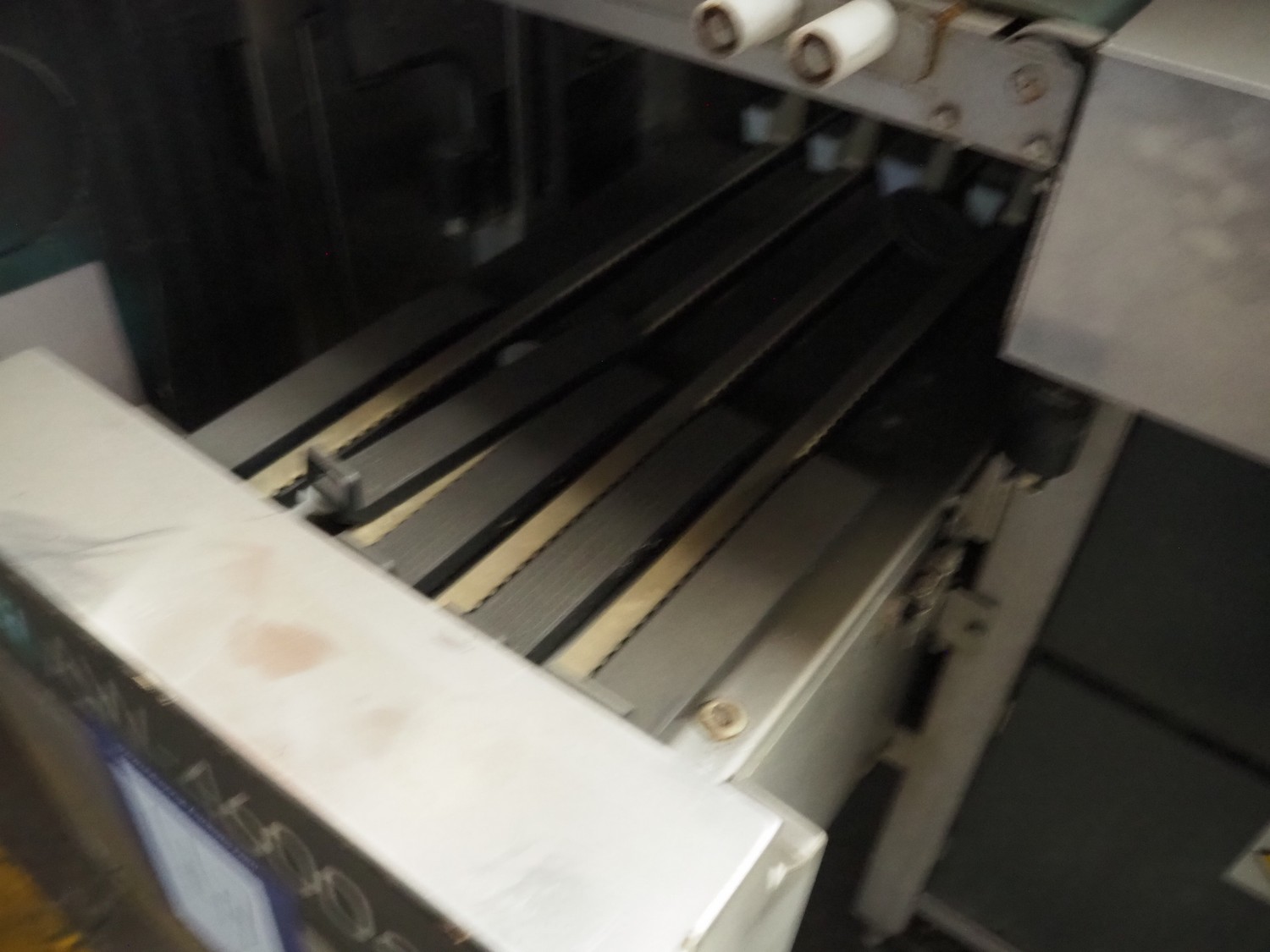 Teraoka Seiko Co., LTD automatic weigh/wrap/label system, model: AW-4600e, serial number: 10166611, year of construction: 2010, 220-240 V, 1 Ph, 50 Hz, 7.5 A, 1.7 kW, maximum weight: 3/6 kg, minimum weight: 20 gram, e=1/2 gram, T=2.999 kg, plastic belts, belt width: 400 mm and 150 mm, total dimensions: 1350 mm x 1250 mm x 1500 mm.