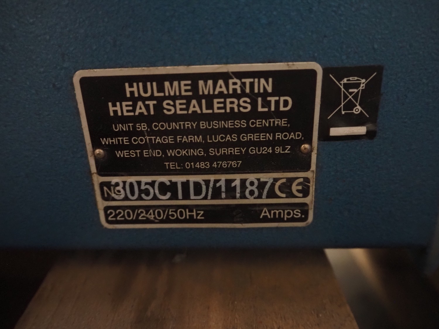 Hulme martin heat sealer, number: 305CTD/1187, 220/240 V, 50 Hz, 2 A, seal length: 300 mm, total dimensions: 440 mm x 230 mm x 230 mm.