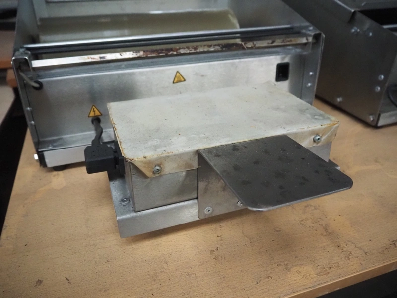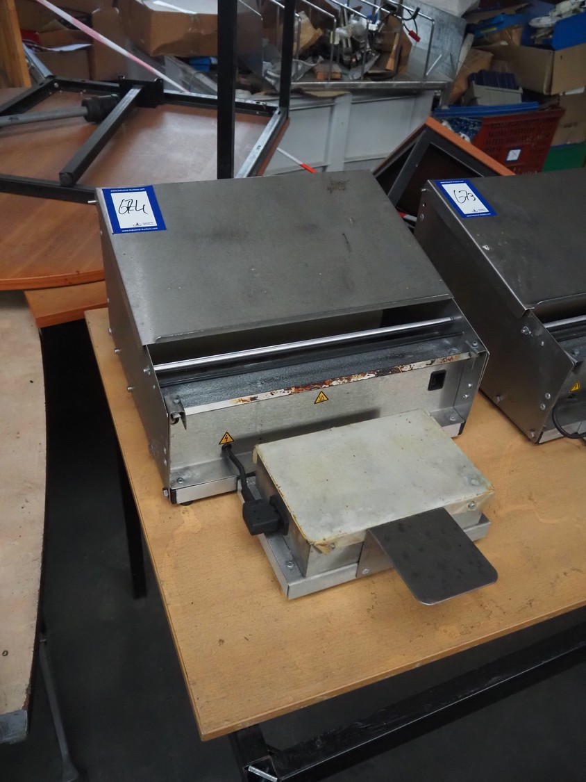 Film wrapping machine, 230 V, 50 Hz, 350 W, film width: 400 mm, total dimensions: 500 mm x 720 mm x 280 mm.