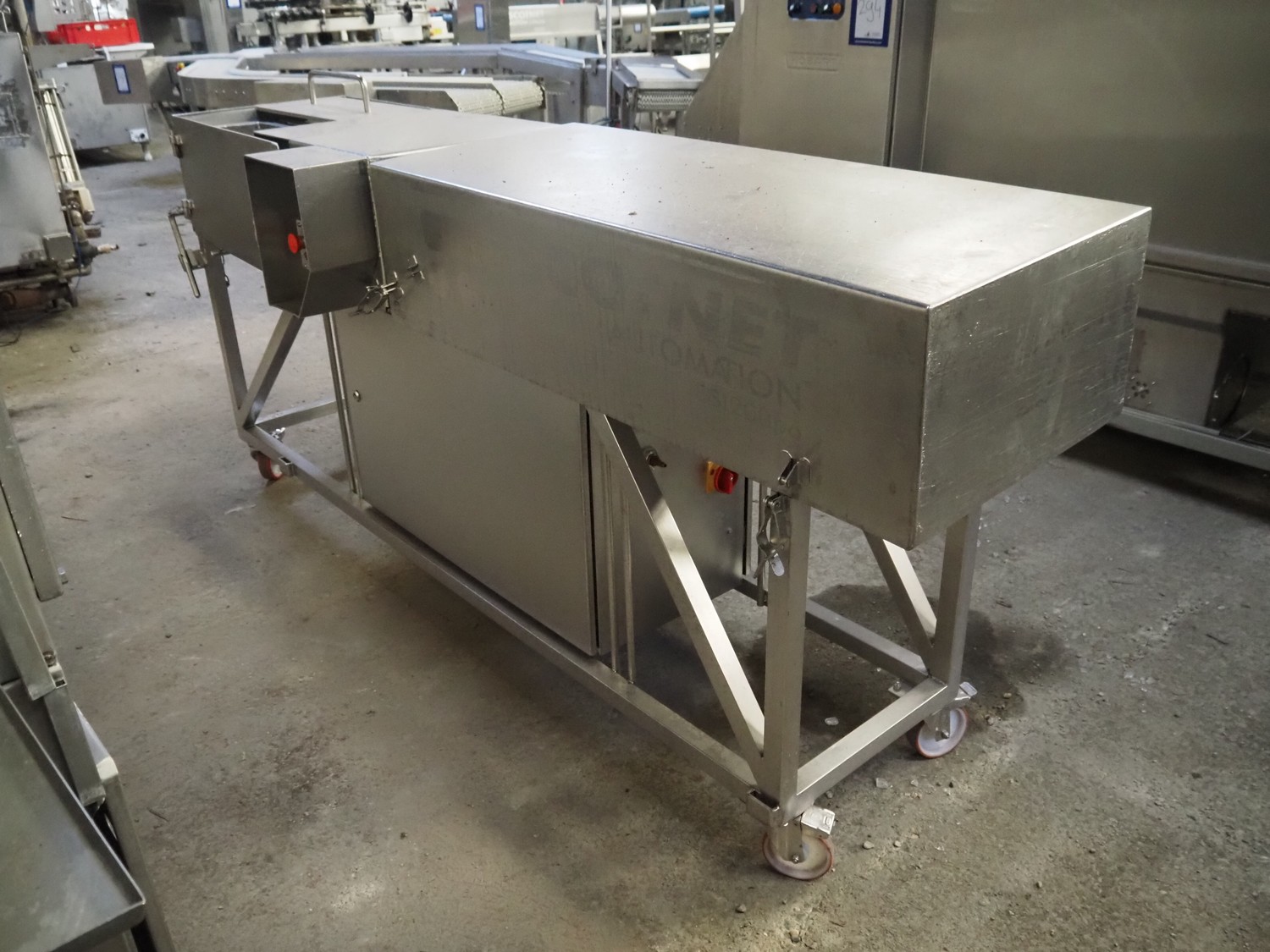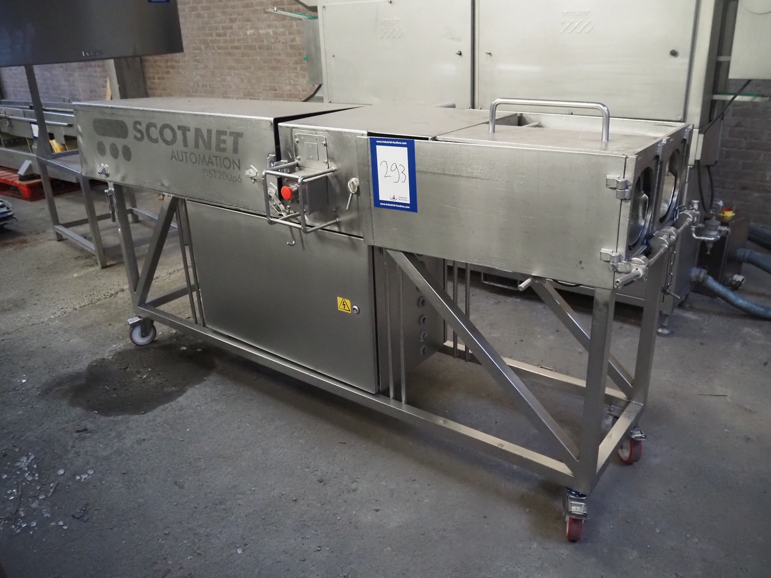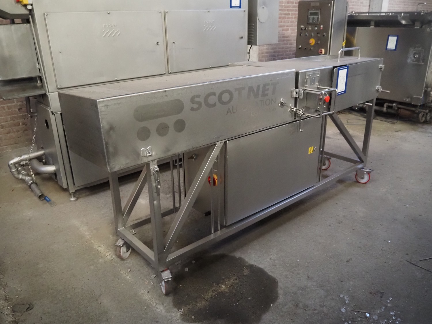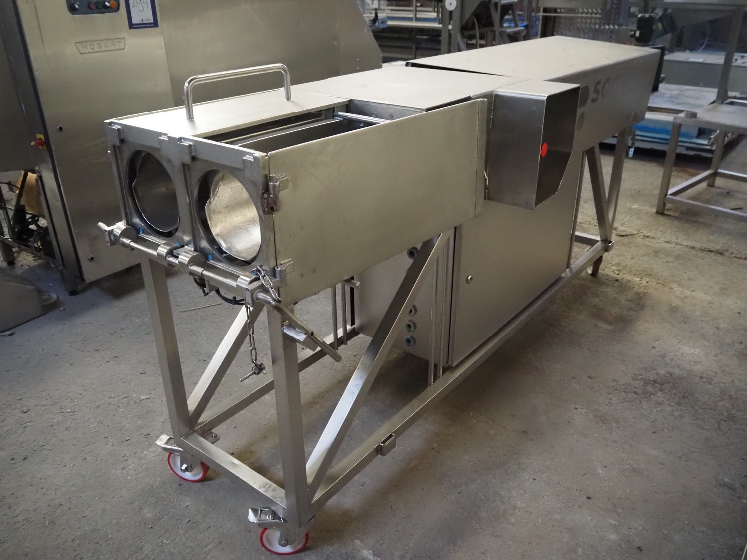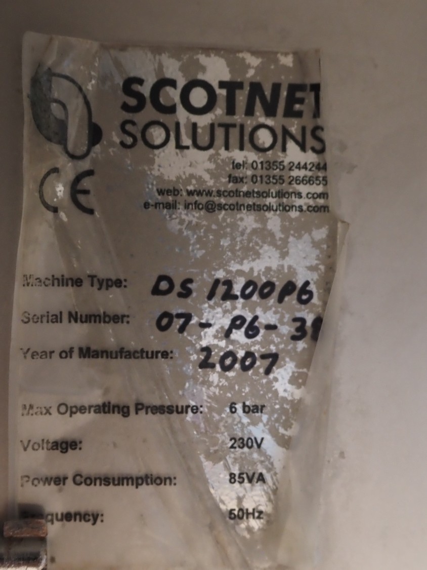 Scotnet mobile automatic double ham press, model: DST 200 pb, serial number: 07-P6-31, year of construction: 2007, 230 V, 50 Hz, 6 bar, dimensions: 2400 mm x 800 mm x 1100 mm. Incomplete.