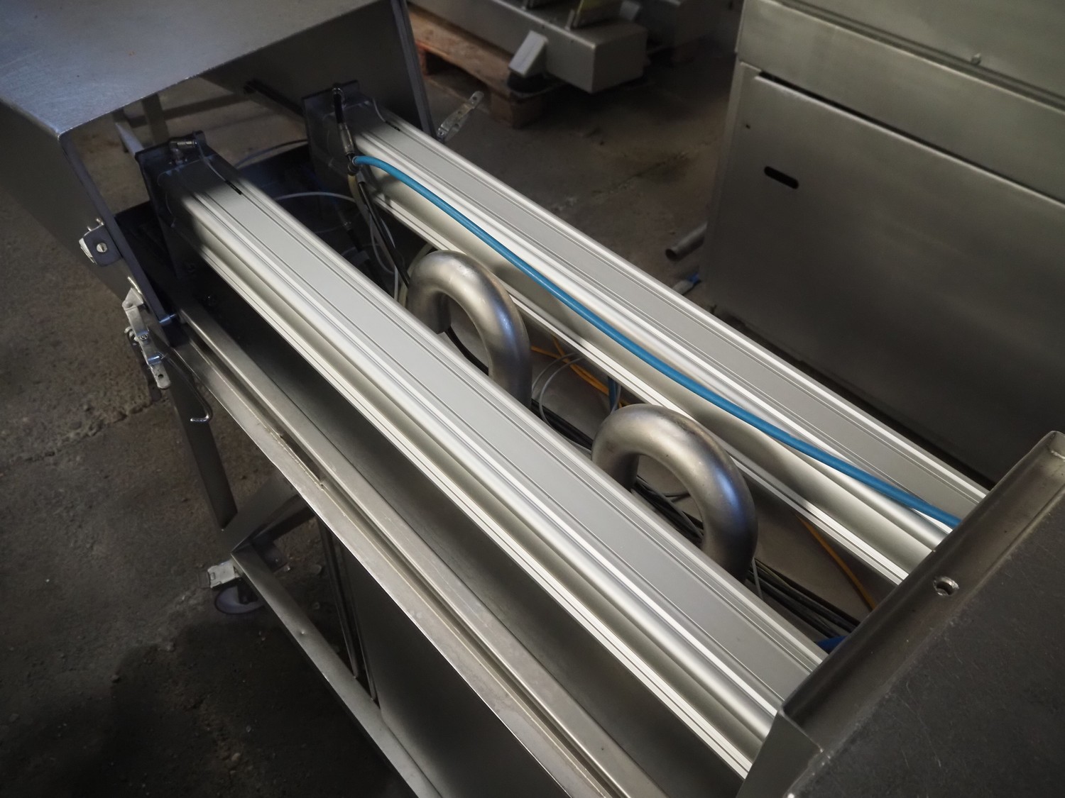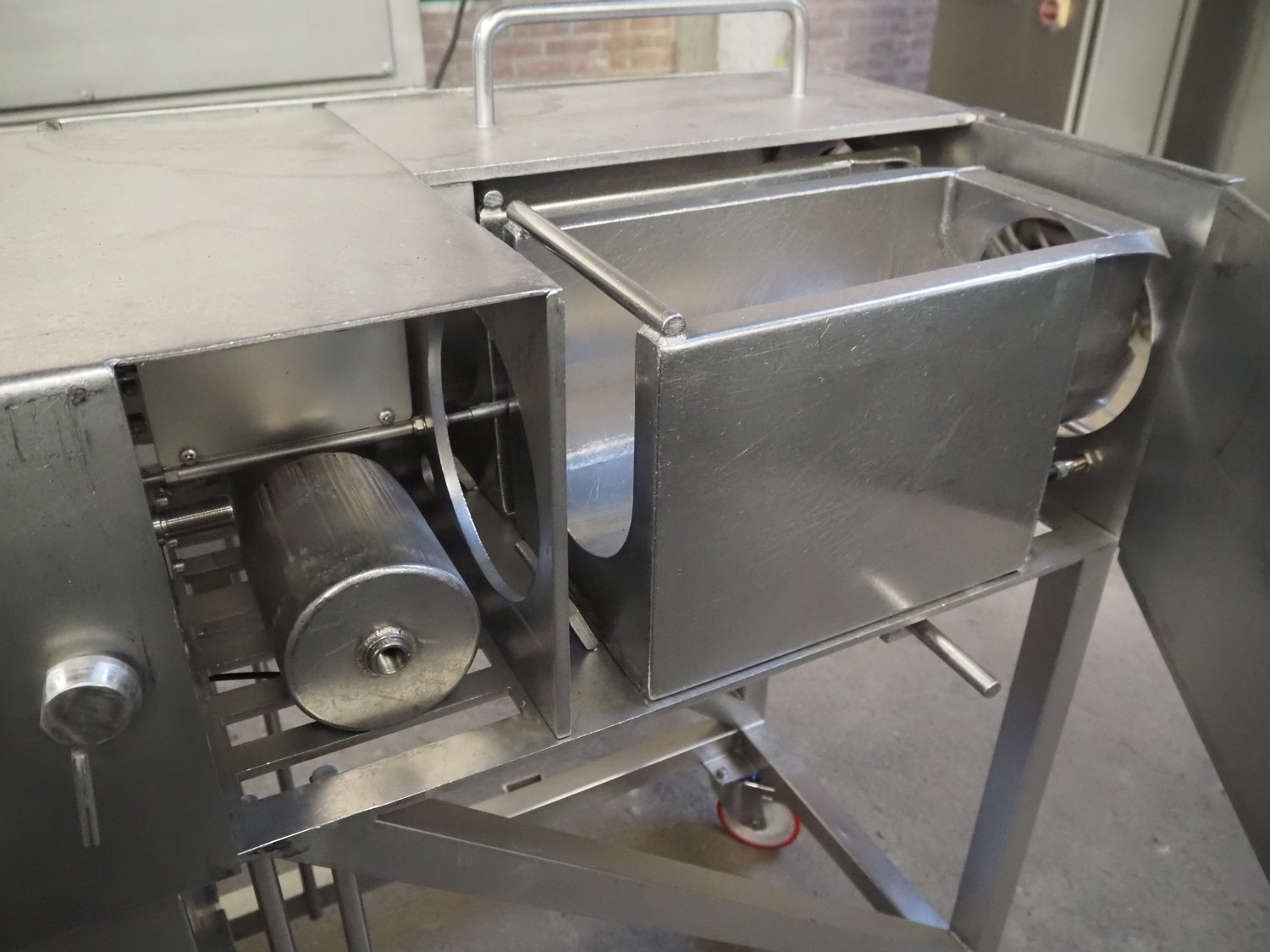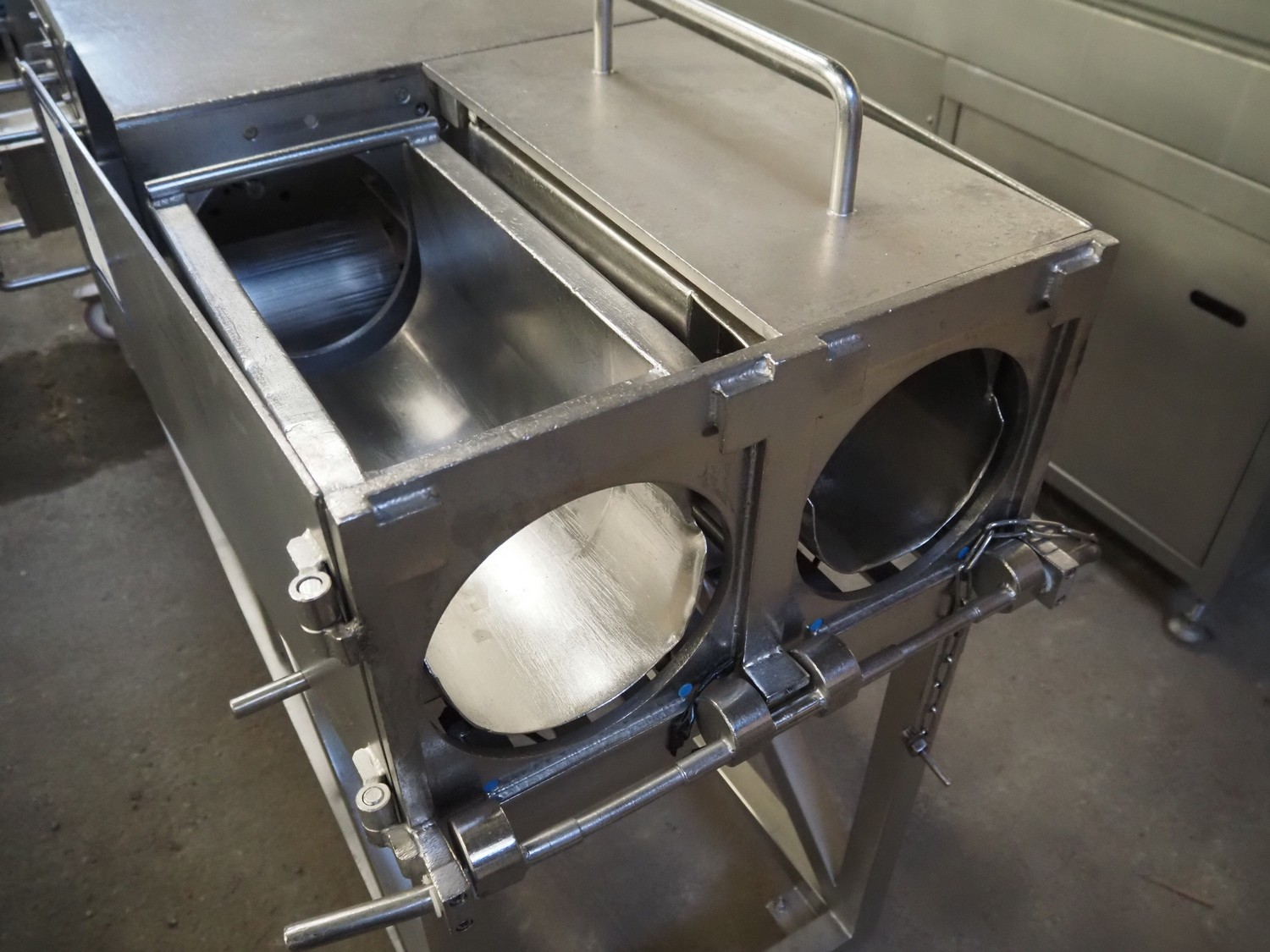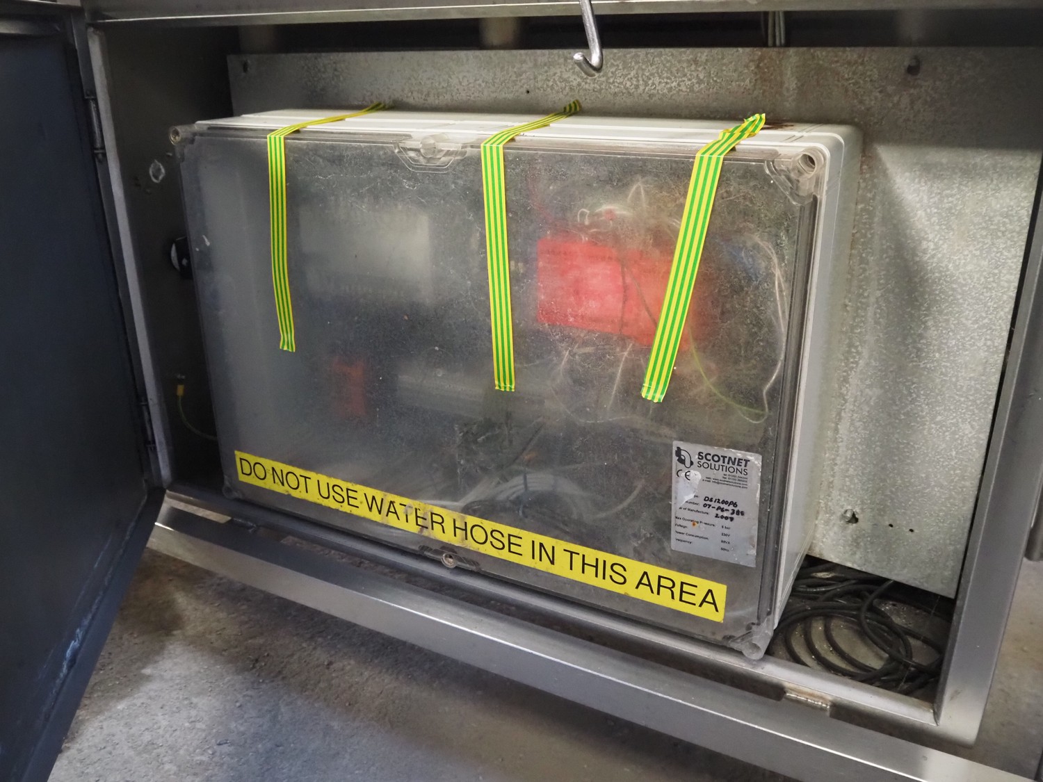 Scotnet mobile automatic double ham press, model: DST 200 pb, serial number: 07-P6-31, year of construction: 2007, 230 V, 50 Hz, 6 bar, dimensions: 2400 mm x 800 mm x 1100 mm. Incomplete.