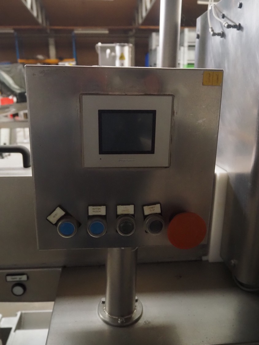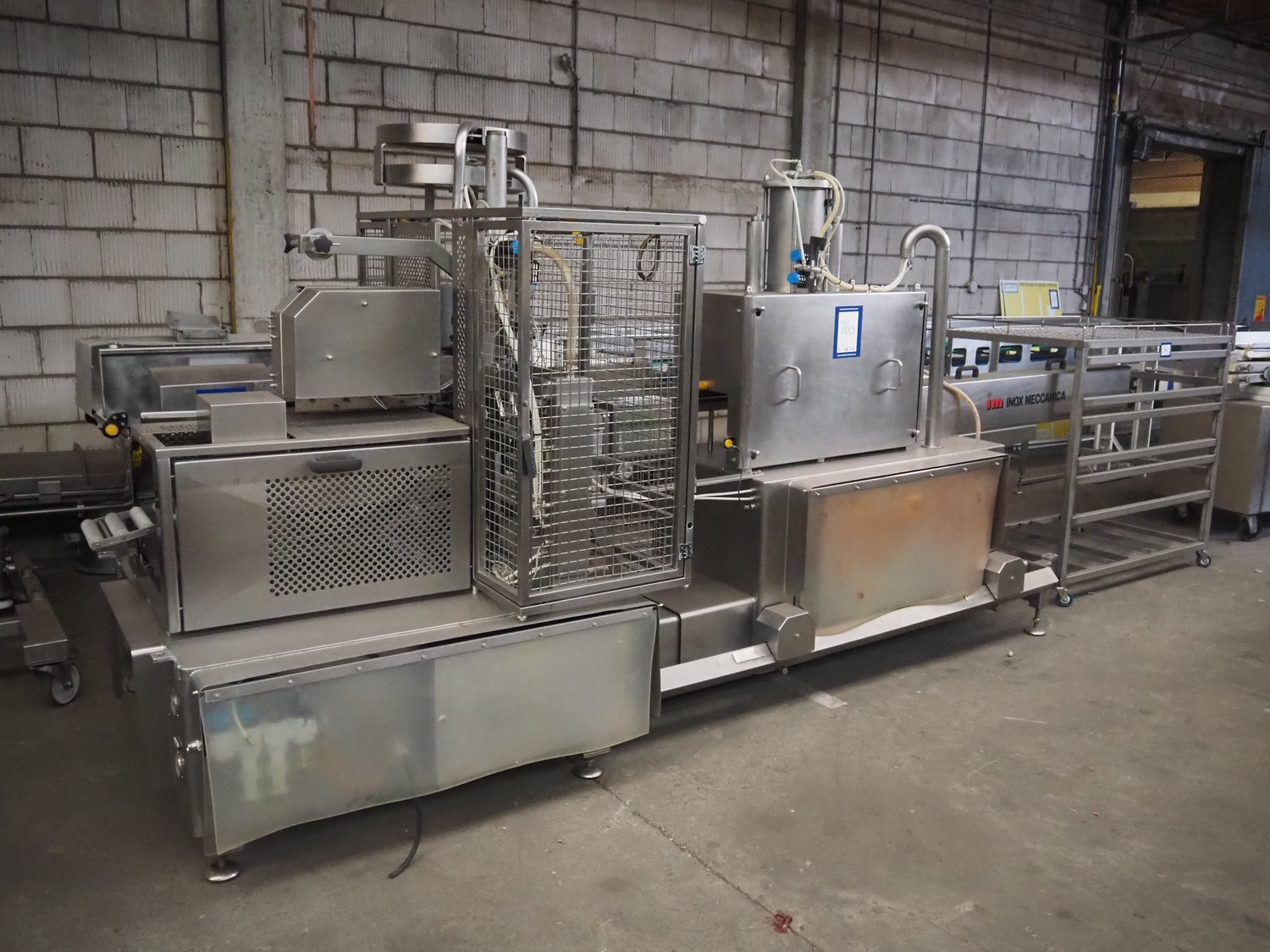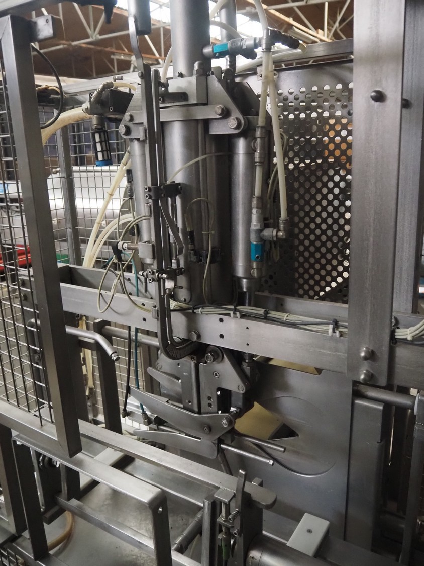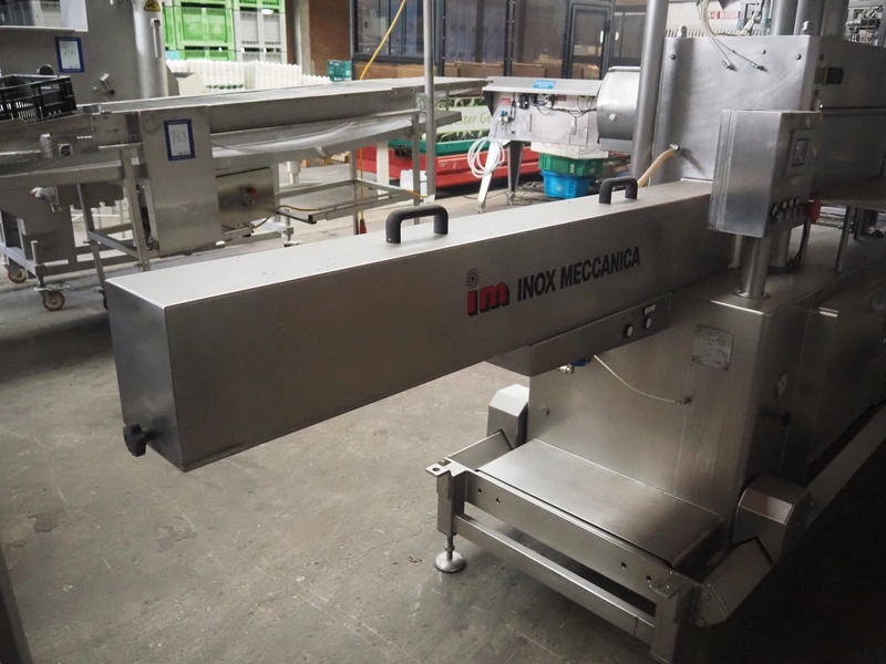 Inox Meccanica press, stuffing and automatic clipping machine, type: Pic 99B, number: 1822, year of construction: 2007, 380 V, 1 Ph, 50 Hz, plastic belt, belt width: 200 mm, total dimensions: 4700 mm x 1300 mm x 2100 mm. Incomplete, technical condition unknown.