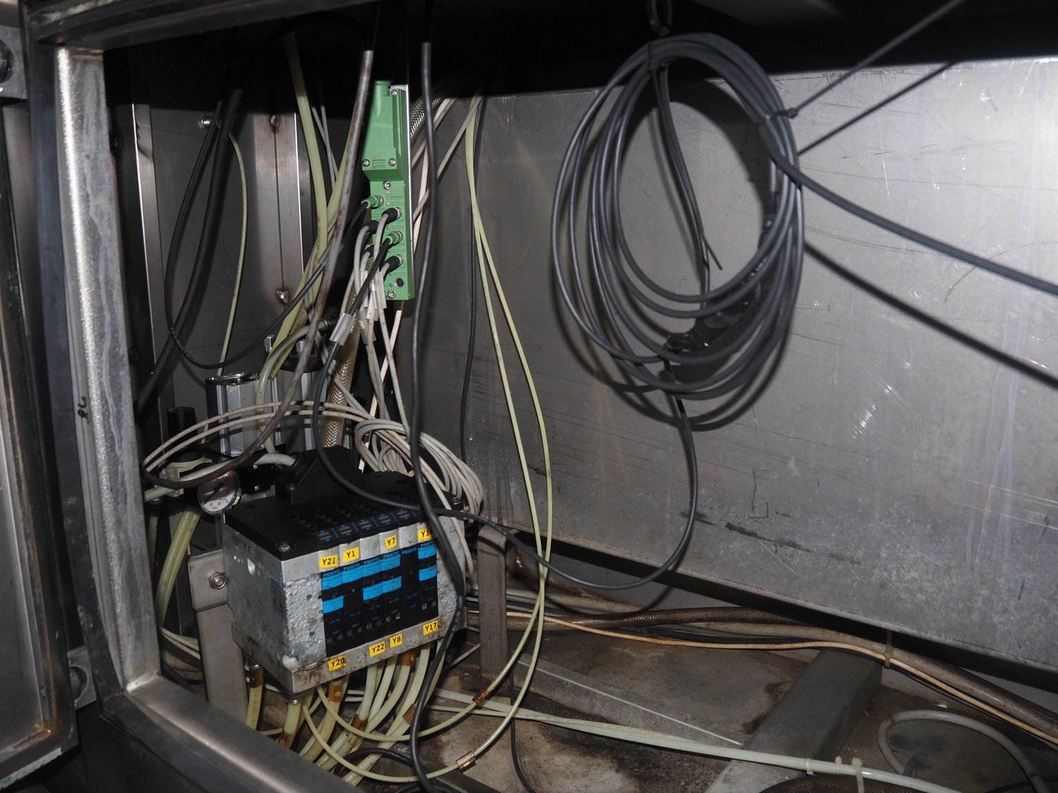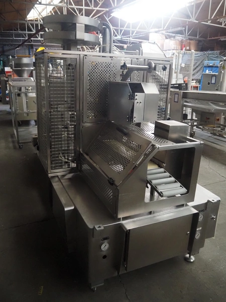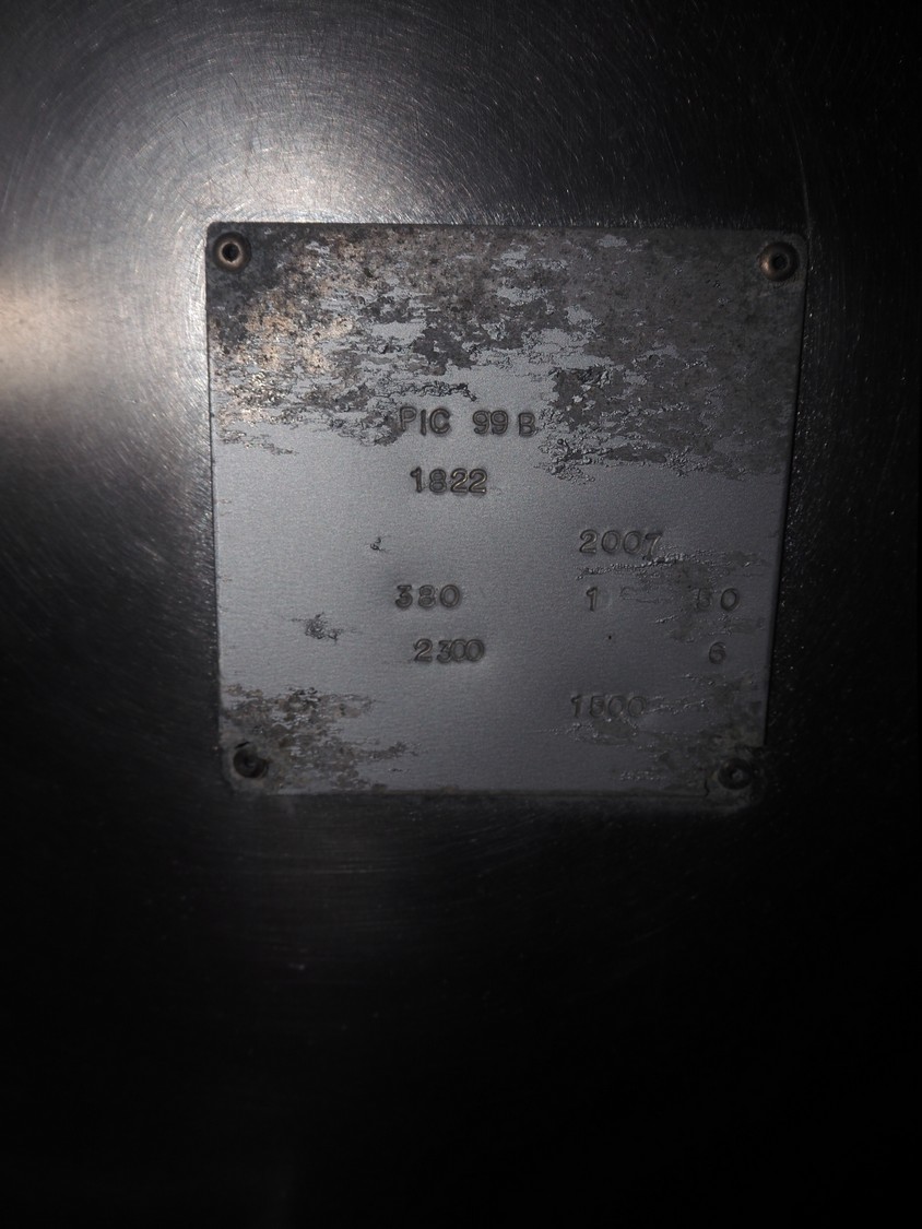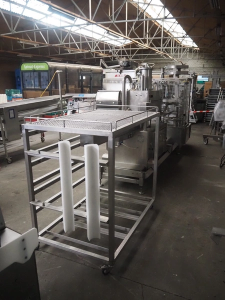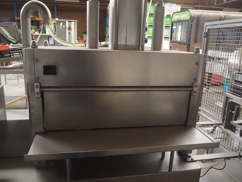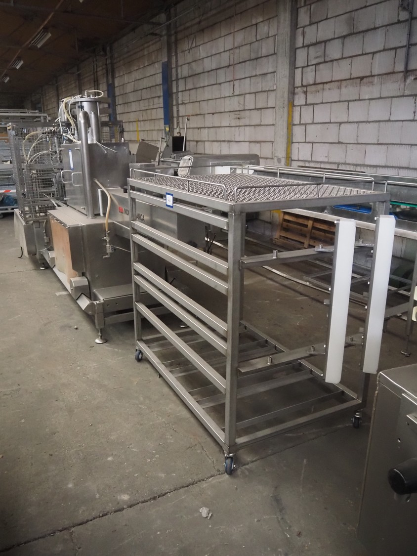 Inox Meccanica press, stuffing and automatic clipping machine, type: Pic 99B, number: 1822, year of construction: 2007, 380 V, 1 Ph, 50 Hz, plastic belt, belt width: 200 mm, total dimensions: 4700 mm x 1300 mm x 2100 mm. Incomplete, technical condition unknown.