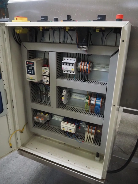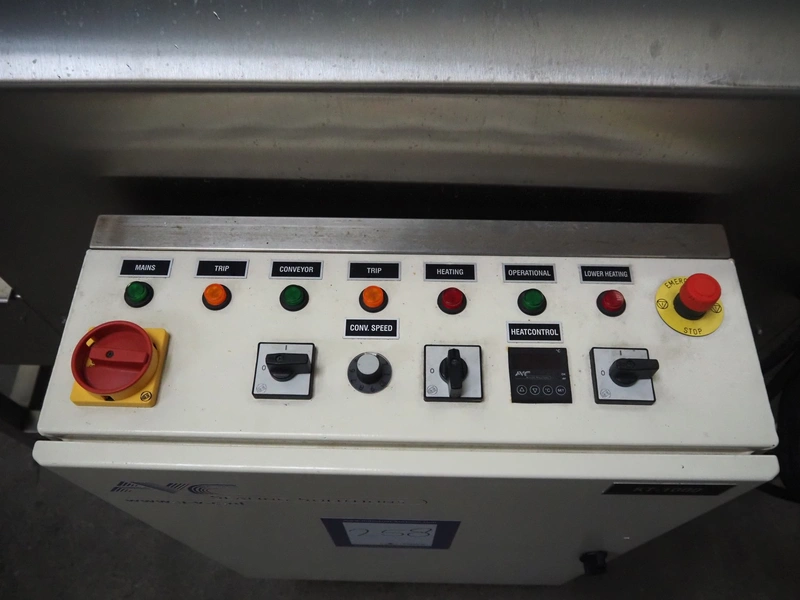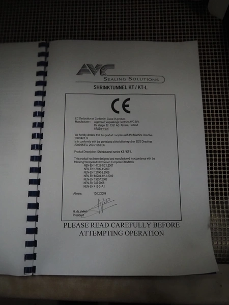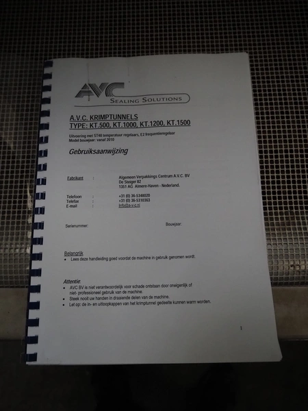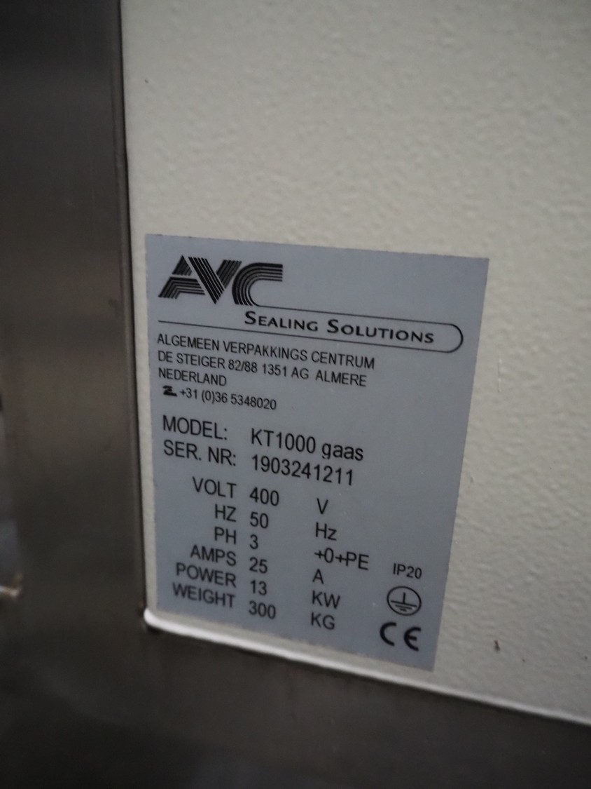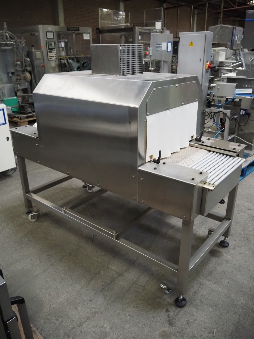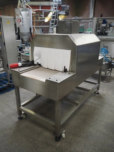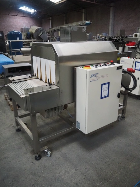 AVC mobile shrinking tunnel, model: KT1000 gaas, serial number: 1903241211, 400 V, 3 Ph, 50 Hz, 25 A, 13 kW, weight: 300 kg, mesh belt, belt width: 470 mm, aluminium rollers, roller width: 520 mm, clearance: 460 mm x 320 mm, total dimensions: 1900 mm x 1150 mm x 1600 mm.