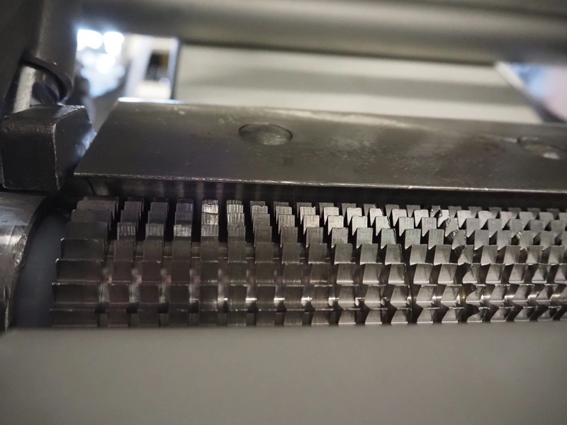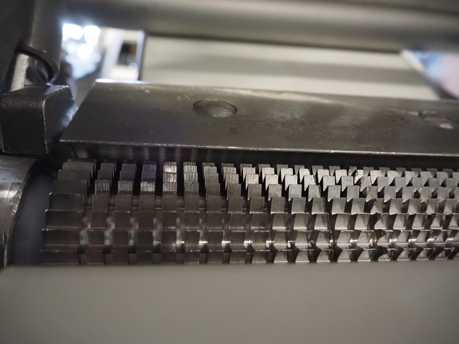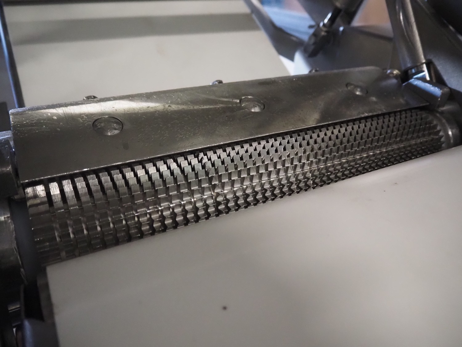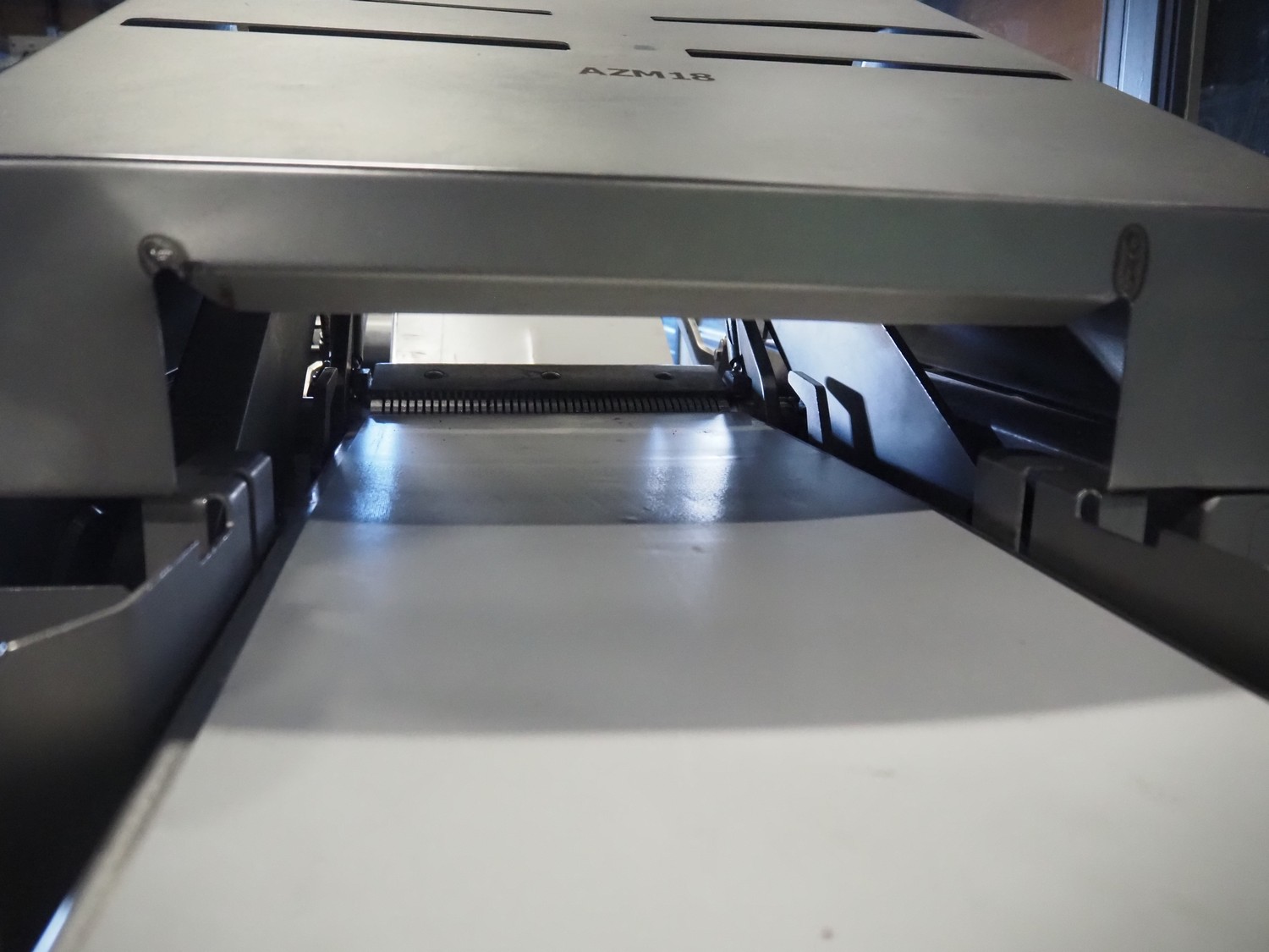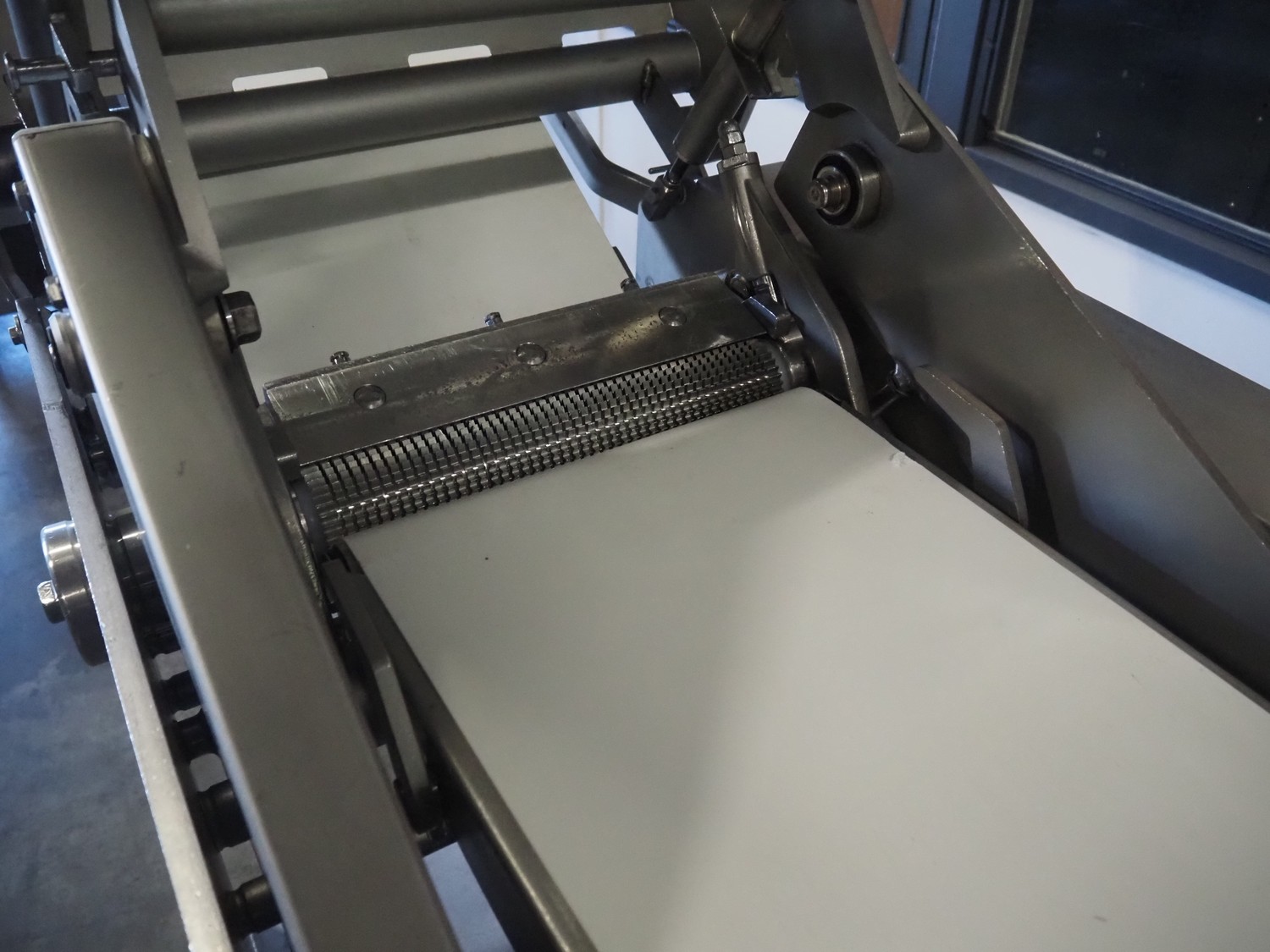 Townsend mobile skinning and derinding machine, model: 9000-H, serial number: 765, year of construction: 2001, 380 V, 3 Ph, 50 Hz, 3.5 A, belt width: 350 mm, working width: 350 mm, total dimensions: 2000 mm x 750 mm x 1350 mm. Incomplete.