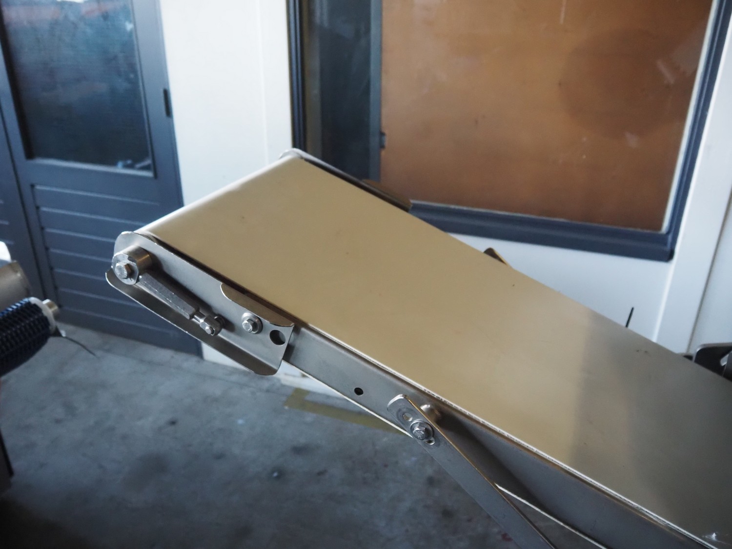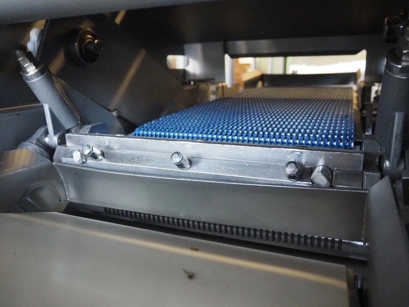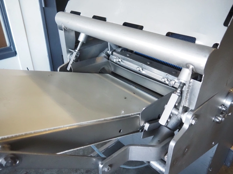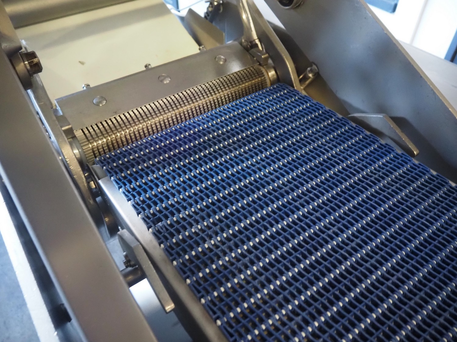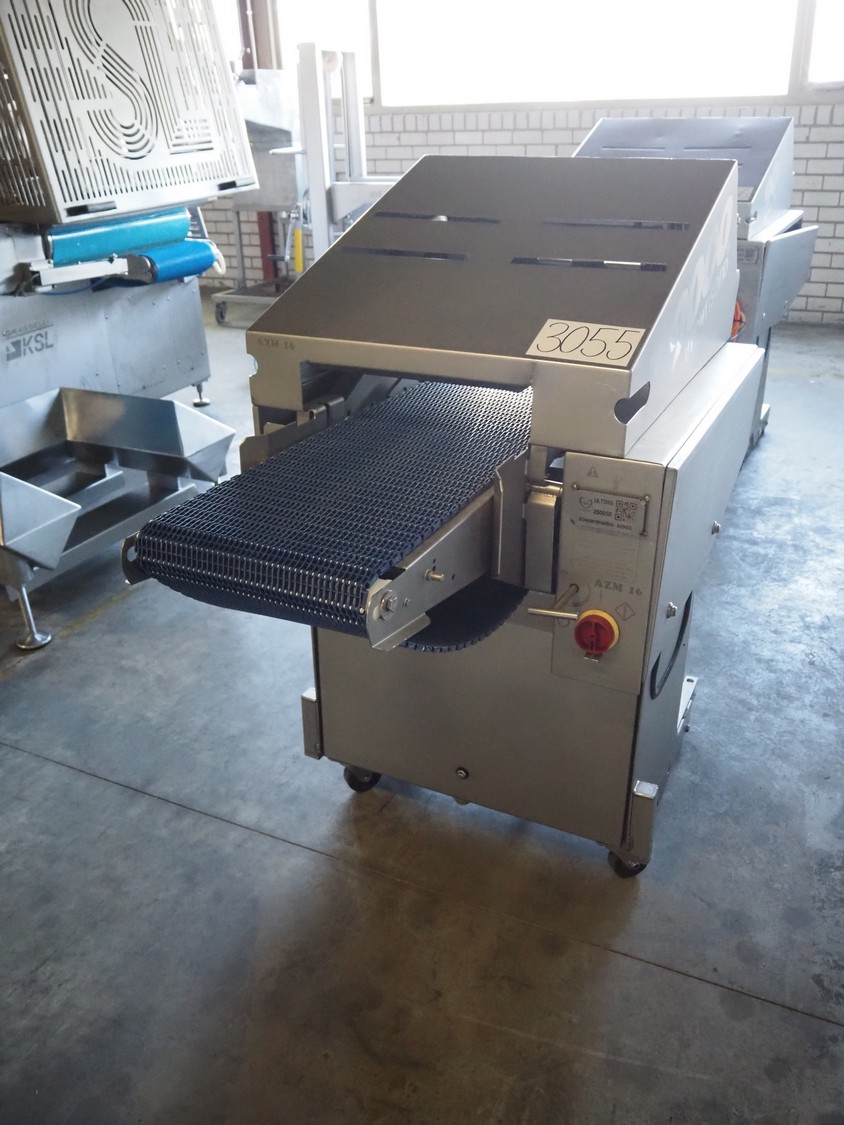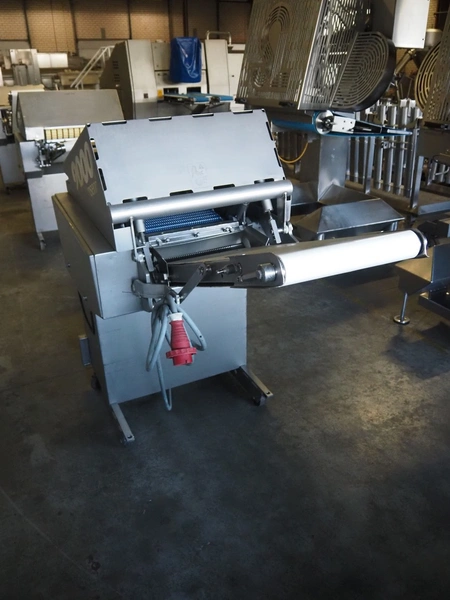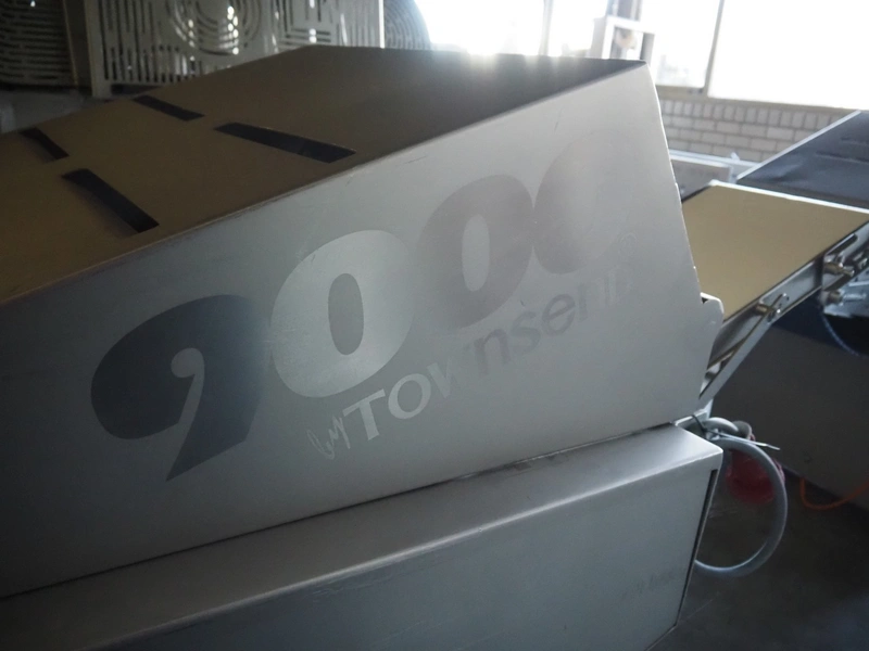 Townsend mobile skinning and derinding machine, model: 9000, belt width: 350 mm, working width: 360 mm, total dimensions: 2100 mm x 730 mm x 1350 mm. Incomplete.