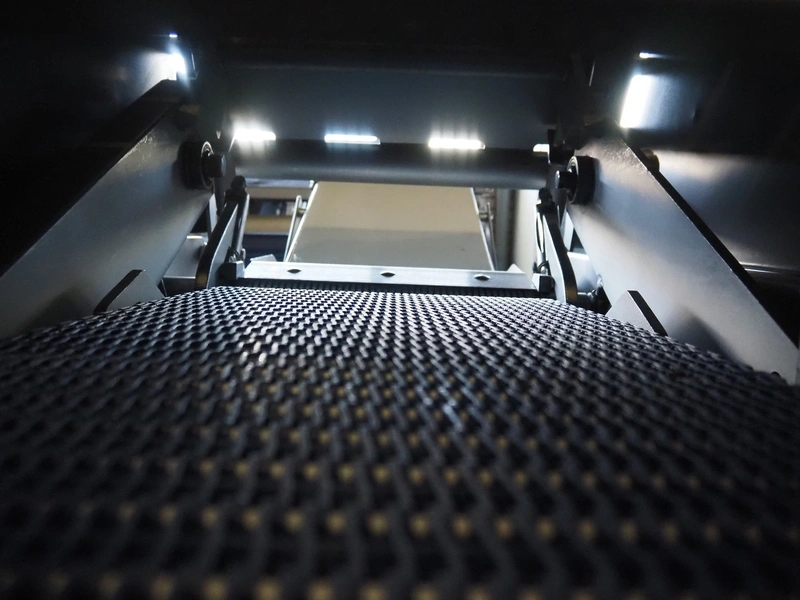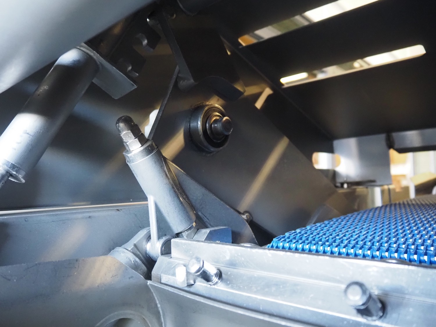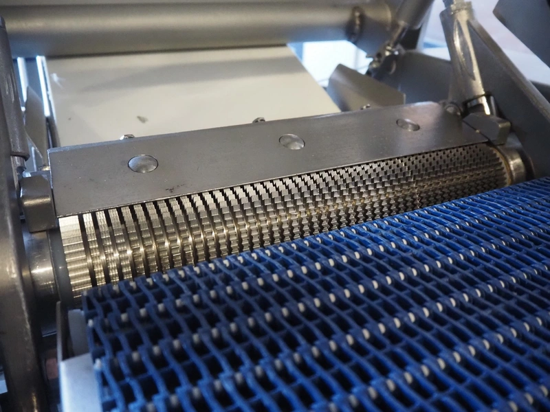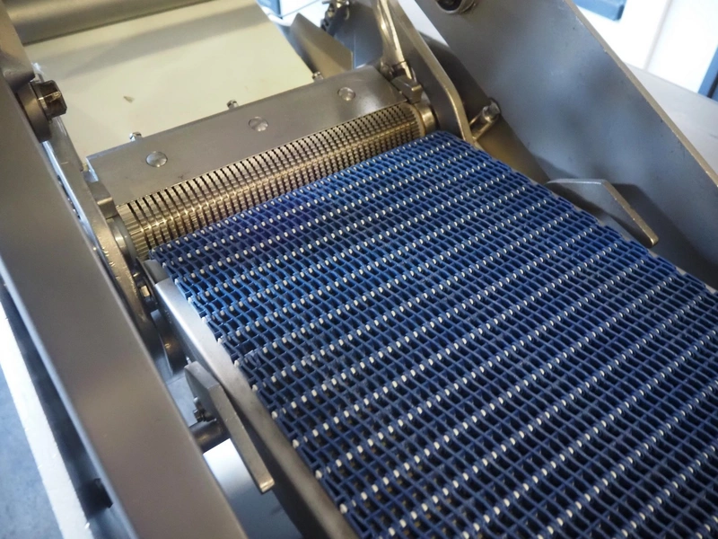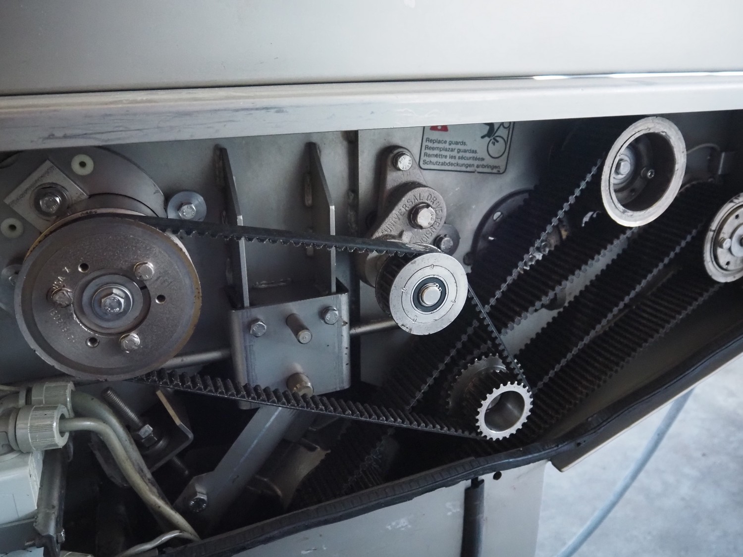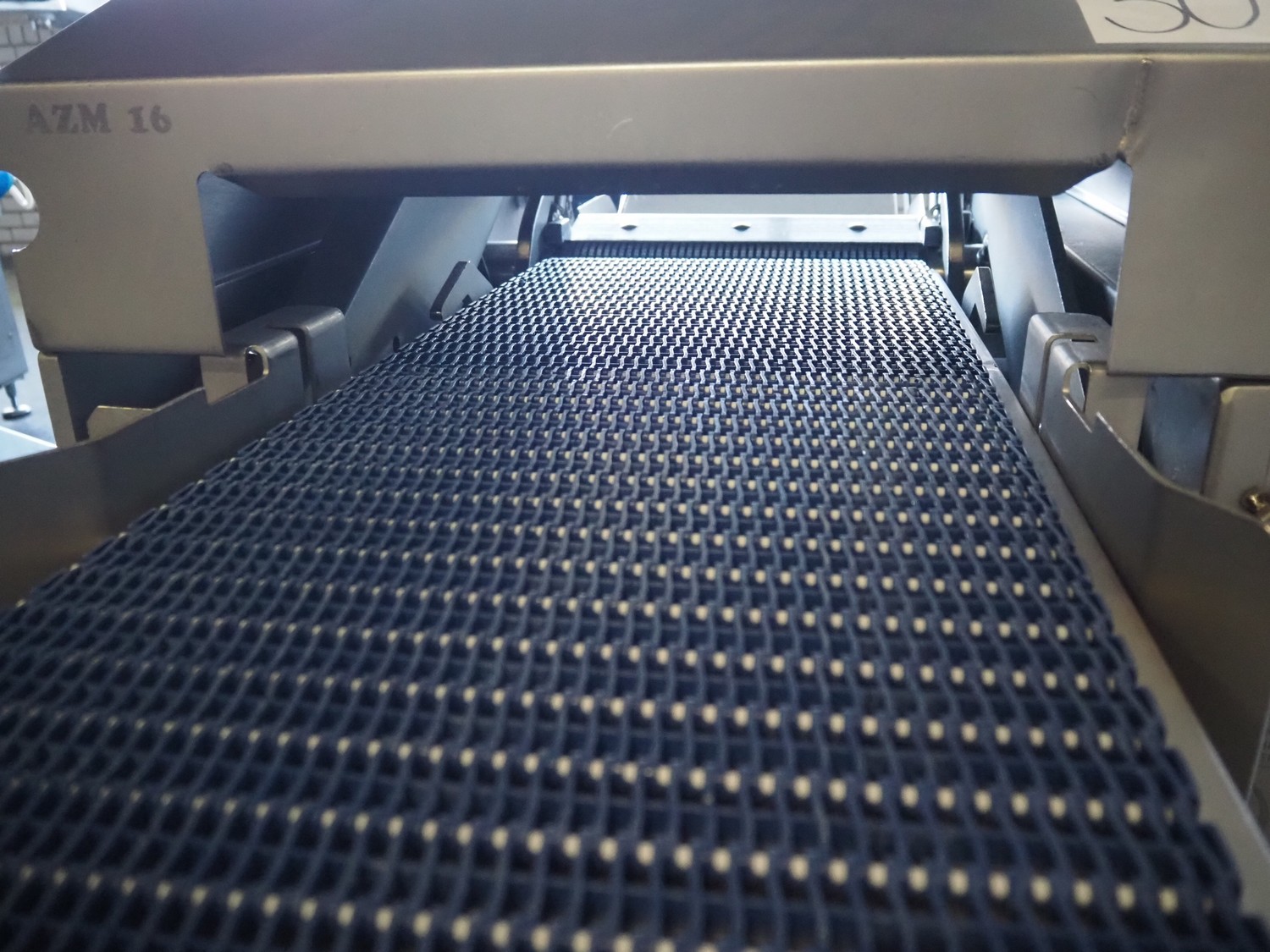 Townsend mobile skinning and derinding machine, model: 9000, belt width: 350 mm, working width: 360 mm, total dimensions: 2100 mm x 730 mm x 1350 mm. Incomplete.