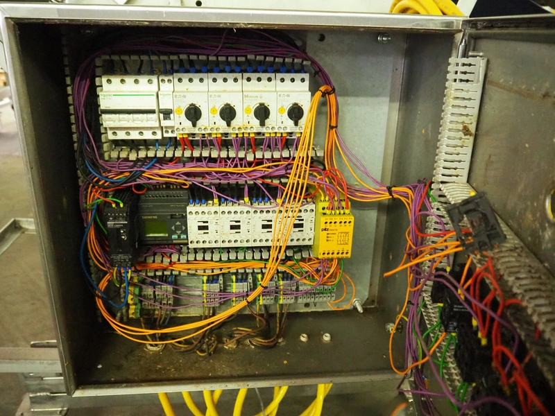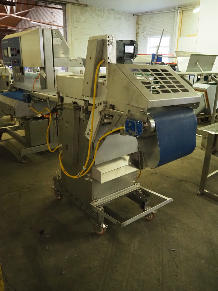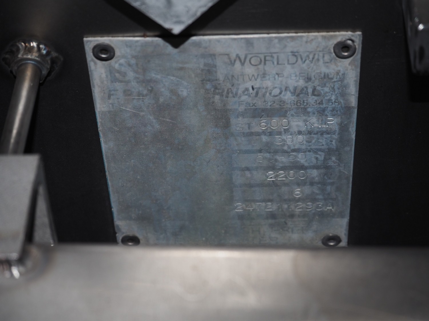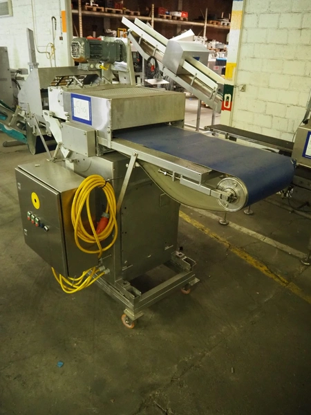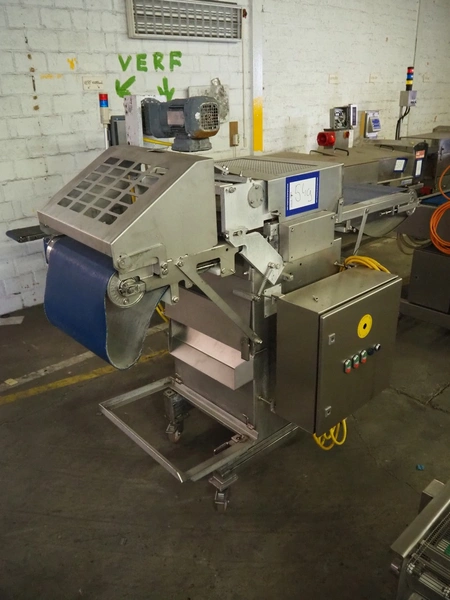Steen mobile skinning machine, type: ST600 KIP, serial number: 247211293A, 380 V, 50 Hz, plastic belt, belt width: 430 mm, total dimensions: 1850 mm x 900 mm x 1650 mm. Incomplete.