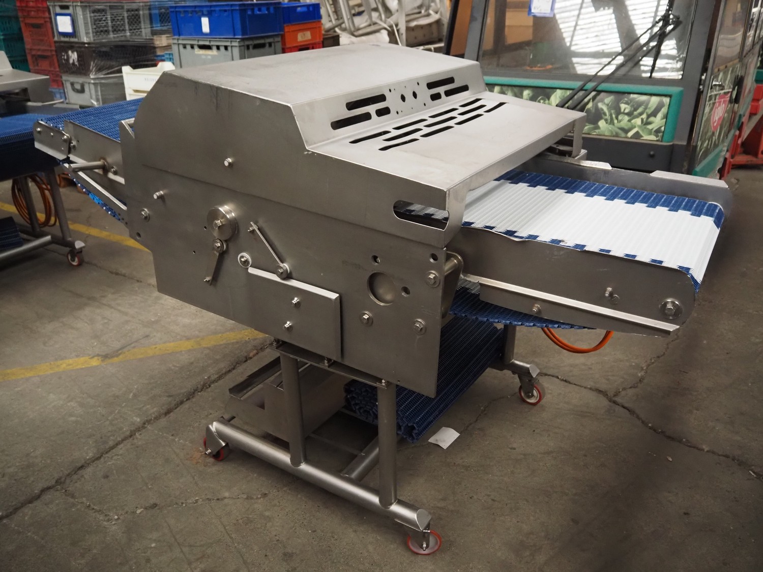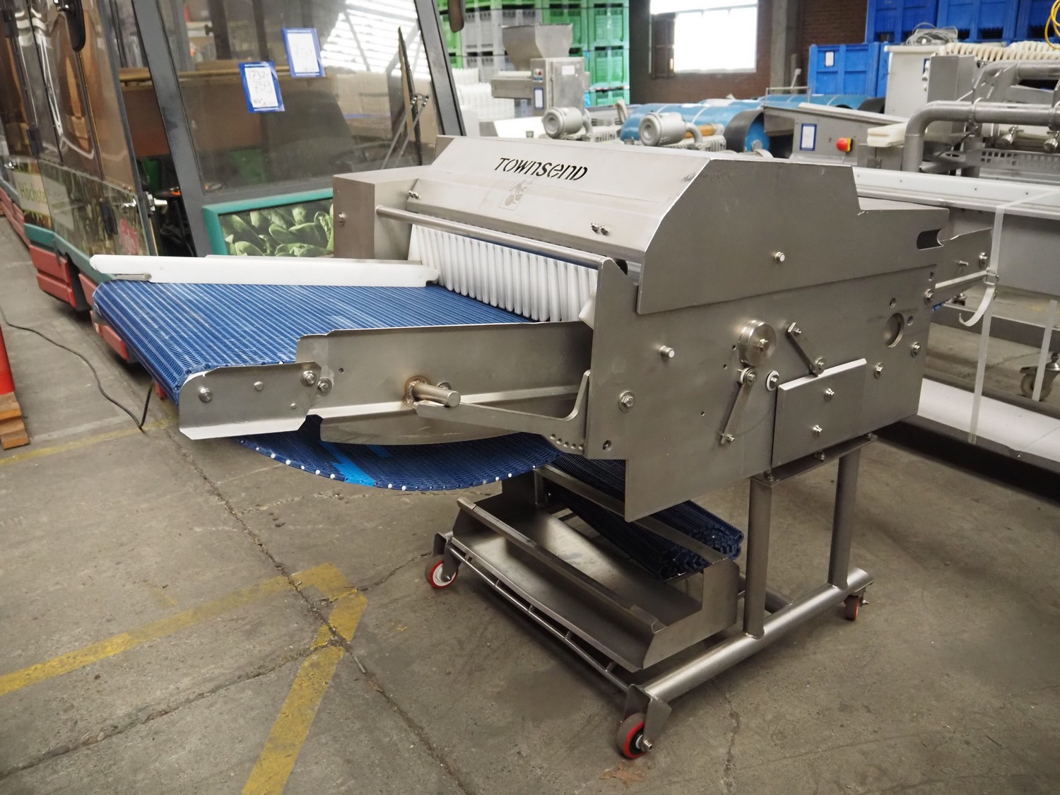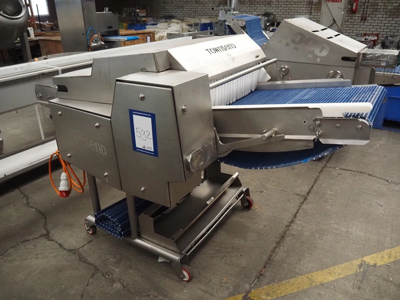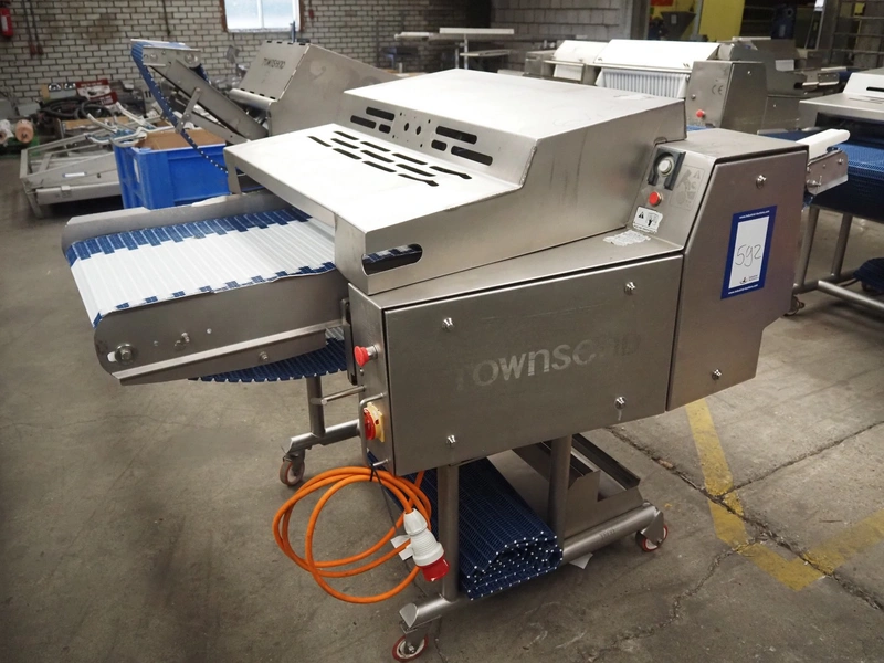 Townsend mobile skinning and derinding machine, type: SK 15-340, serial number: 11910, year of construction: 2011, 400 V, 3 Ph, 50 Hz, 3.55 A, 1.5 kW, working width: 665 mm, plastic mesh belt, belt width: 655 mm, total dimensions: 2200 mm x 1150 mm x 1290 mm. Incomplete, technical condition unknown. Incomplete.