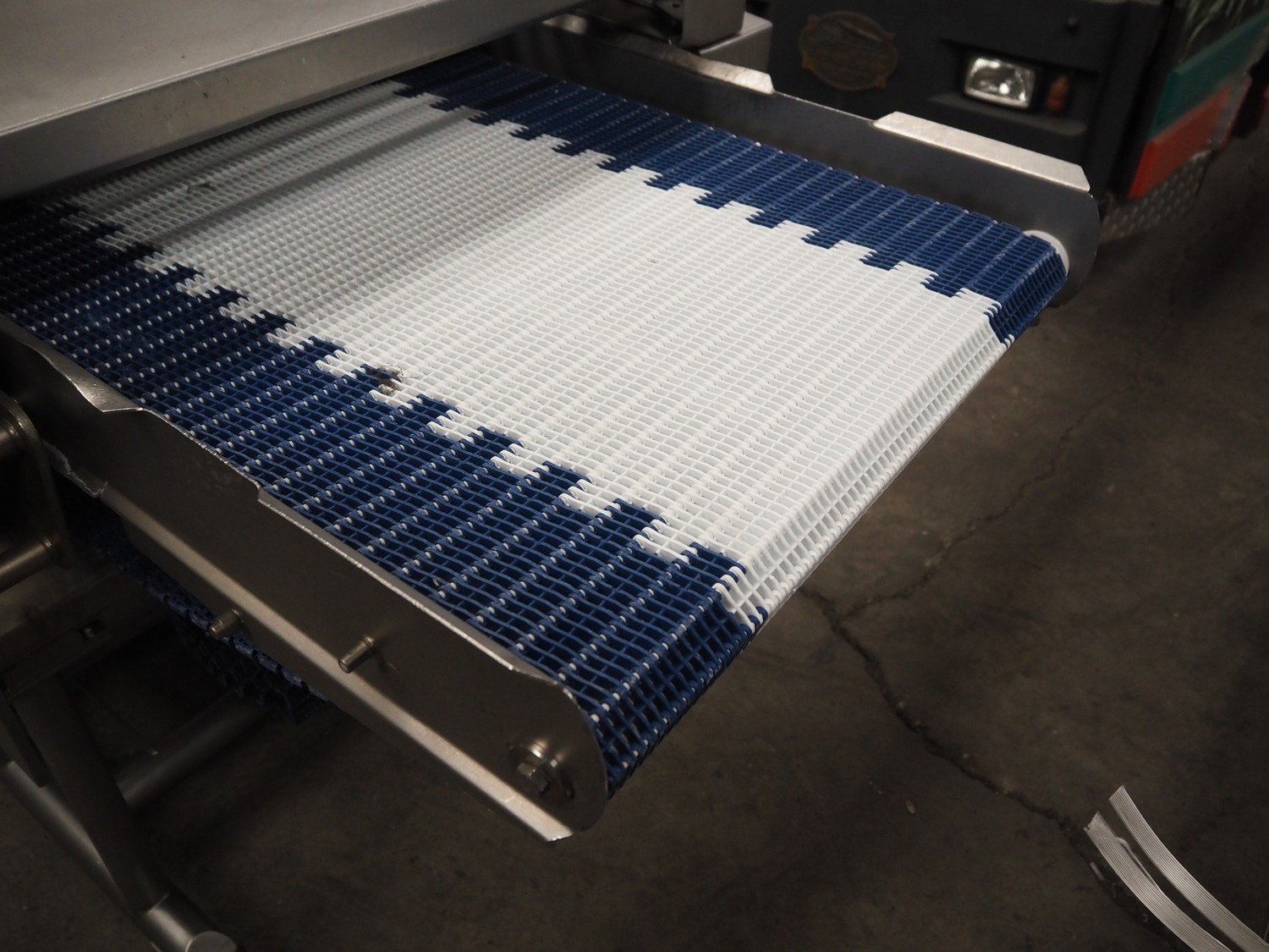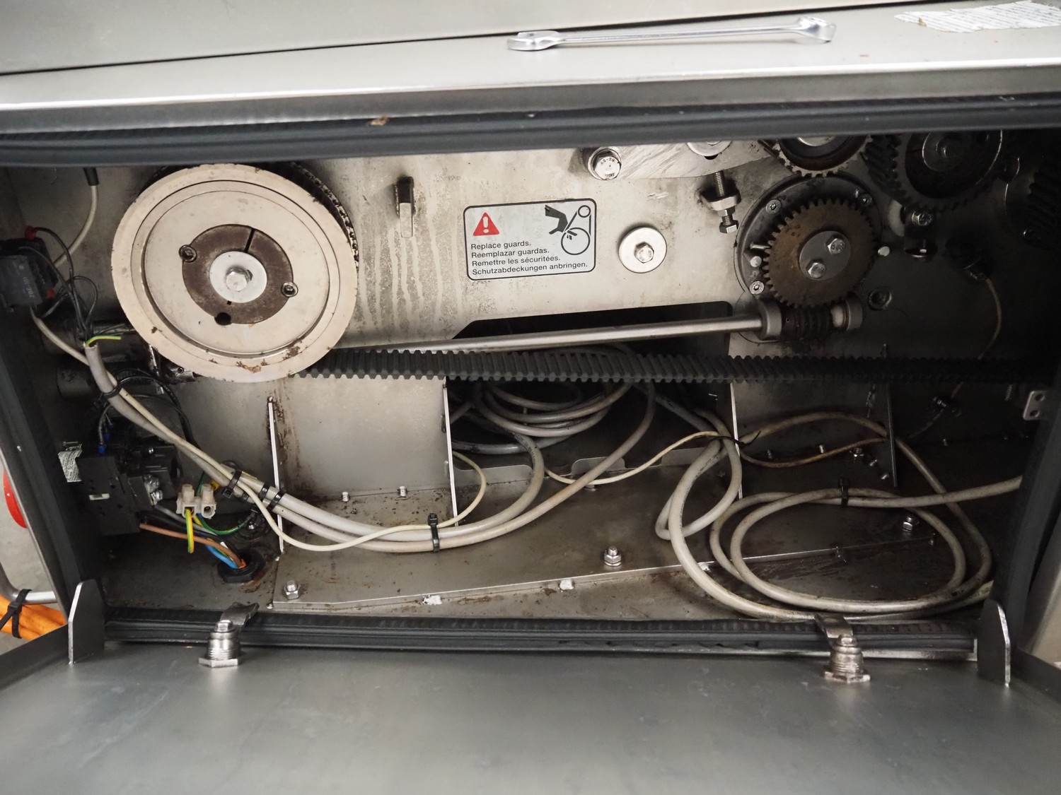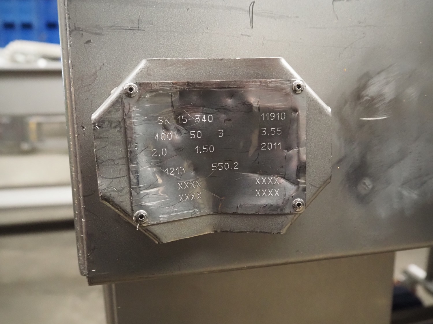 Townsend mobile skinning and derinding machine, type: SK 15-340, serial number: 11910, year of construction: 2011, 400 V, 3 Ph, 50 Hz, 3.55 A, 1.5 kW, working width: 665 mm, plastic mesh belt, belt width: 655 mm, total dimensions: 2200 mm x 1150 mm x 1290 mm. Incomplete, technical condition unknown. Incomplete.