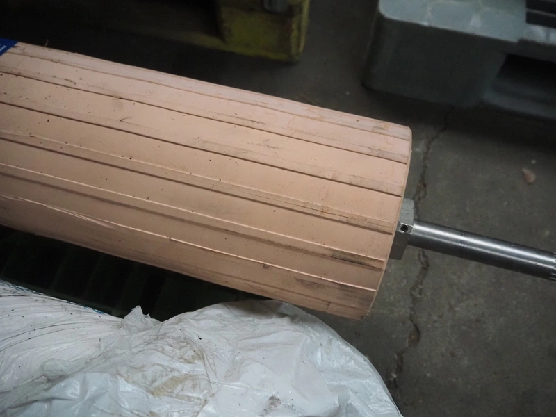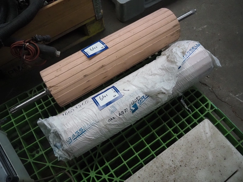 2 Grasselli S.p.A. rolls for skinning and derinding machine, dimensions: (2x) Ø 180 mm x 650 mm.