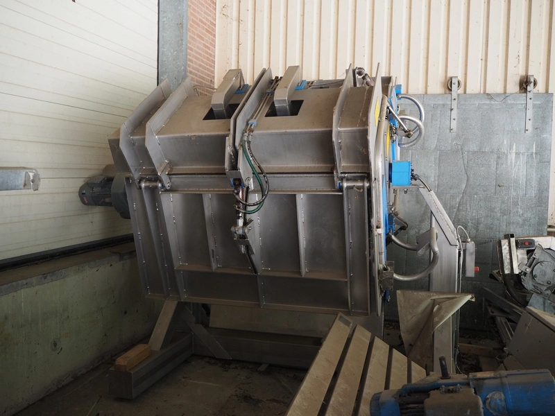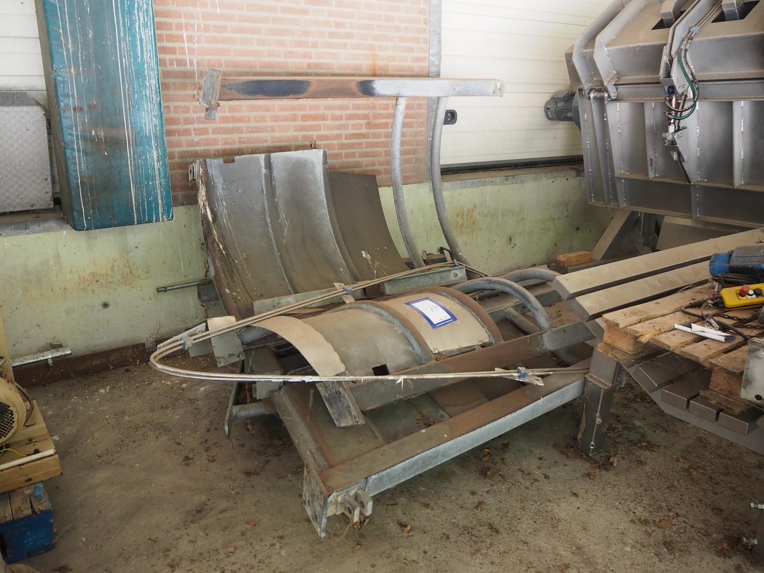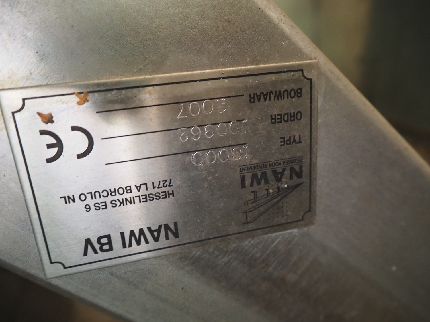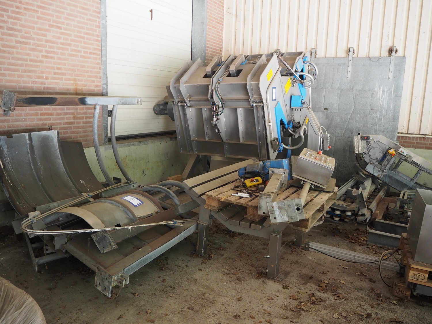 Nawi B.V. double s/s rotating ritual slaughtering box for calves, type: 18000, year of construction: 2007, dimensions slaughtering box: 2600 mm x 3200 mm x 3000 mm, Nawi hydraulic unit, dimensions: 700 mm x 650 mm x 1000 mm, control panel, dimensions: 380 mm x 220 mm x 600 mm, dimensions switch cabinet: 770 mm x 300 mm x 770 mm, including various tube rail elevators and hanging table.