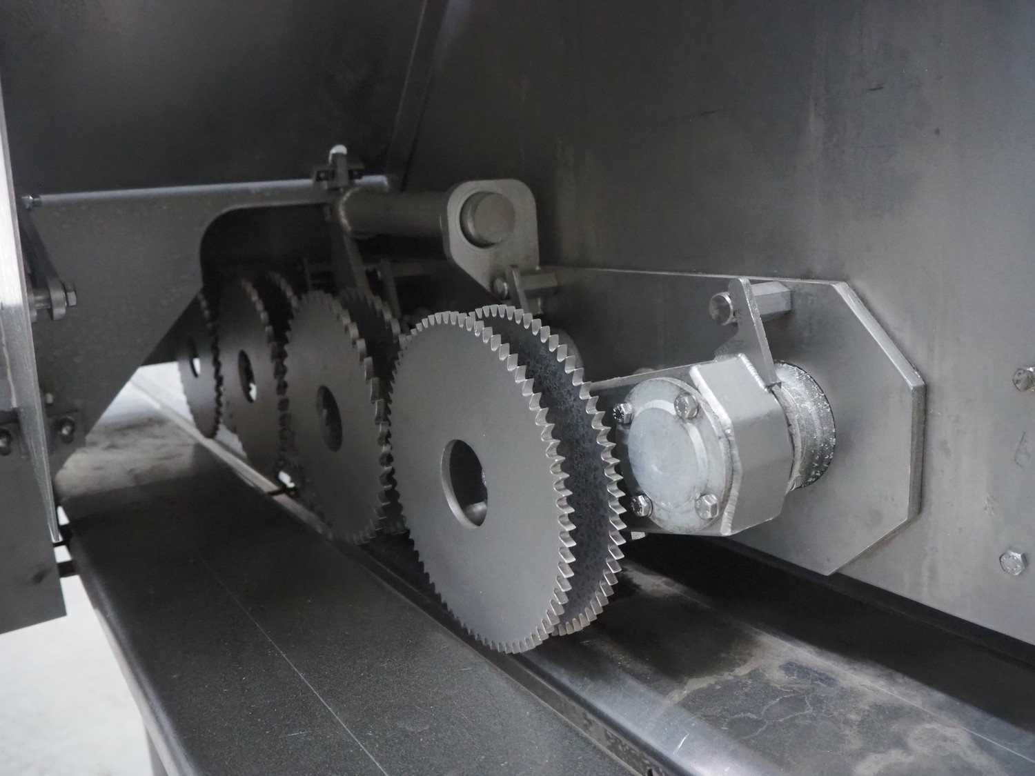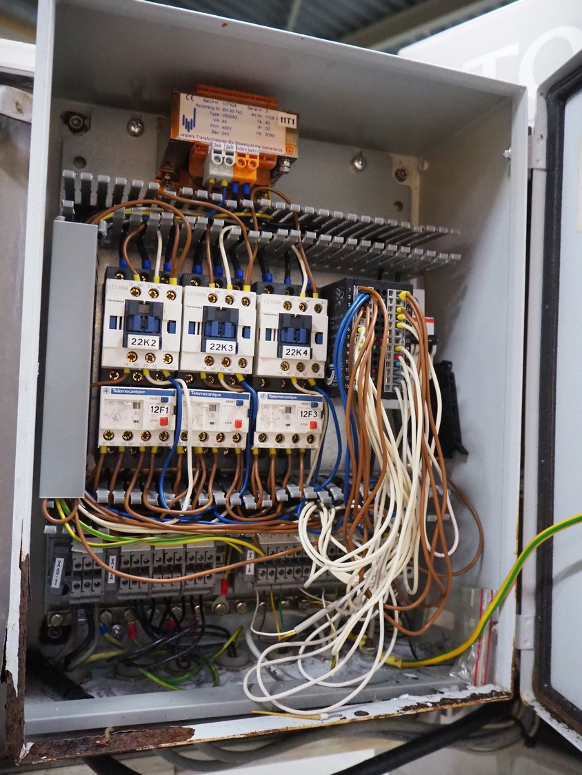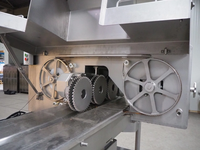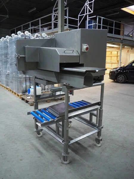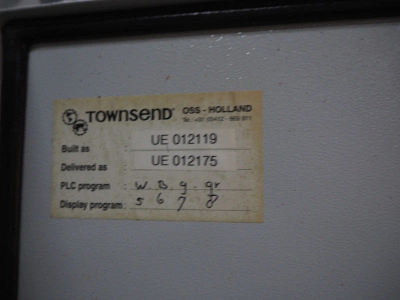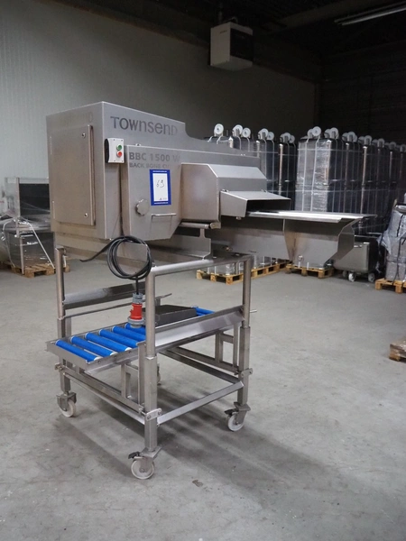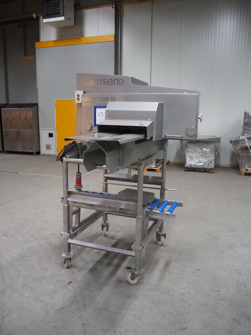 Townsend mobile backbone cutter, model: BBC 1500, serial number: 103173E196, year of construction: 2005, 400 V, 3 Ph, 50 Hz, 16 kW, weight: 250 kg, clearance: 400 mm x 60 mm, total dimensions: 2200 mm x 1200 mm x 2000 mm. Missing belt.