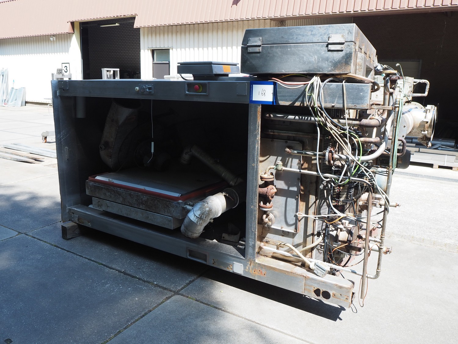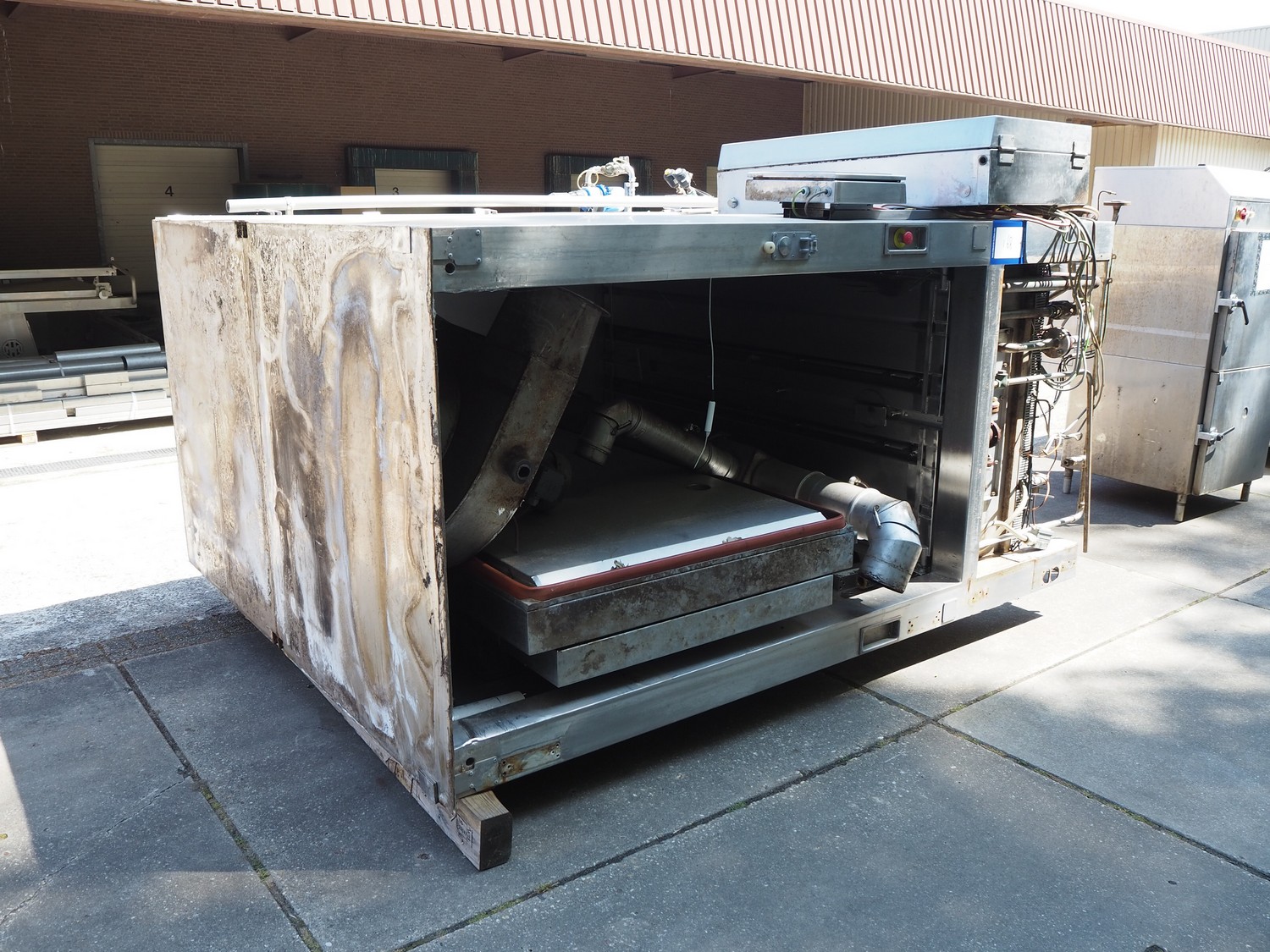 Maurer-Atmos GmbH smoke chamber, inside dimensions: 2050 mm x 1050 mm x 2100 mm, total dimensions: 2700 mm x 1900 mm x 3000 mm.