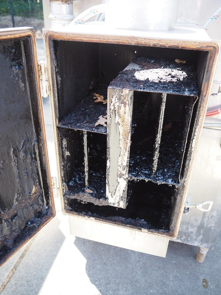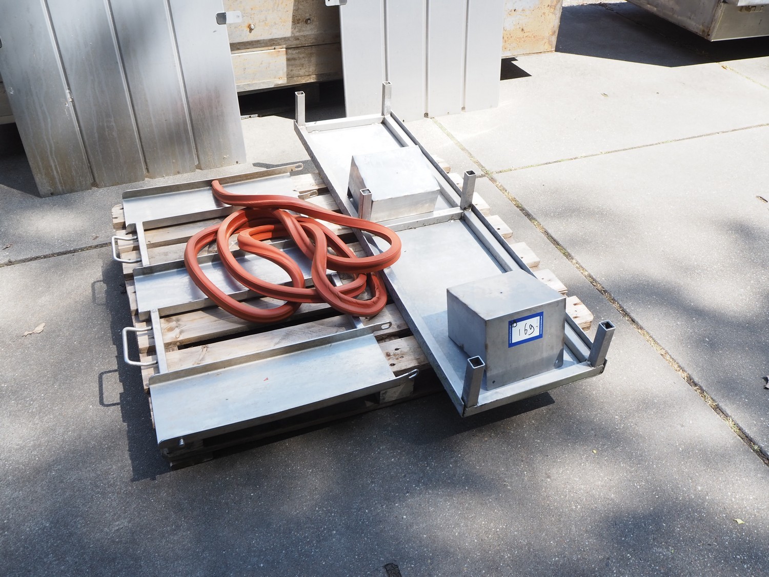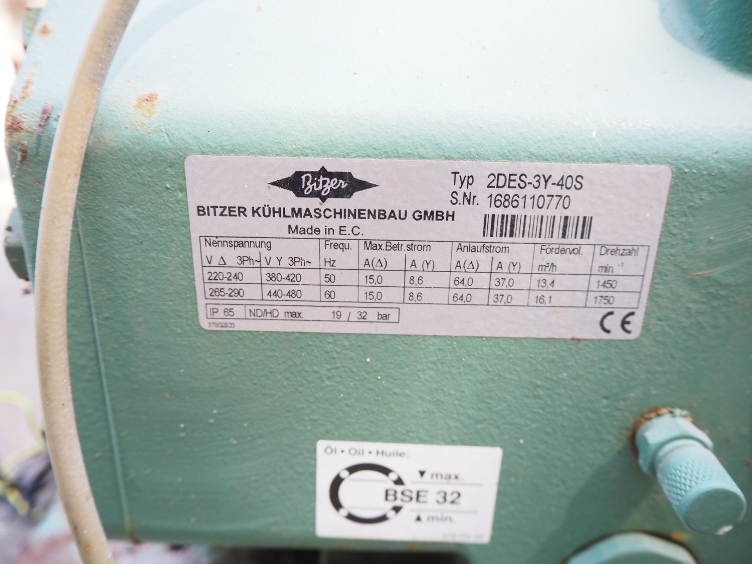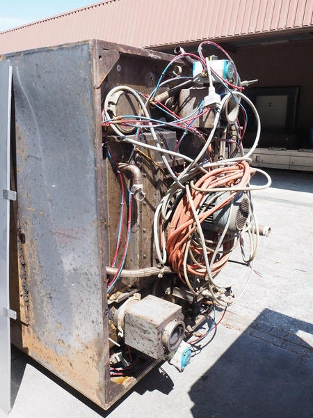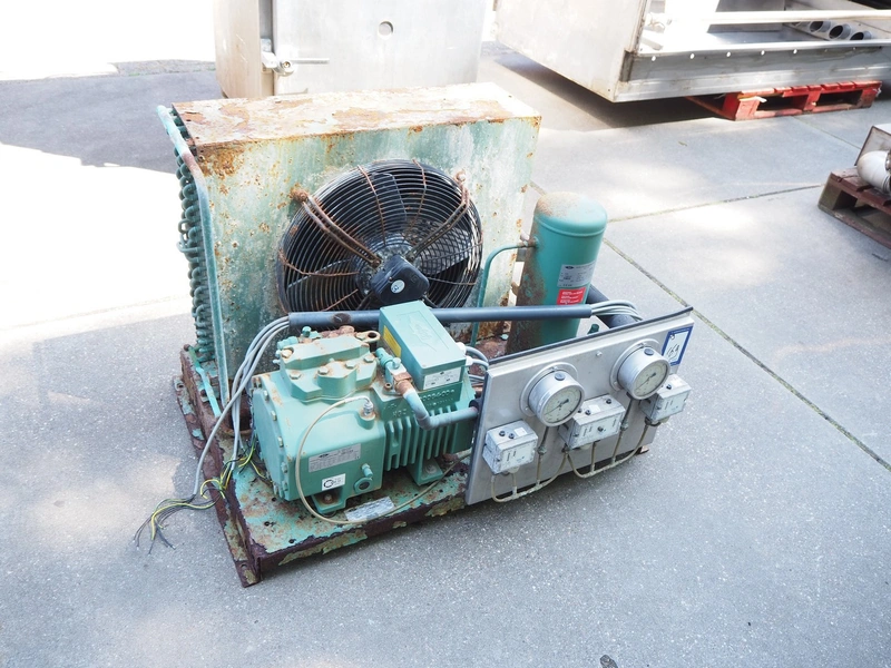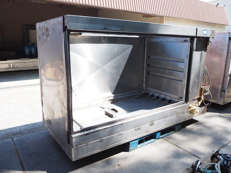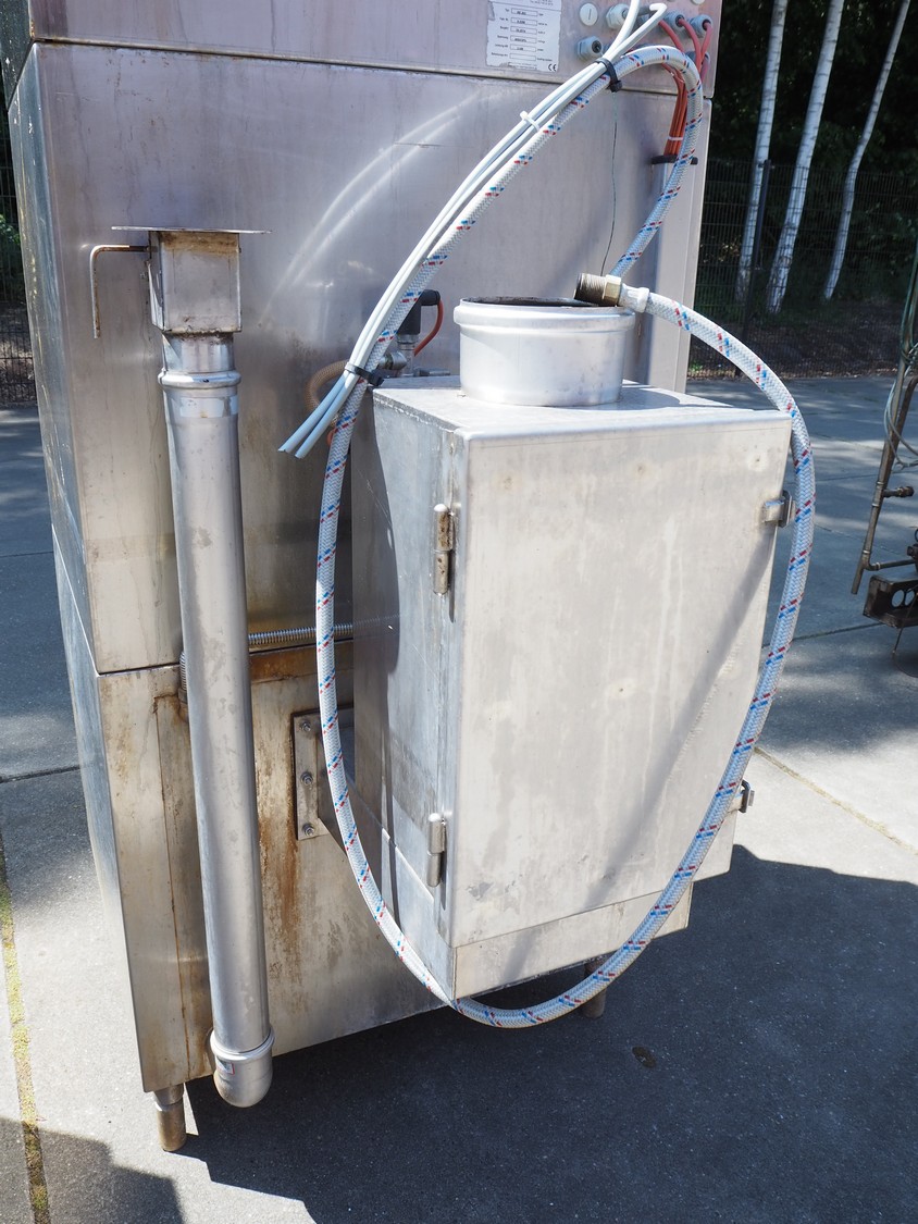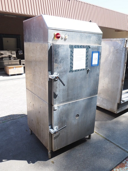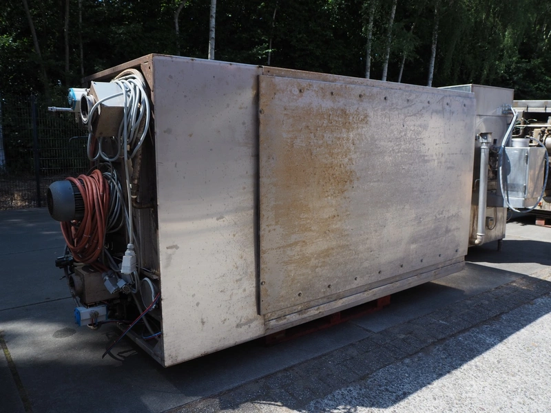 Kerres Anlagensysteme GmbH smoke chamber installation, consisting of: 4 sections of Kerres Anlagensysteme GmbH smoke chambers, inside dimensions: (4x) 1100 mm x 1100 mm x 2100 mm, total dimensions smoke chambers: (4x) 1600 mm x 1200 mm x 3000 mm, Kerres Anlagensysteme GmbH smoke generator for wood chips, type: RE 203, fabrication number: 8.2296, year of construction: 02.2014, 400 V, 3 Ph, 2 kW, dimensions: 850 mm x 1300 mm x 1830 mm, Bitzer Kühlmaschinenbau GmbH cooling compressor, type: LH64/FS76, serial number: 1685003971, dimensions: 900 mm x 750 mm x 700 mm, 3 pallets with parts, dimensions: (3x) 1200 mm x 800 mm x 500 mm.