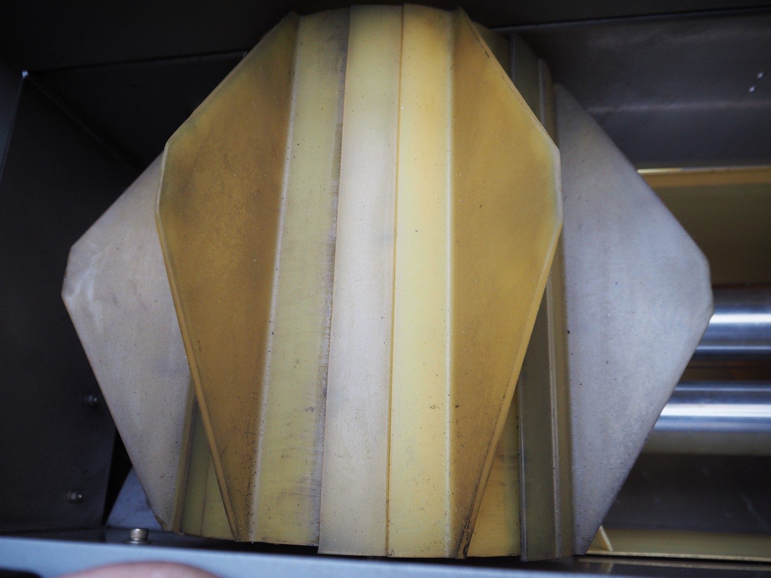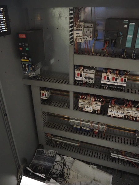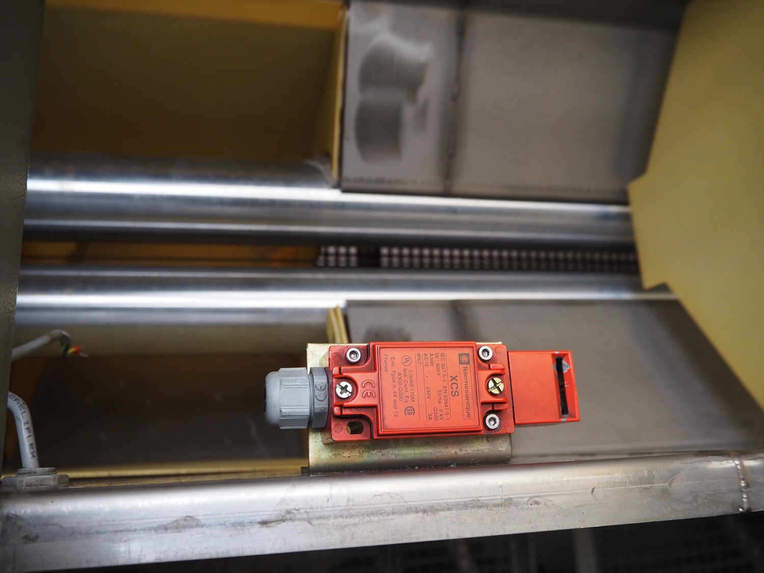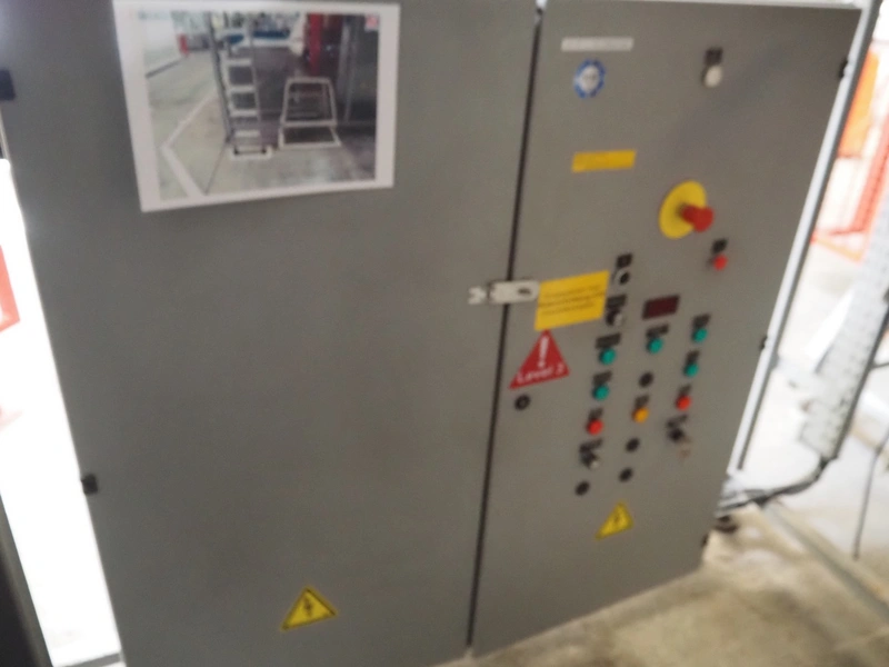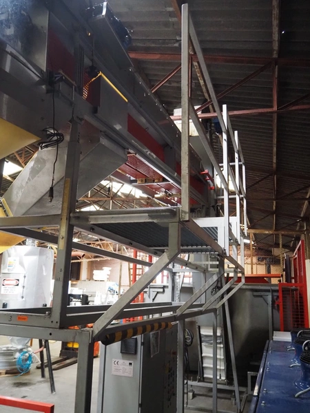 Sidel sorting conveyor, type: Distributeur De Preformes A3 Chassis + Coffret, machine number: DBGM 5279, year of construction: 2001, 400 V, 50/60 Hz, 5 A, 1.25 kW, 200 kg, infeed height: 3800 mm, outfeed height: 2800 mm, total dimensions: 4350 mm x 1800 mm x 3800 mm. Including 2 steel protection frames.