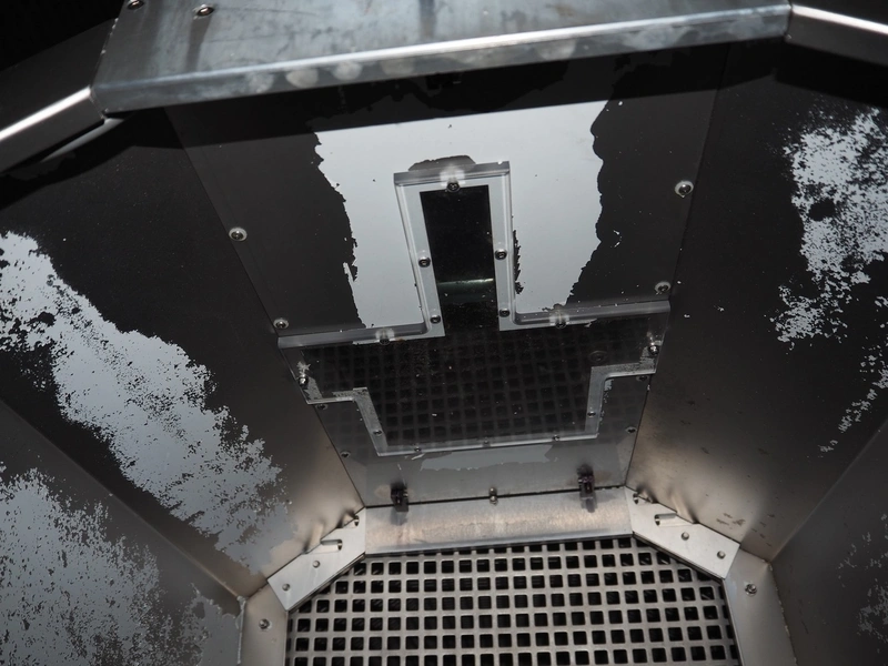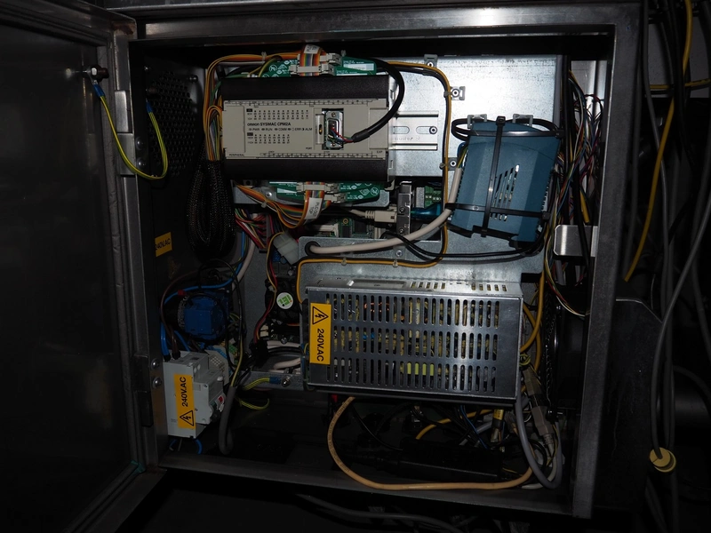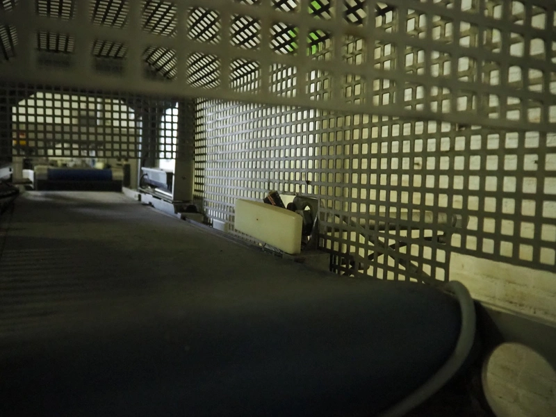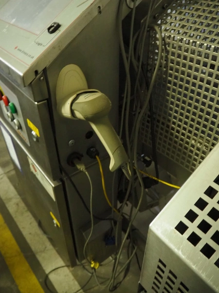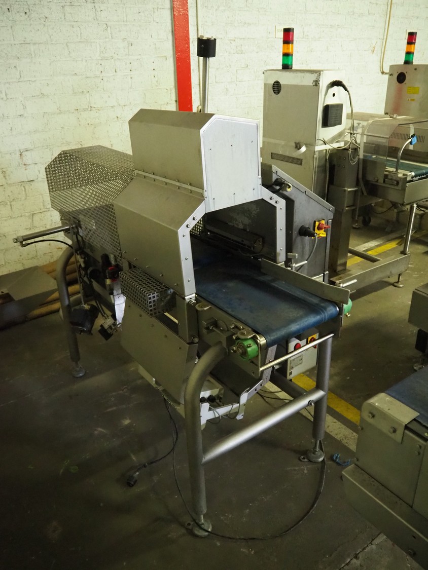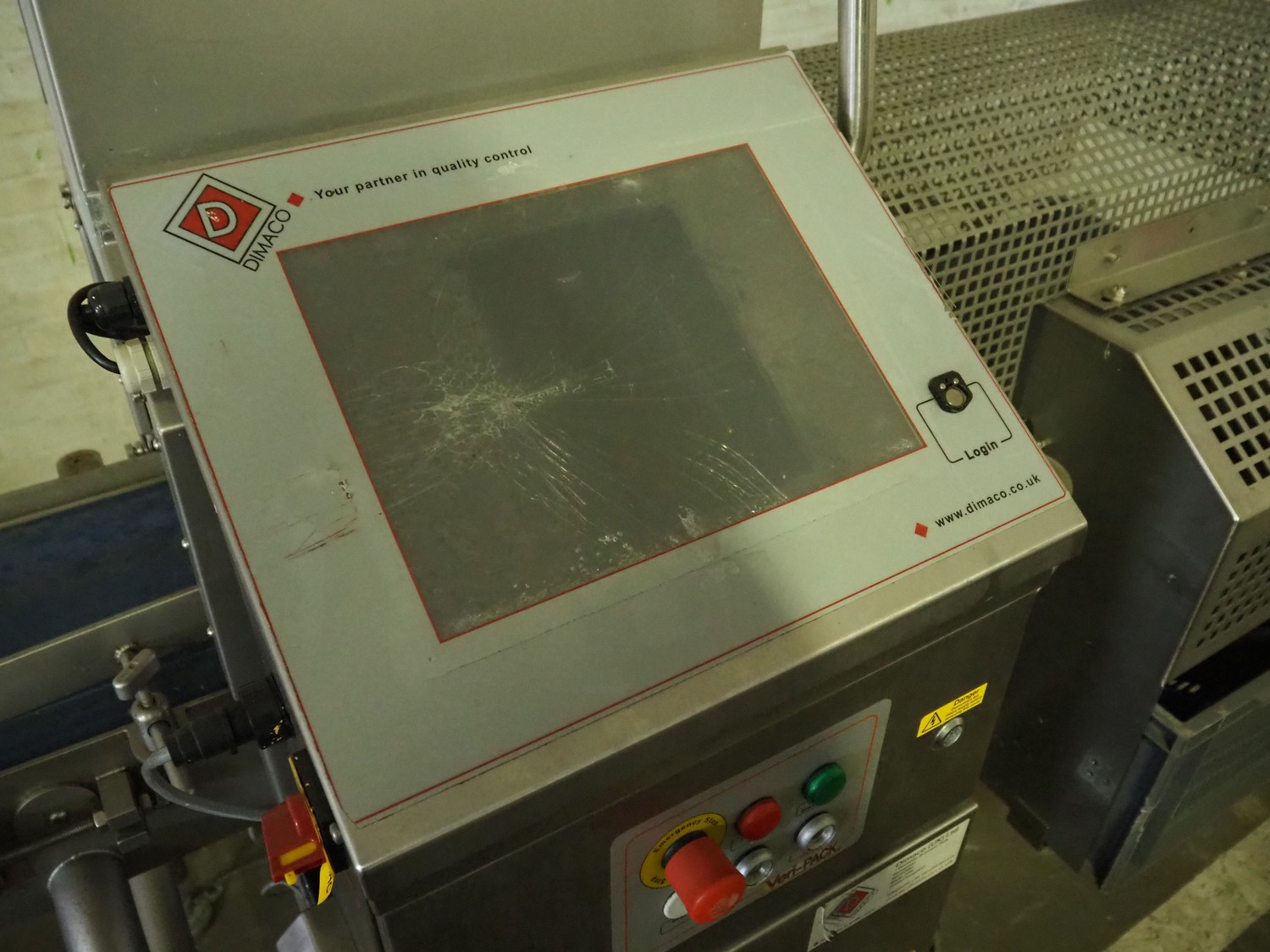 Dimaco optical sorting machine with rejector, plastic belt, belt width: 300 mm, clearance: 340 mm x 280 mm, total dimensions: 1650 mm x 750 mm x 1660 mm. Display broken.