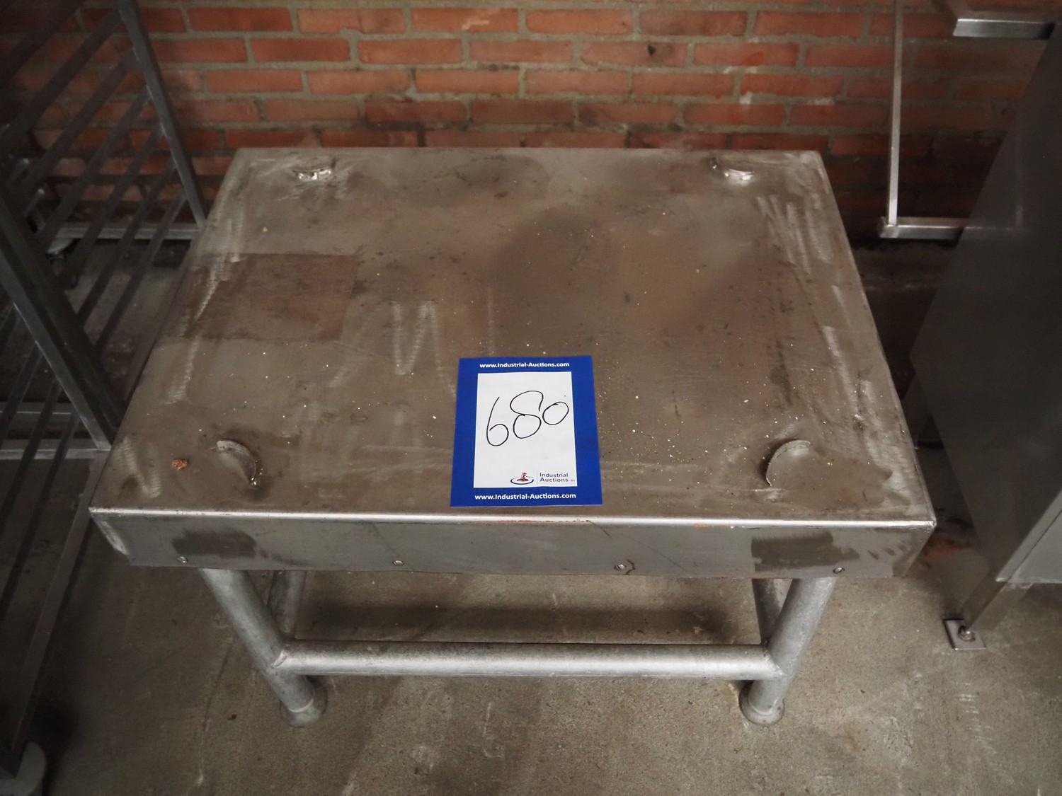 S/s table, dimensions: 820 mm x 610 mm x 600 mm.