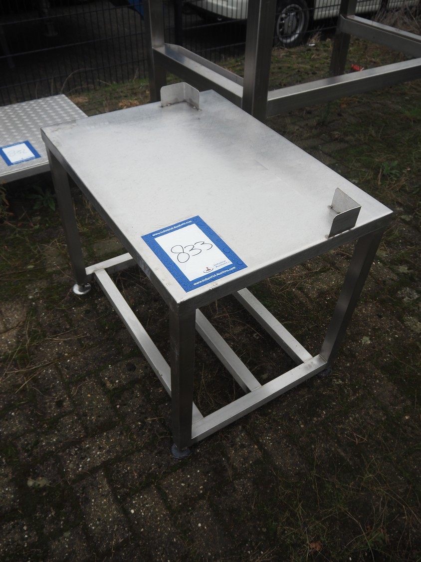S/s table, dimensions: 810 mm x 600 mm x 660 mm.