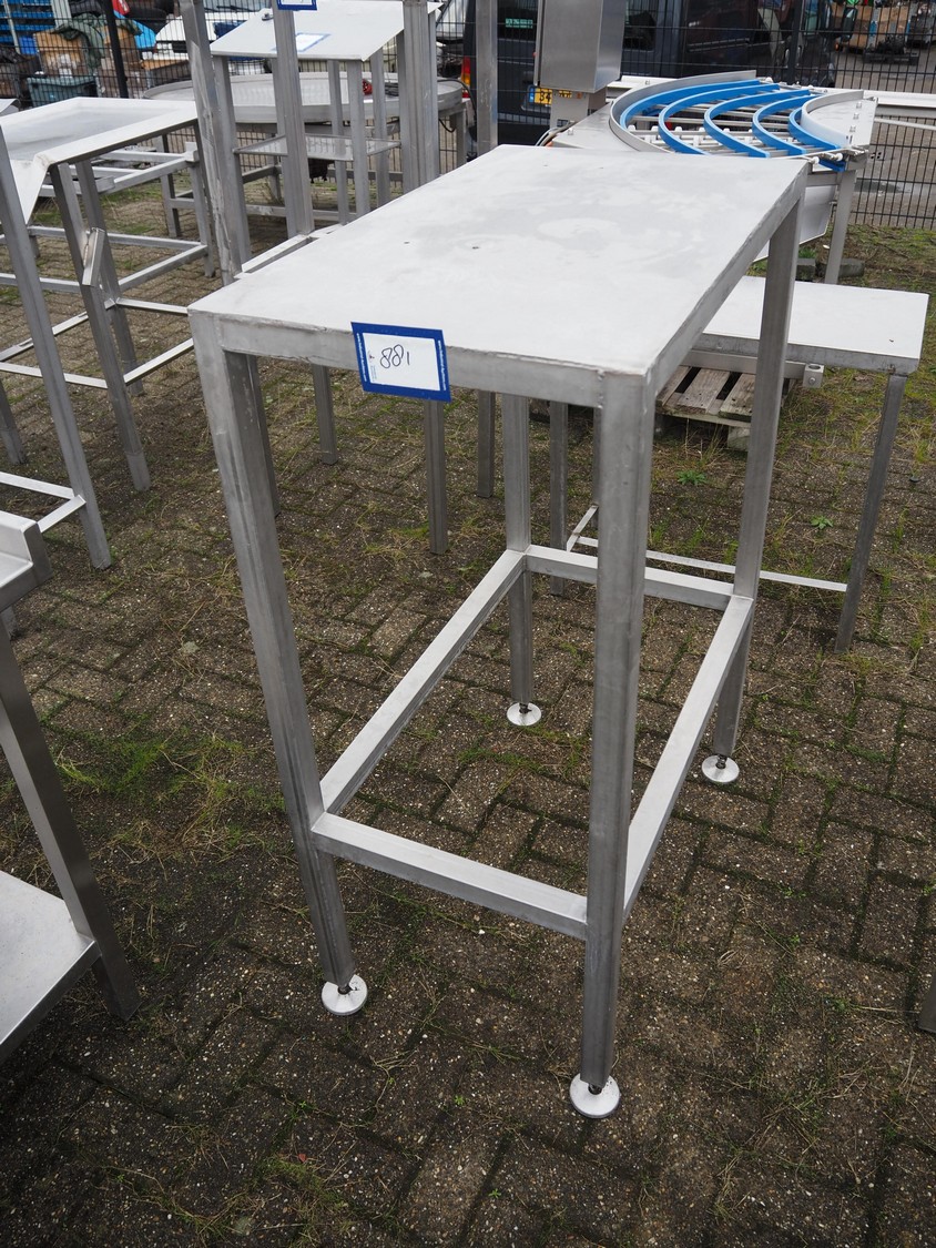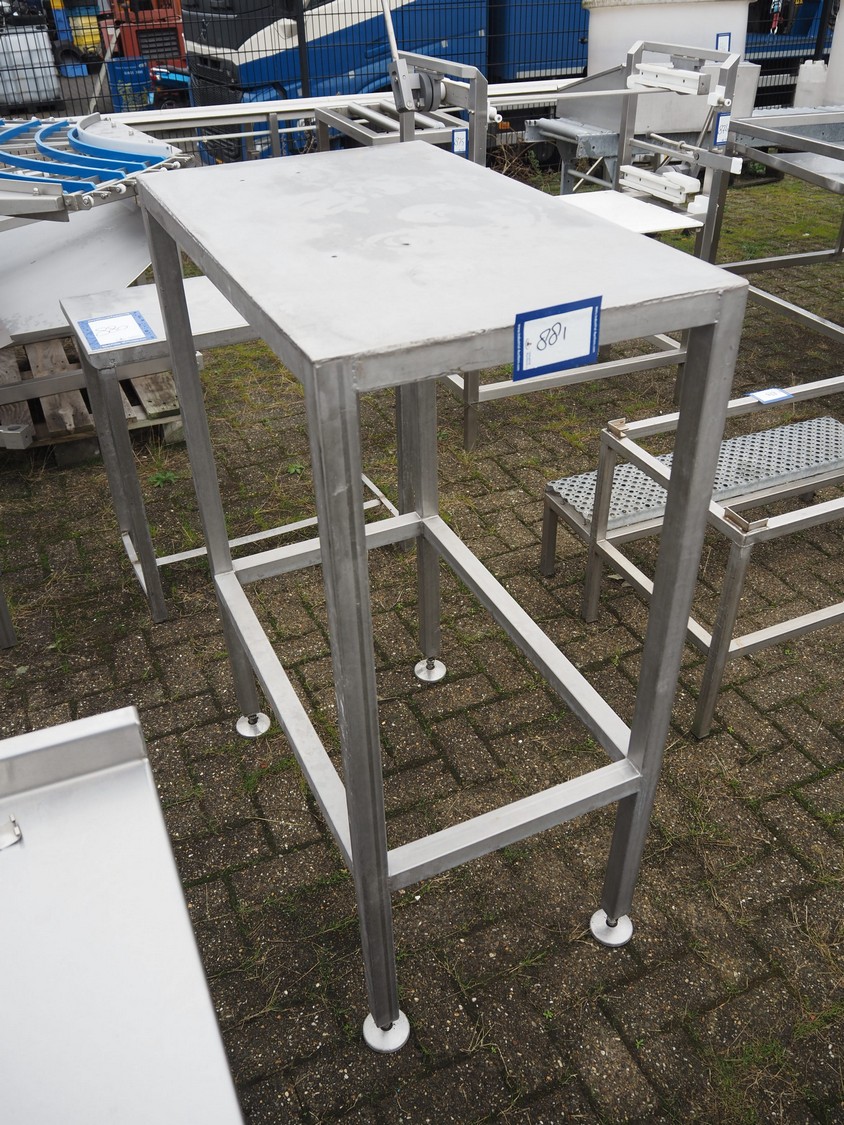 S/s table, dimensions: 840 mm x 500 mm x 1220 mm.