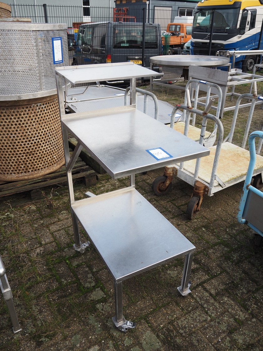 S/s mobile table with writing desk, dimensions: 540 mm x 650 mm x 1220 mm.