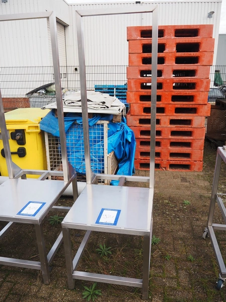 S/s table with frame, dimensions: 600 mm x 840 mm x 2000 mm.