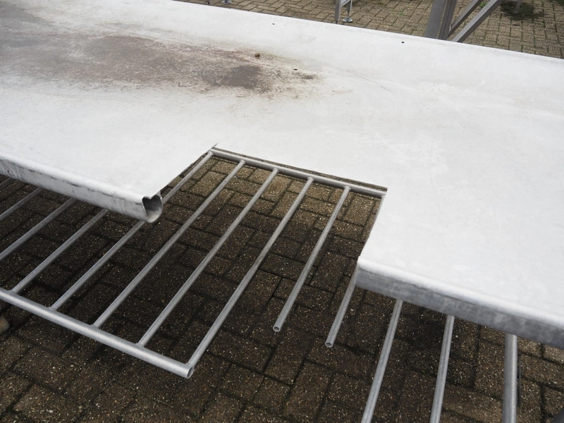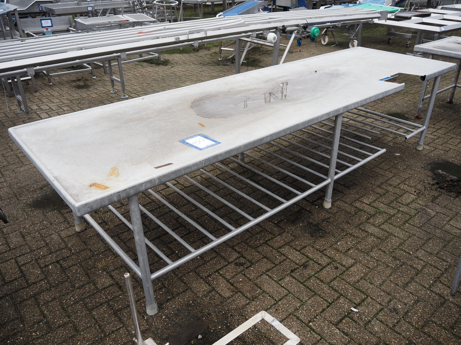 Aluminium table, dimensions: 3700 mm x 1100 mm x 850 mm.