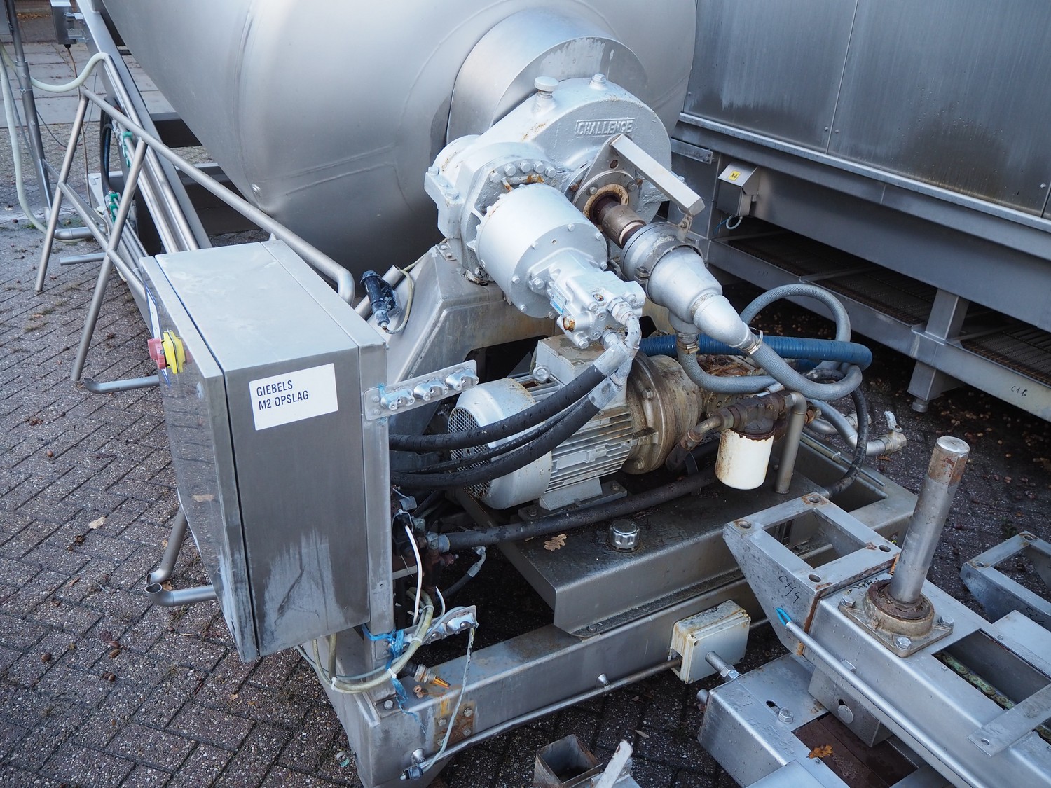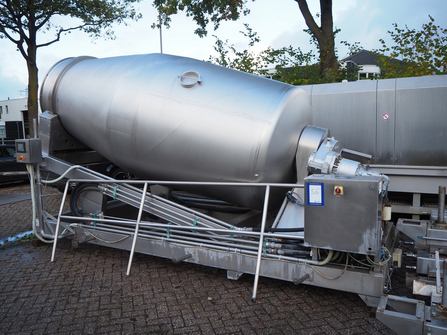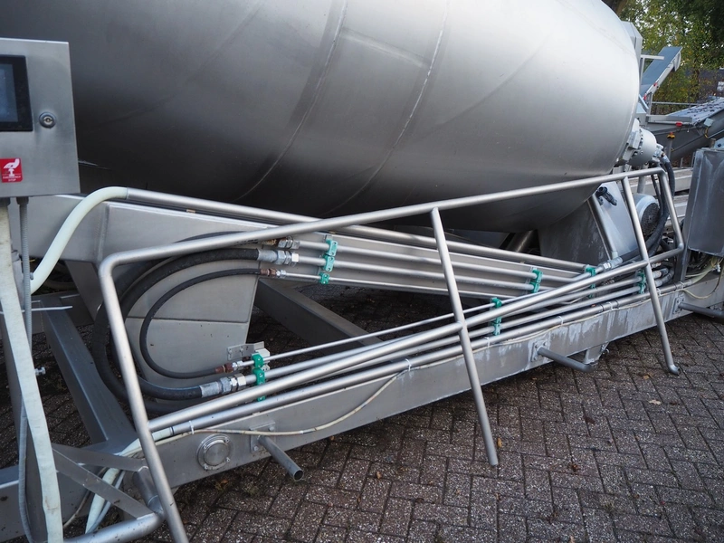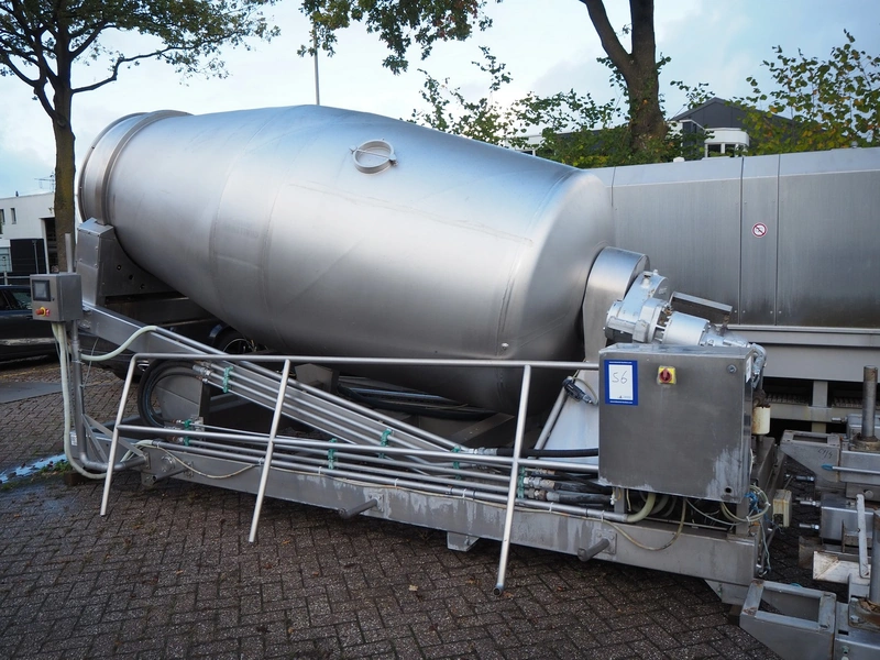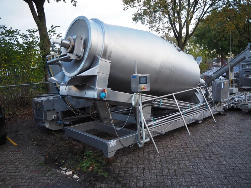 Challenge RMF vacuum tumbler, type: SCM-51-01, dimensions tub: 3800 mm x 1500 mm, total dimensions: 5000 mm x 2300 mm x 2900 mm.