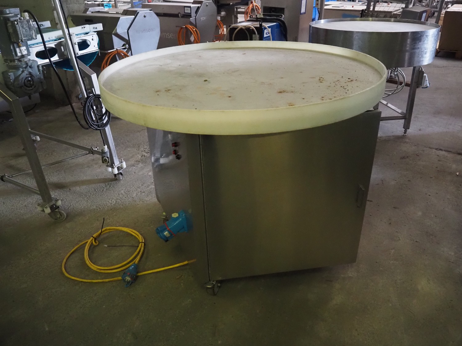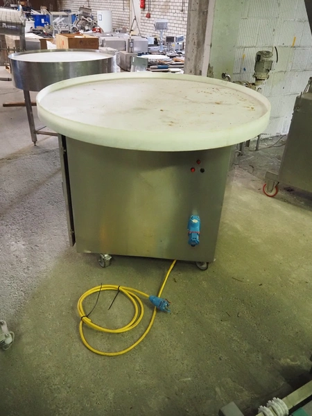 Mobile turning table with plastic top, diameter top: 1220 mm, total dimensions: ø 1220 mm x 950 mm.