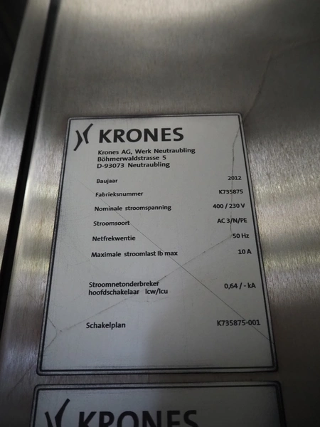Krones AG empty bottle inspection machine, type: Linatronic, number: K735875, year of construction: 2012, 400/230 V, 50 Hz, 10 A, dimensions: 4300 mm x 1300 mm x 2500 mm.