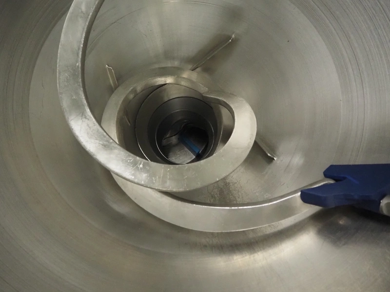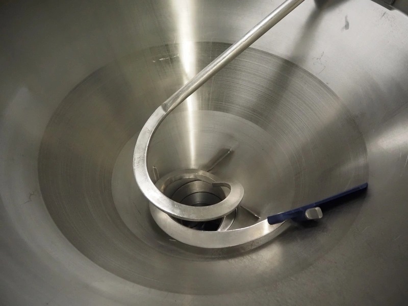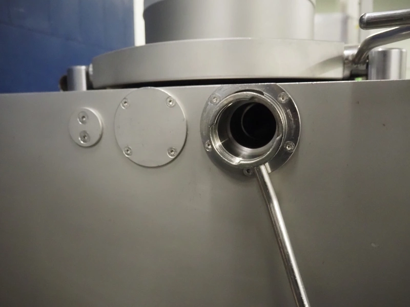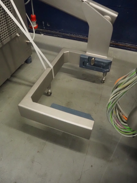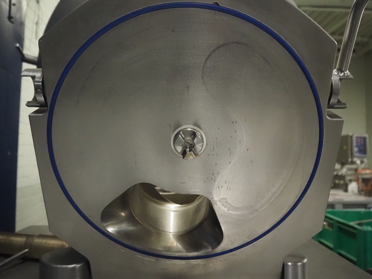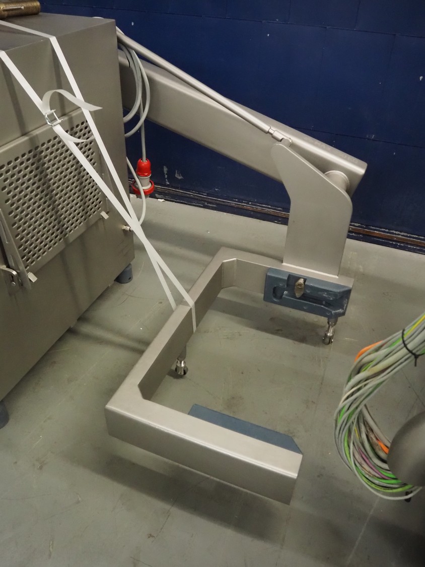 Risco S.P.A. vacuum filling machine with lifter for 200 litres meat bins, model: RS 605, serial number: S216011, year of construction: 2018, 400 V, 3 Ph, 50 Hz, 11.0 kW, weight: 995 kg, filling and portioning, with Busch vacuum pump, type: RA 0040 F 5Z3, dimensions: 2100 mm x 1300 mm x 2100 mm.