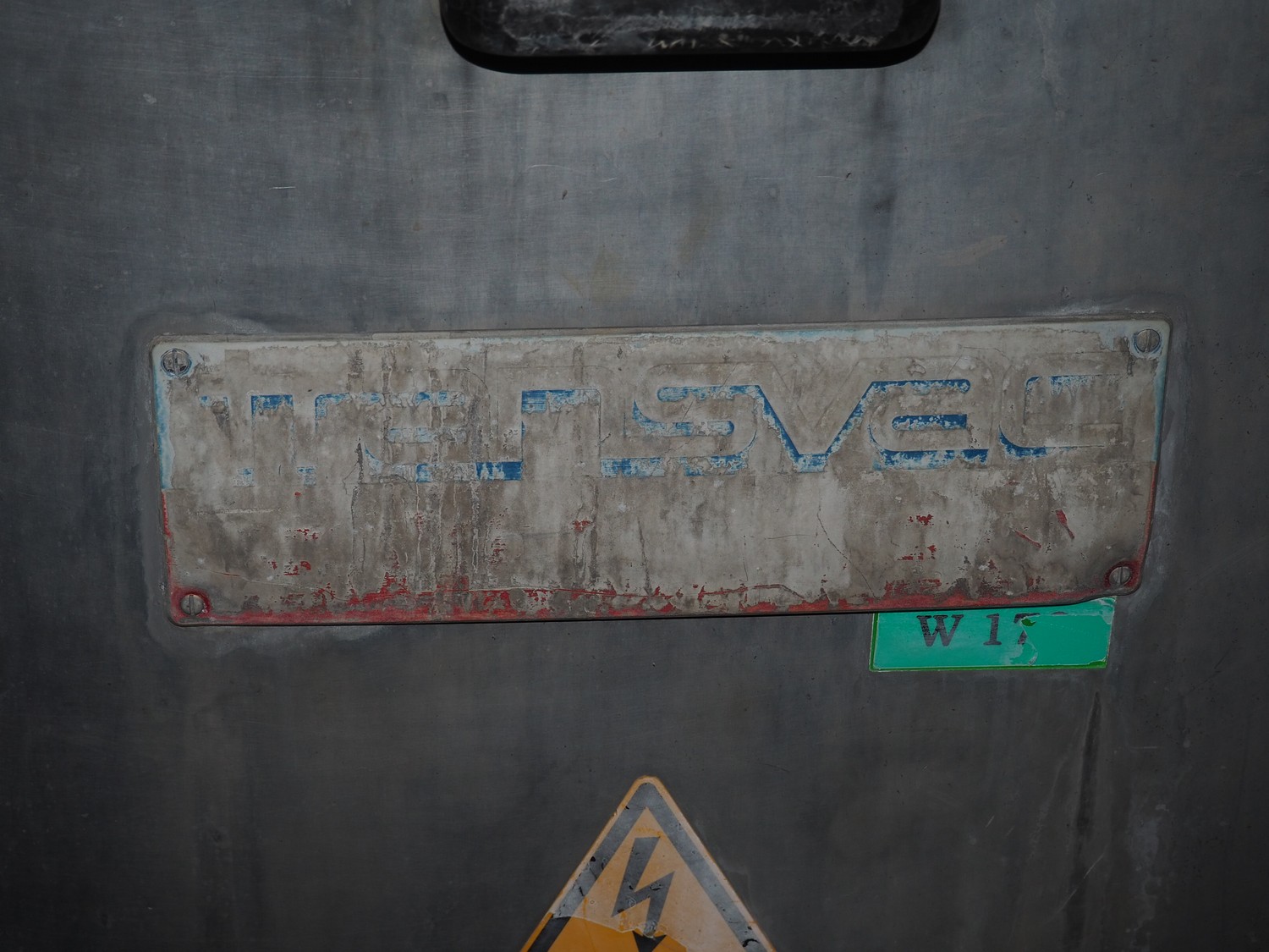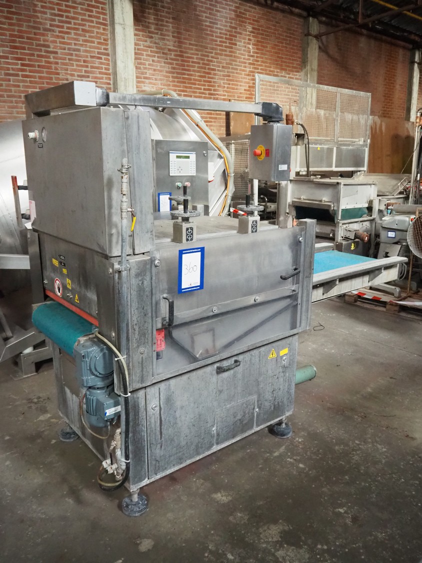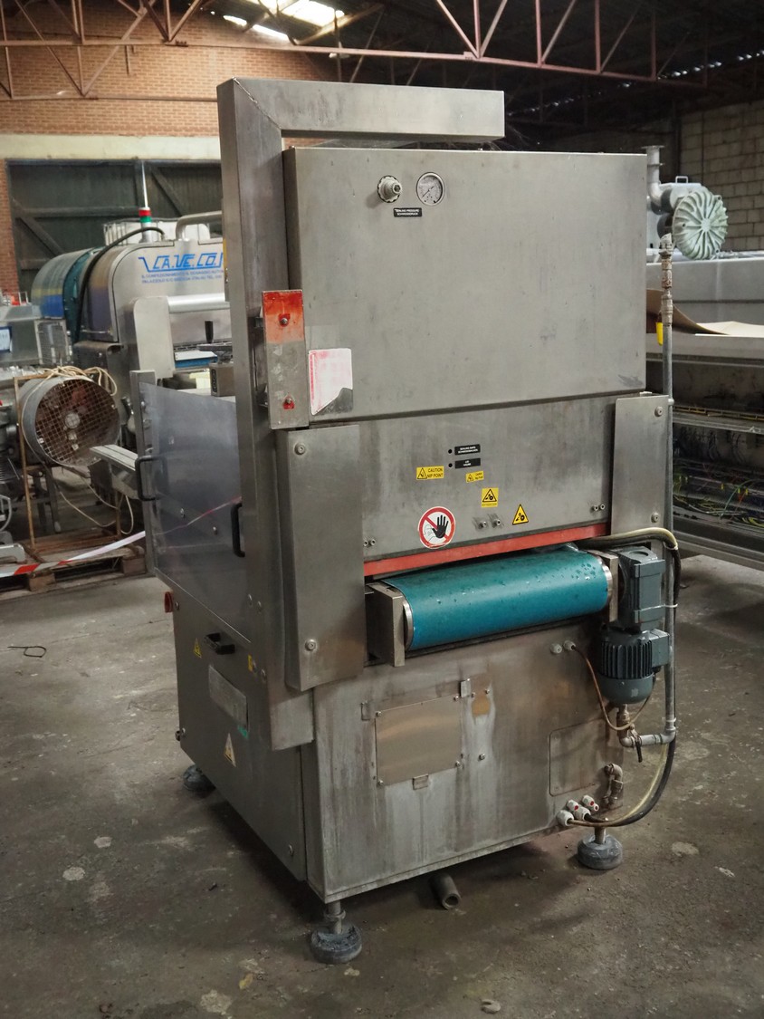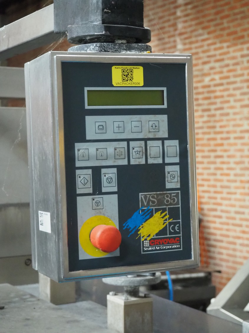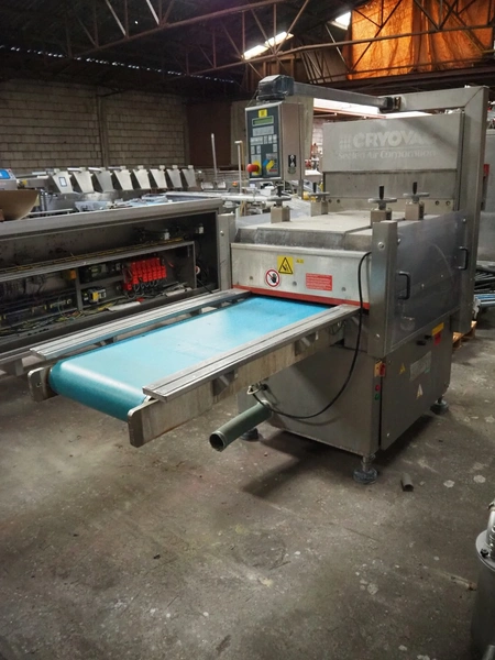 Cryovac belt vacuum machine, type: VS 85, plastic belt, belt width: 530 mm, total dimensions: 2700 mm x 1120 mm x 2000 mm. Without vacuum pump.