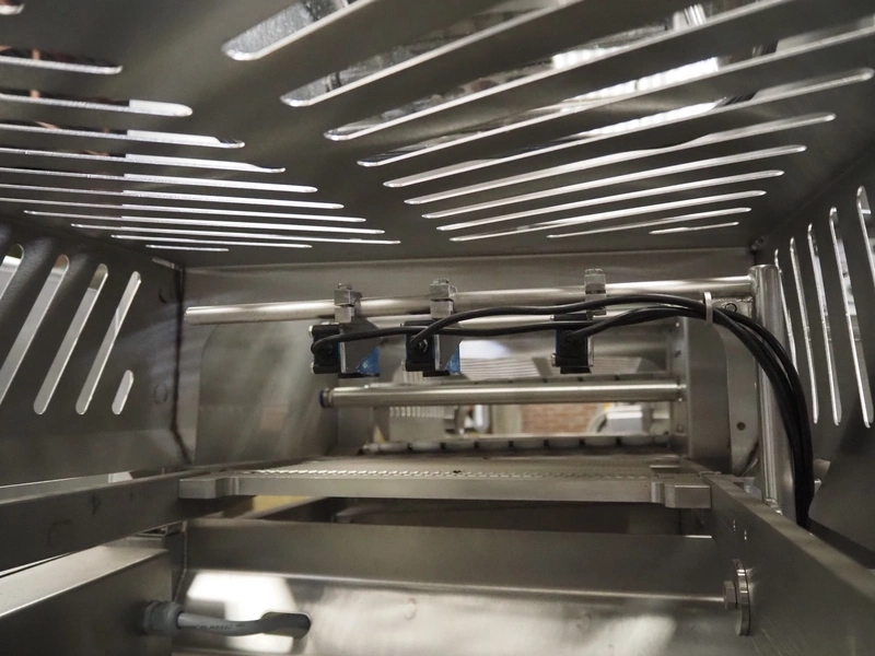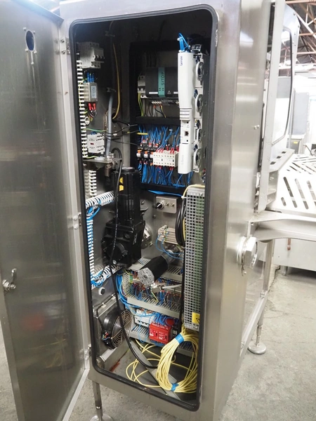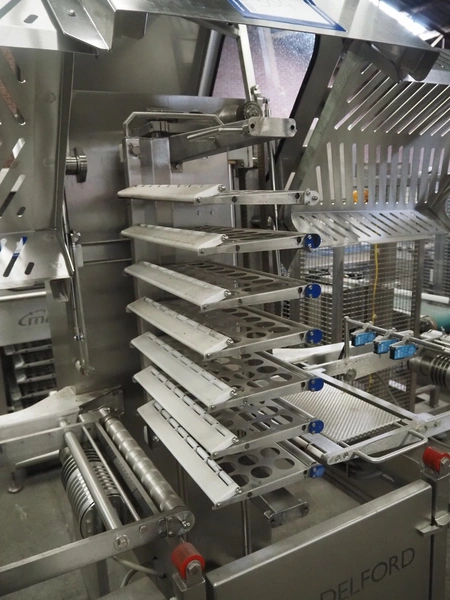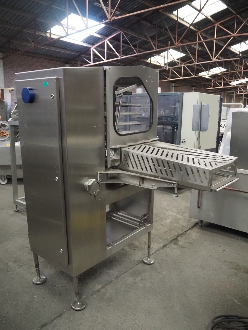 Marel Limited vertical buffer, model: vertical buffer, serial number: 1970011, year of construction: 20-10-2011, 400 V, 3 Ph, 50 Hz, 6/10 A, weight: 410 Kg, belt width: 400 mm, 7 floors, dye: (24x each floor) Ø 40 mm, total dimensions: 2050 mm x 1200 mm x 1900 mm. Incomplete.
