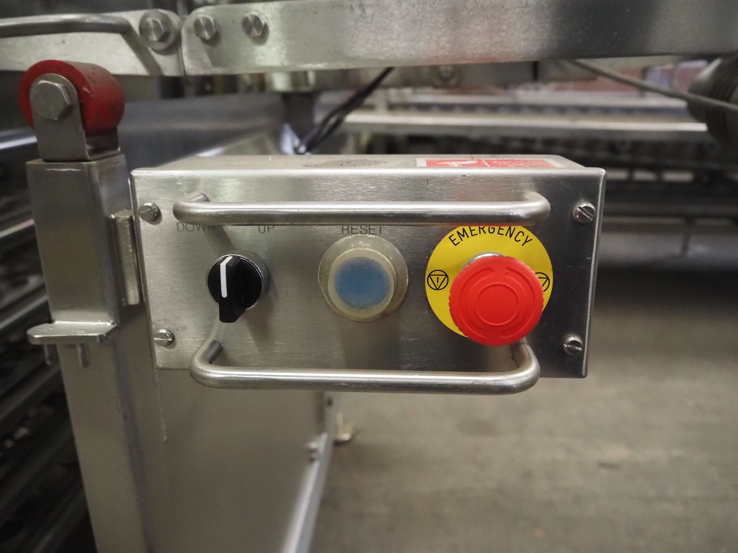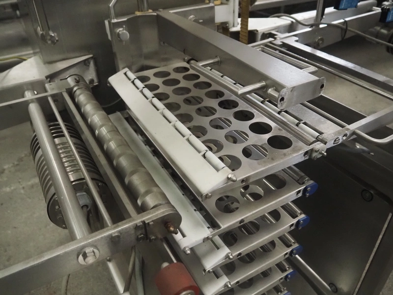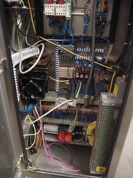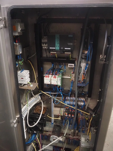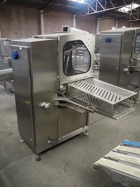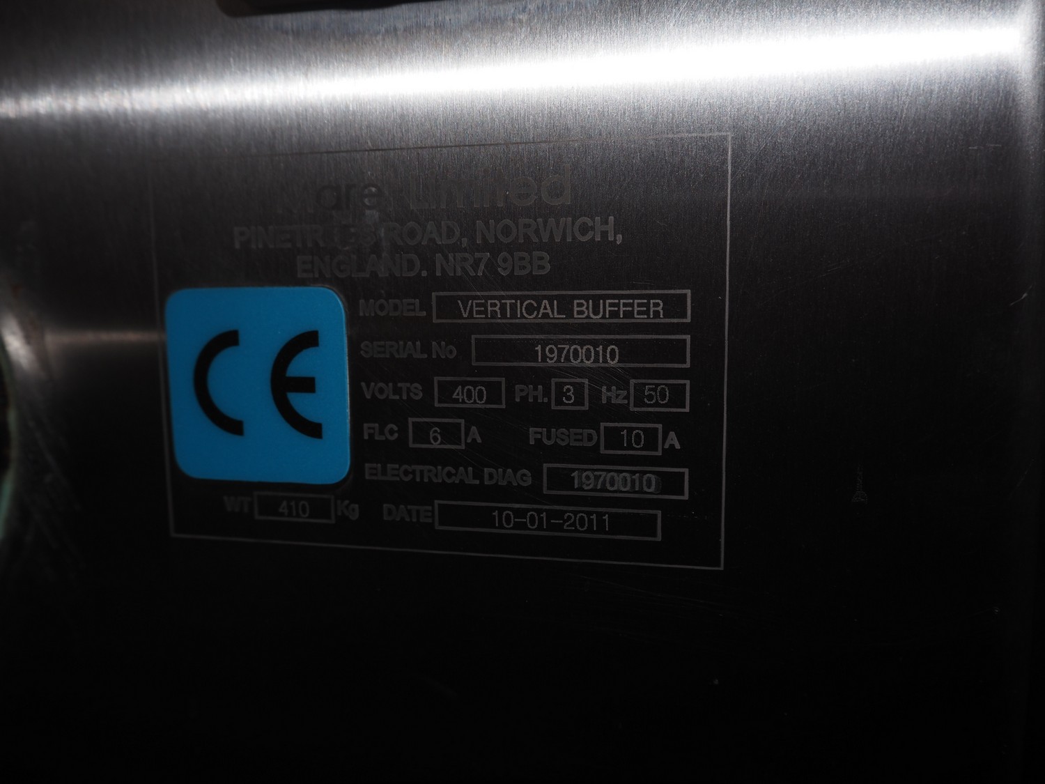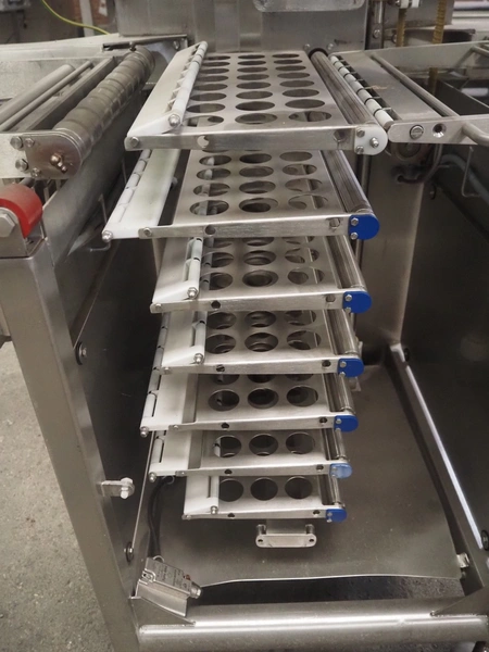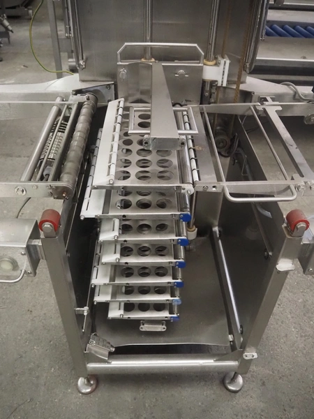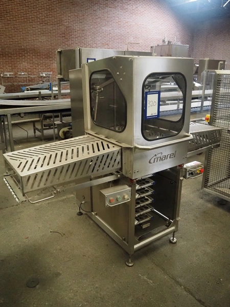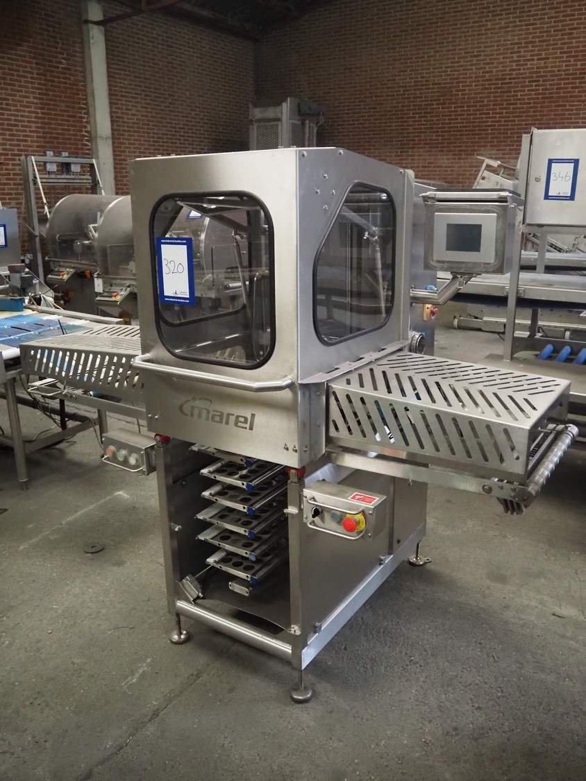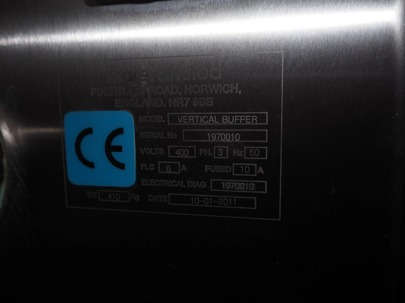 Marel Limited vertical buffer, model: vertical buffer, serial number: 1970010, year of construction: 10-01-2011, 400 V, 3 Ph, 50 Hz, 6/10 A, weight: 410 Kg, belt width: 400 mm, 7 floors, dye: (24x each floor) Ø 40 mm, total dimensions: 2050 mm x 1200 mm x 1900 mm. Incomplete.