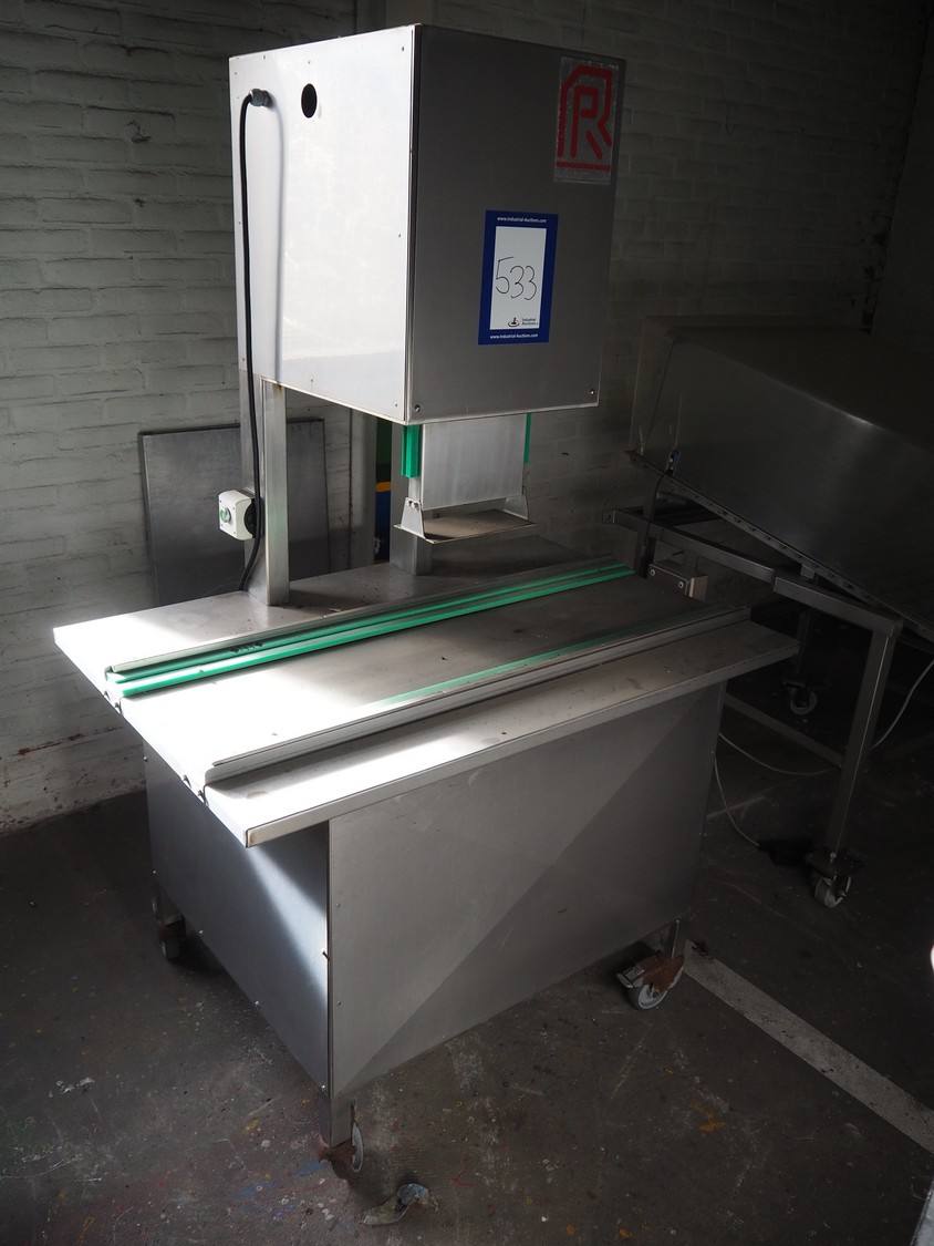 Royal Pas Reform mobile semi-automatic egg transfer system, working width: 360 mm, total dimensions: 1200 mm x 800 mm x 1830 mm. Incomplete.